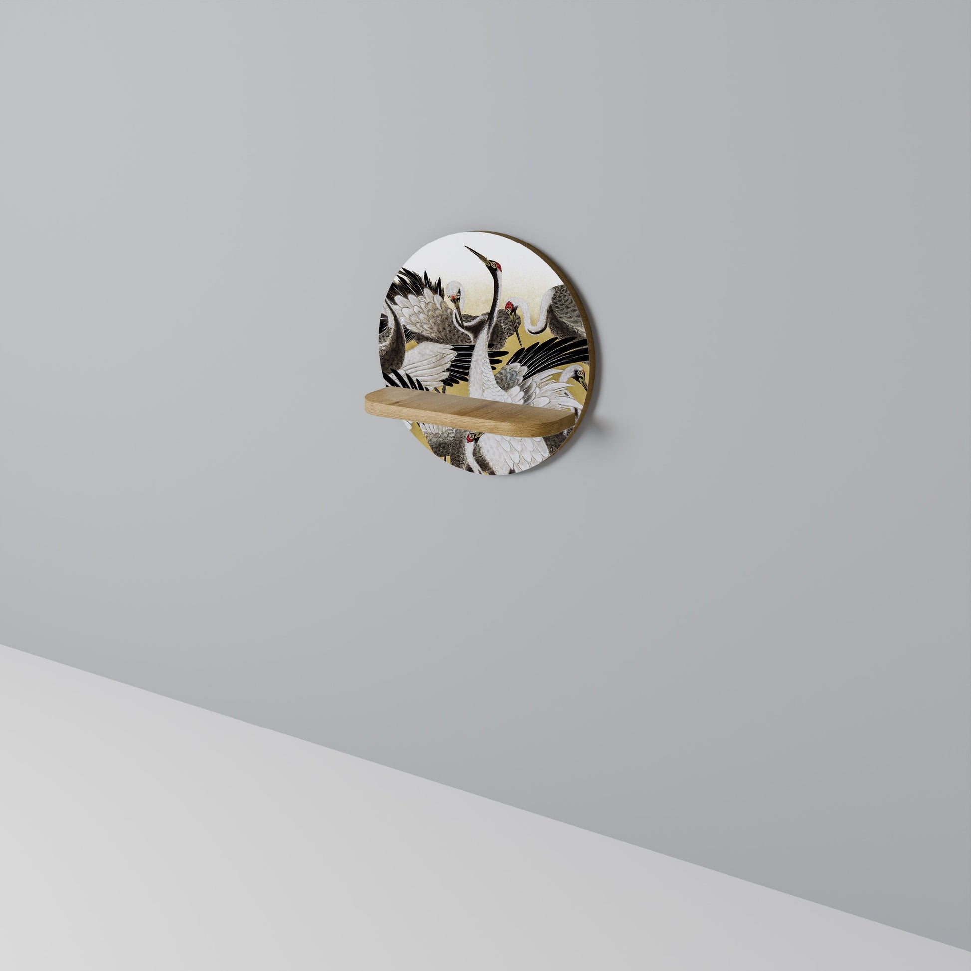 JAPANESE FLOCK OF CRANES Round Art Shelf In Oak Effect