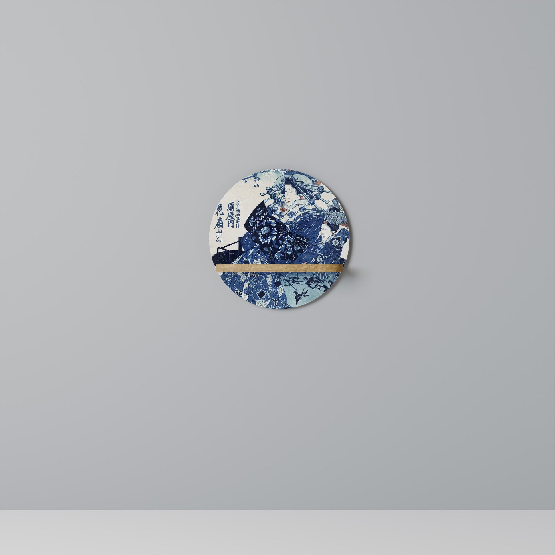 JAPANESE WOMAN Round Art Shelf In Oak Effect