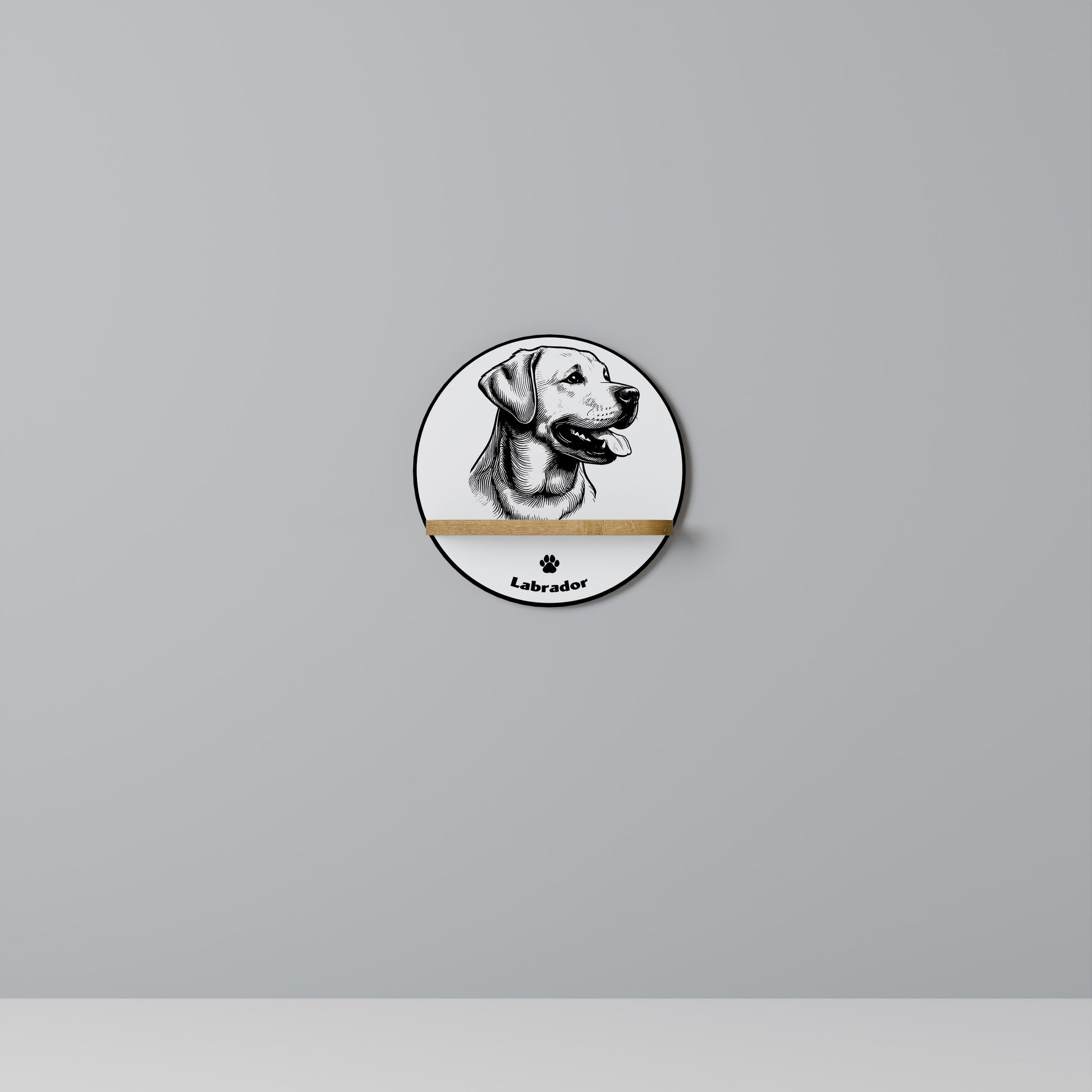 LABRADOR DOG Round Art Shelf In Oak Effect