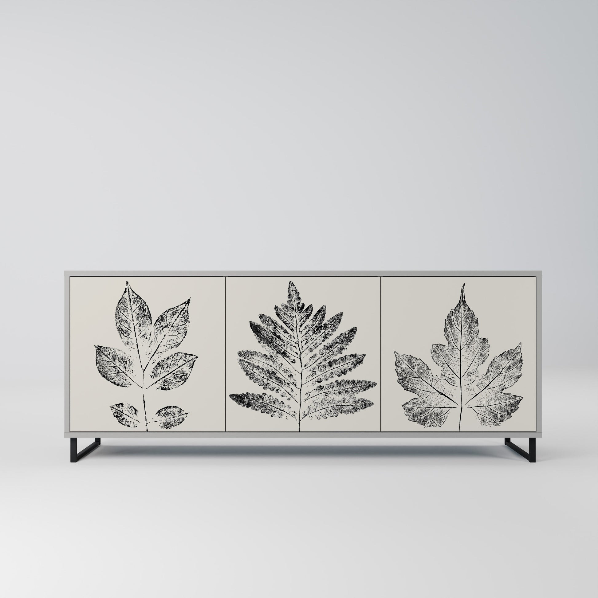 LEAFY STAMPS 3-Door Sideboard in Grey Finish