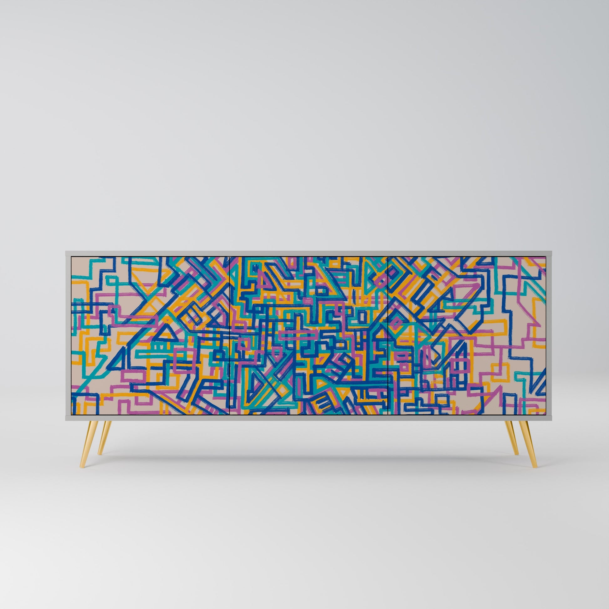 Elegance and functionality in a single piece of furniture – our 3-Door Sideboard with a grey body is the perfect solution for lovers of stylish, modern interiors. The grey body emphasizes the refined character of the furniture, while the fronts with a unique print add an artistic touch. It fits perfectly in the living room, bedroom, or office, complementing both modern and industrial arrangements.