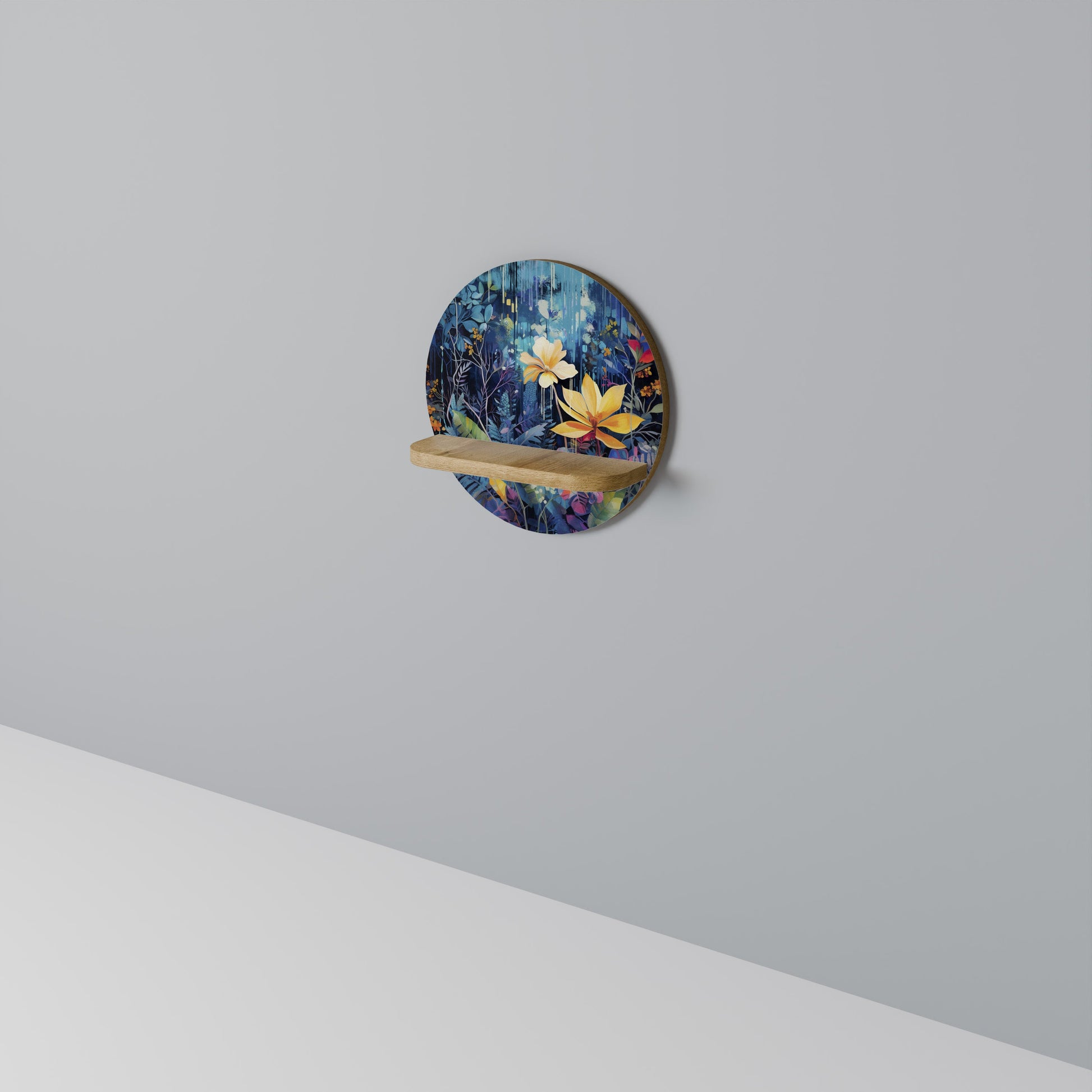 MIDNIGHT BLOSSOM Round Art Shelf In Oak Effect