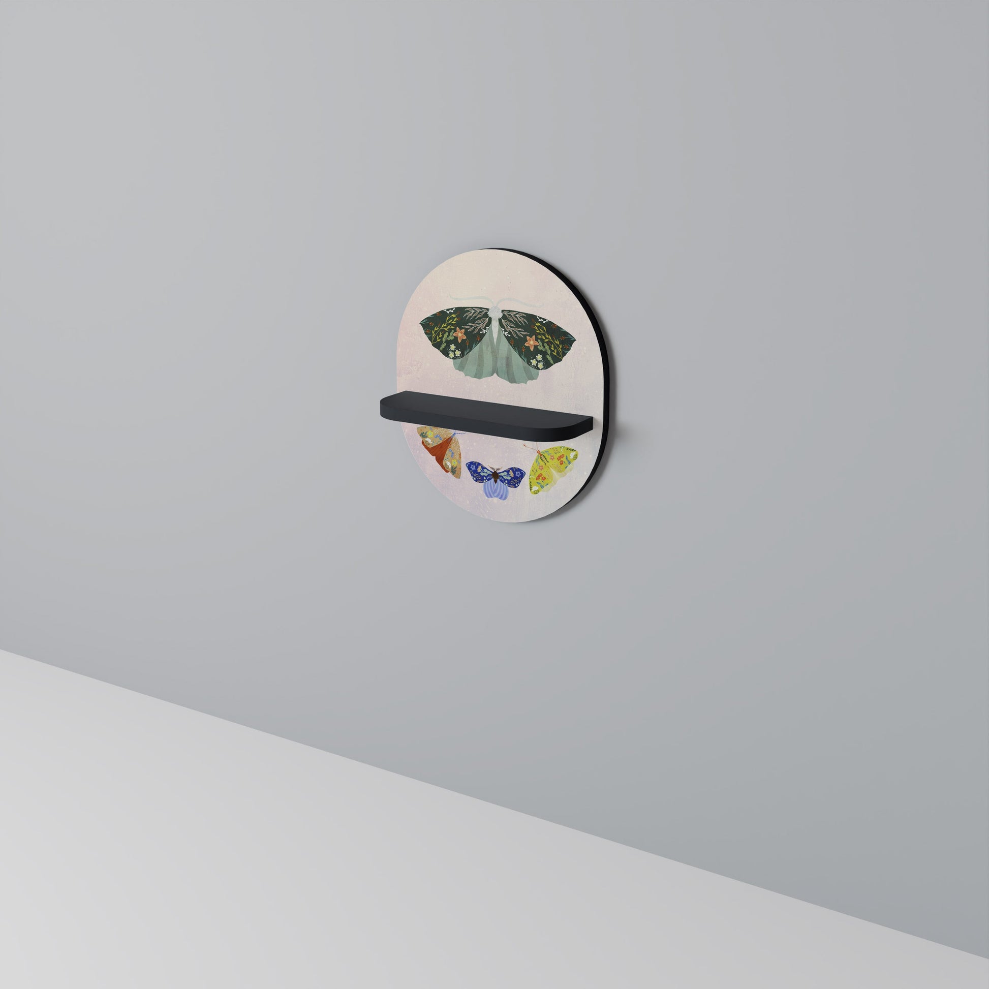 MOTH INTO THE LIGHT Oval Art Shelf In Black Finish