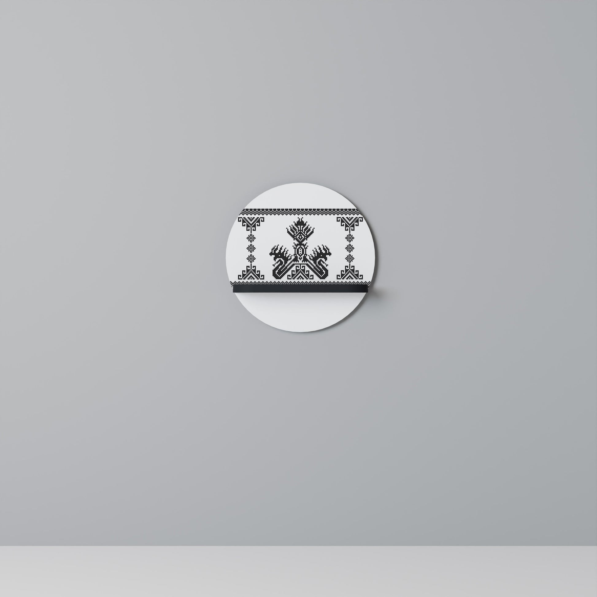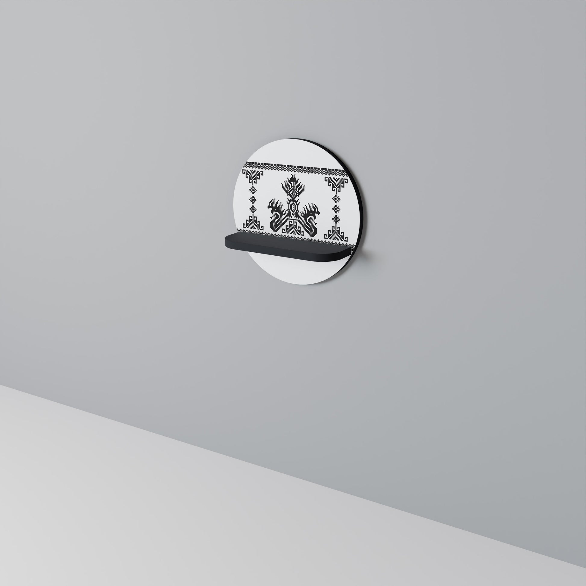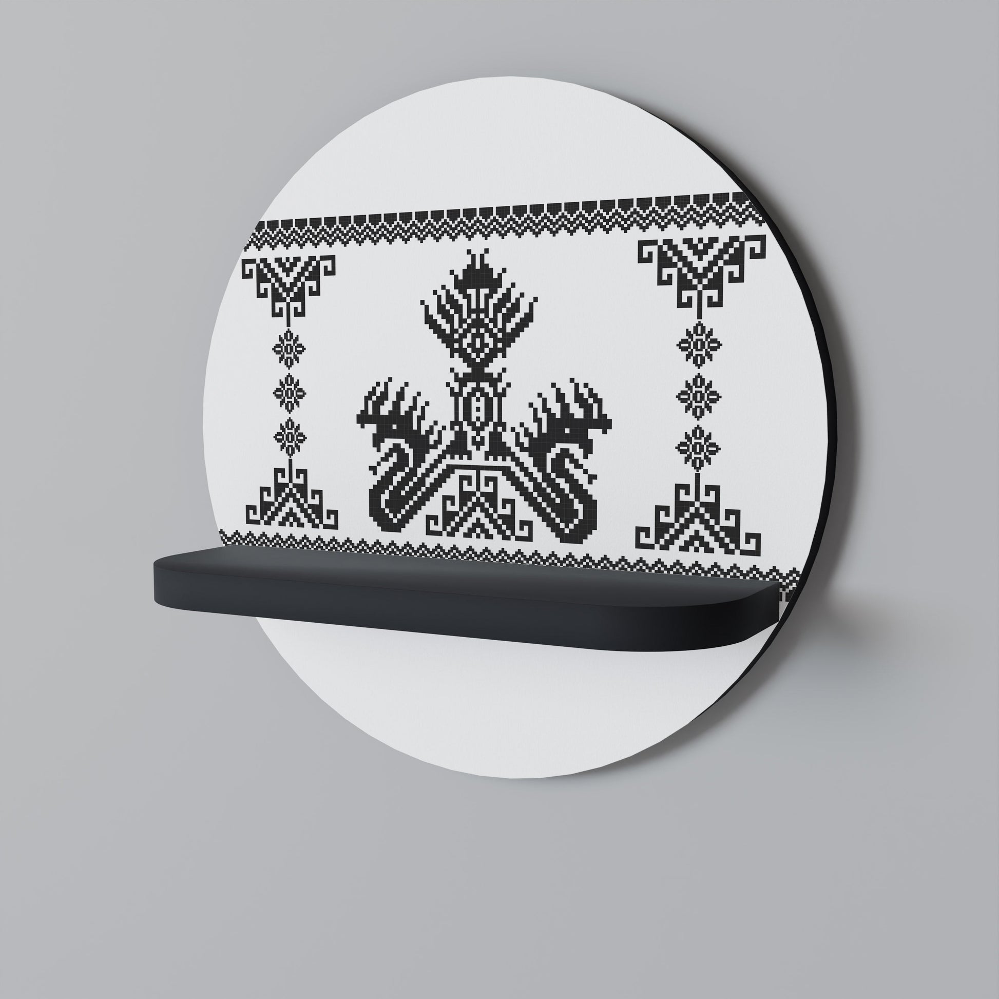 MYTHIC STITCH Round Art Shelf In Black Finish