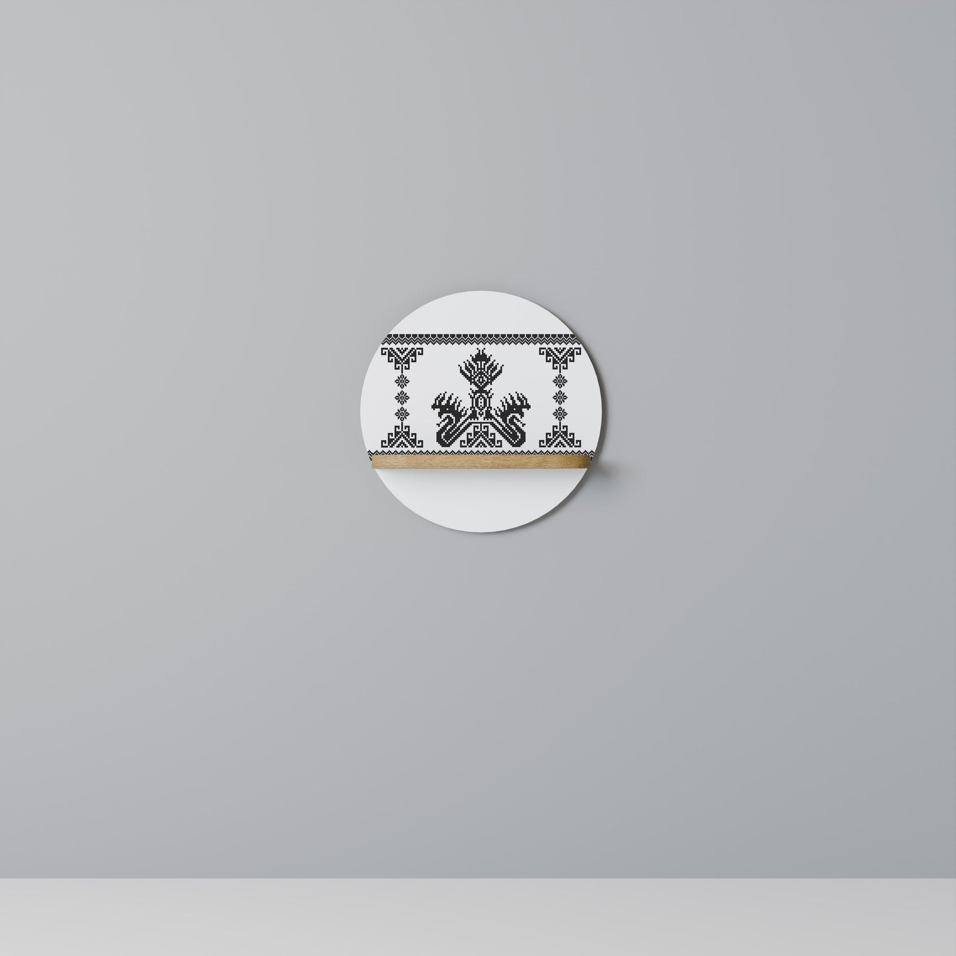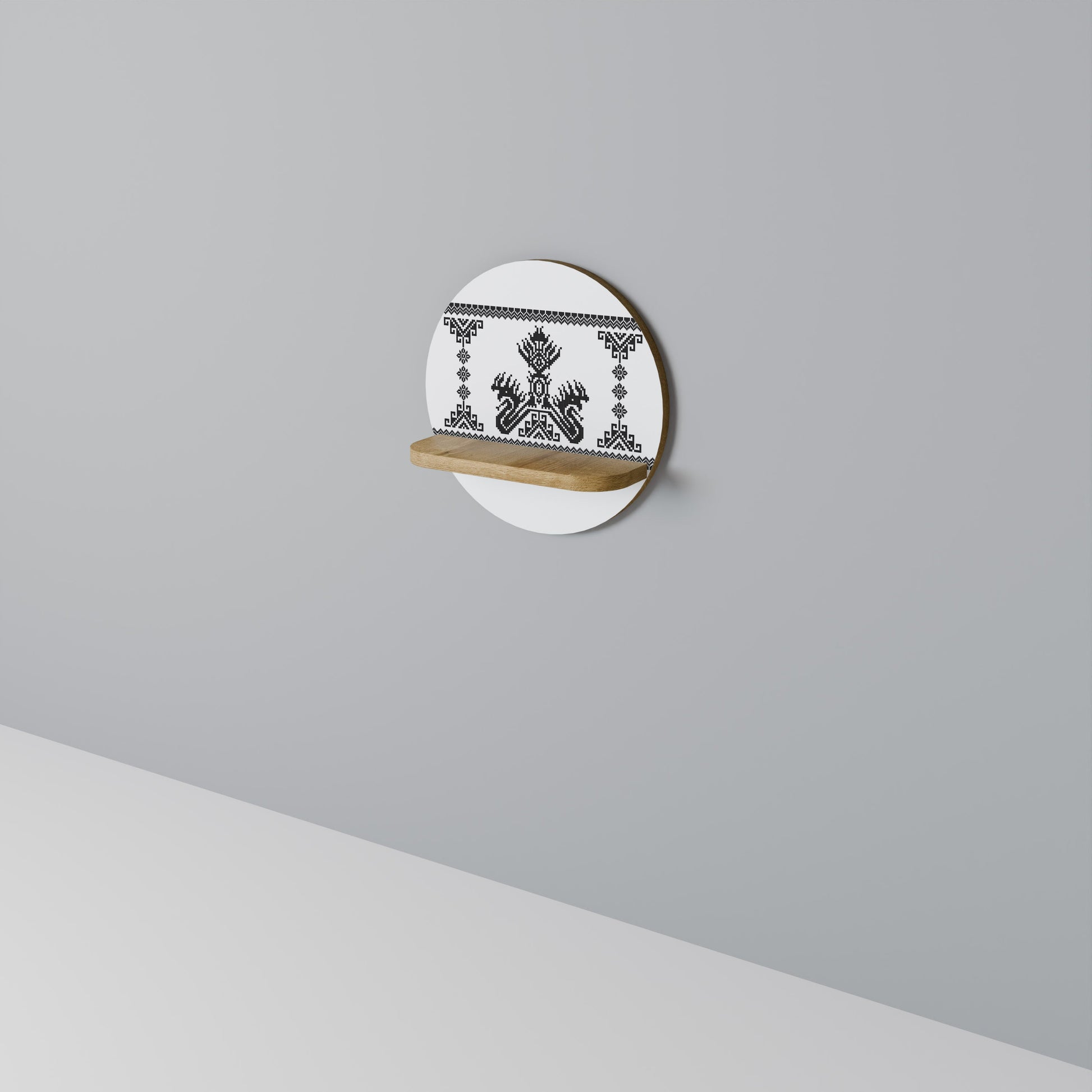 MYTHIC STITCH Round Art Shelf In Oak Effect