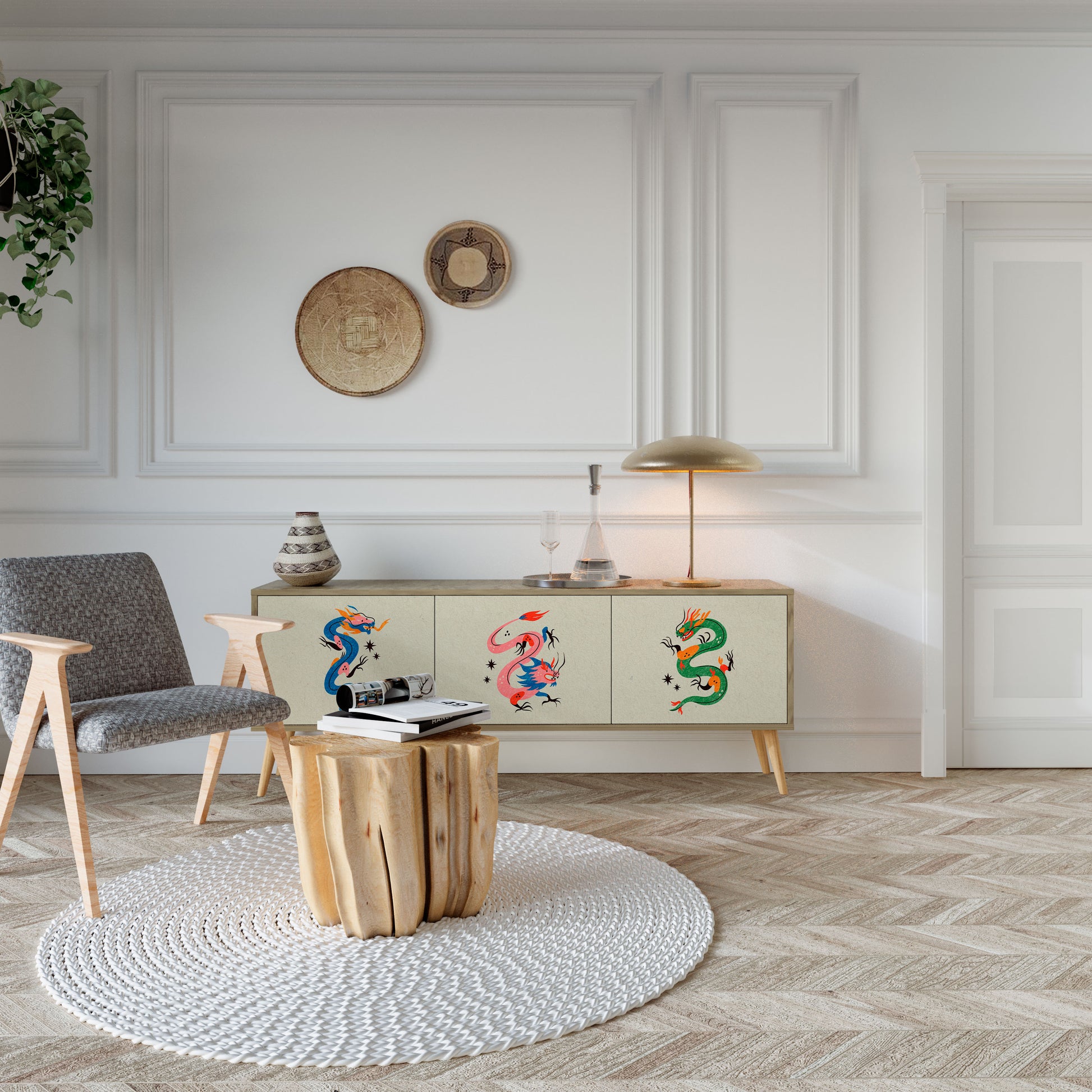 MYTHOLOGICAL CREATURES 3-Door TV Stand in Oak Effect