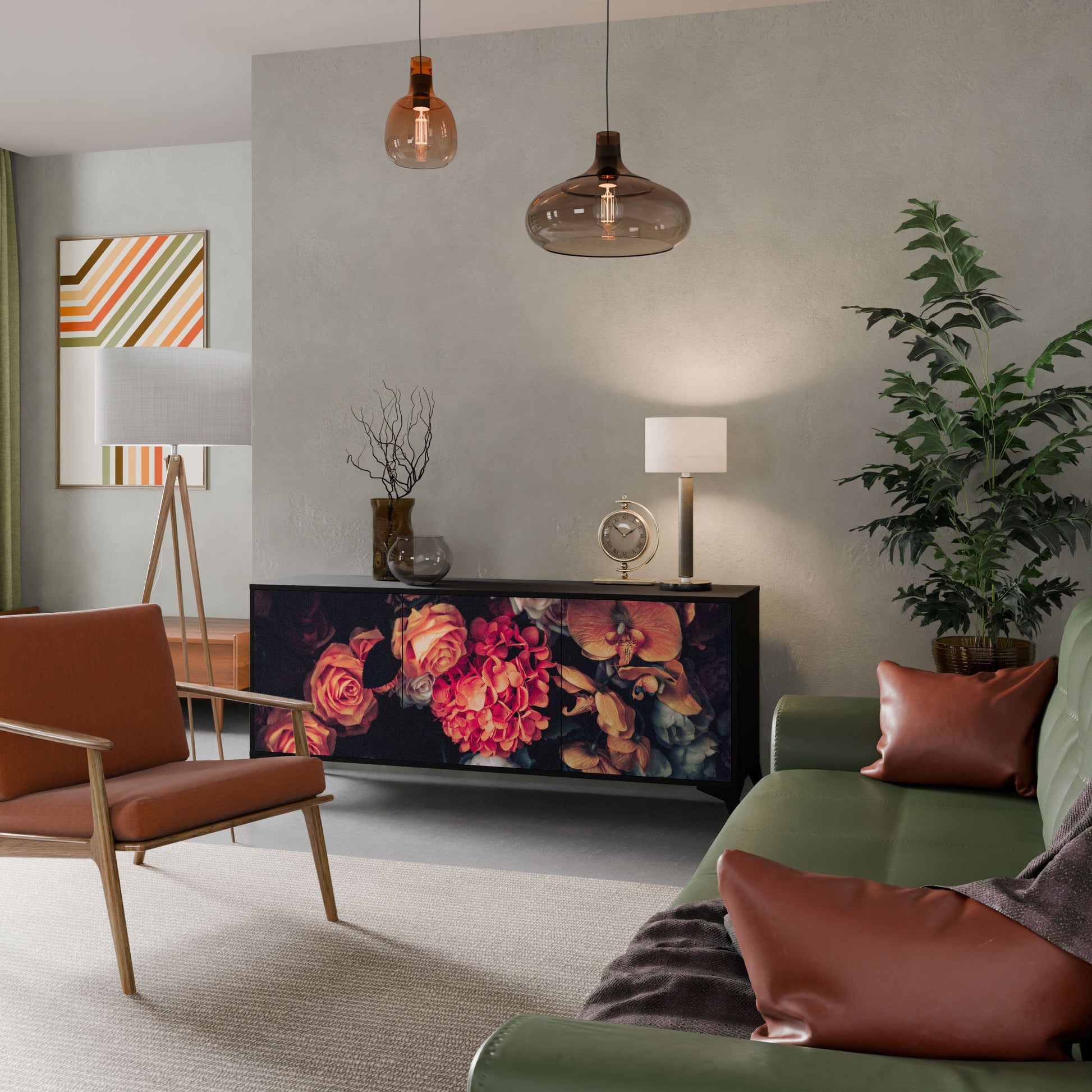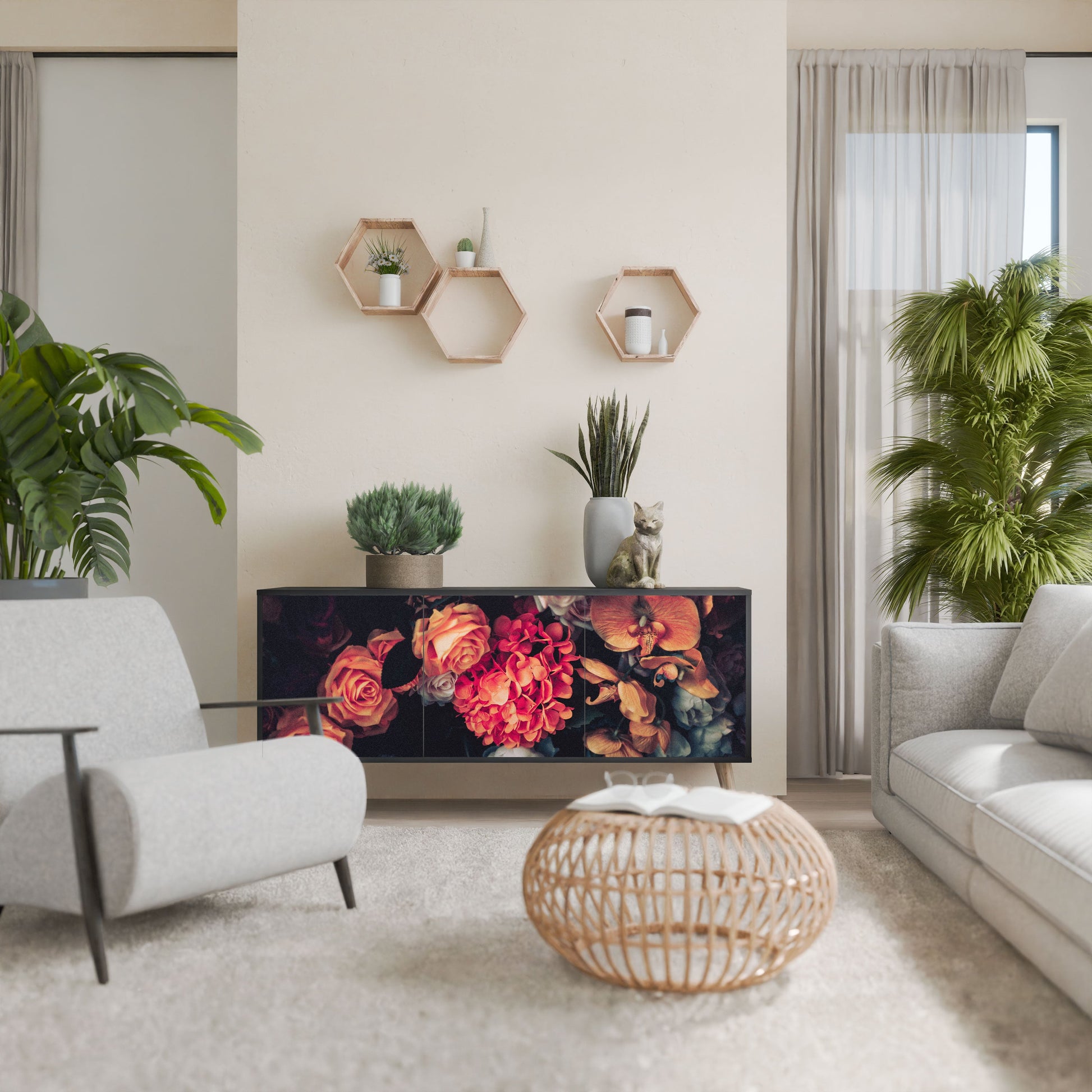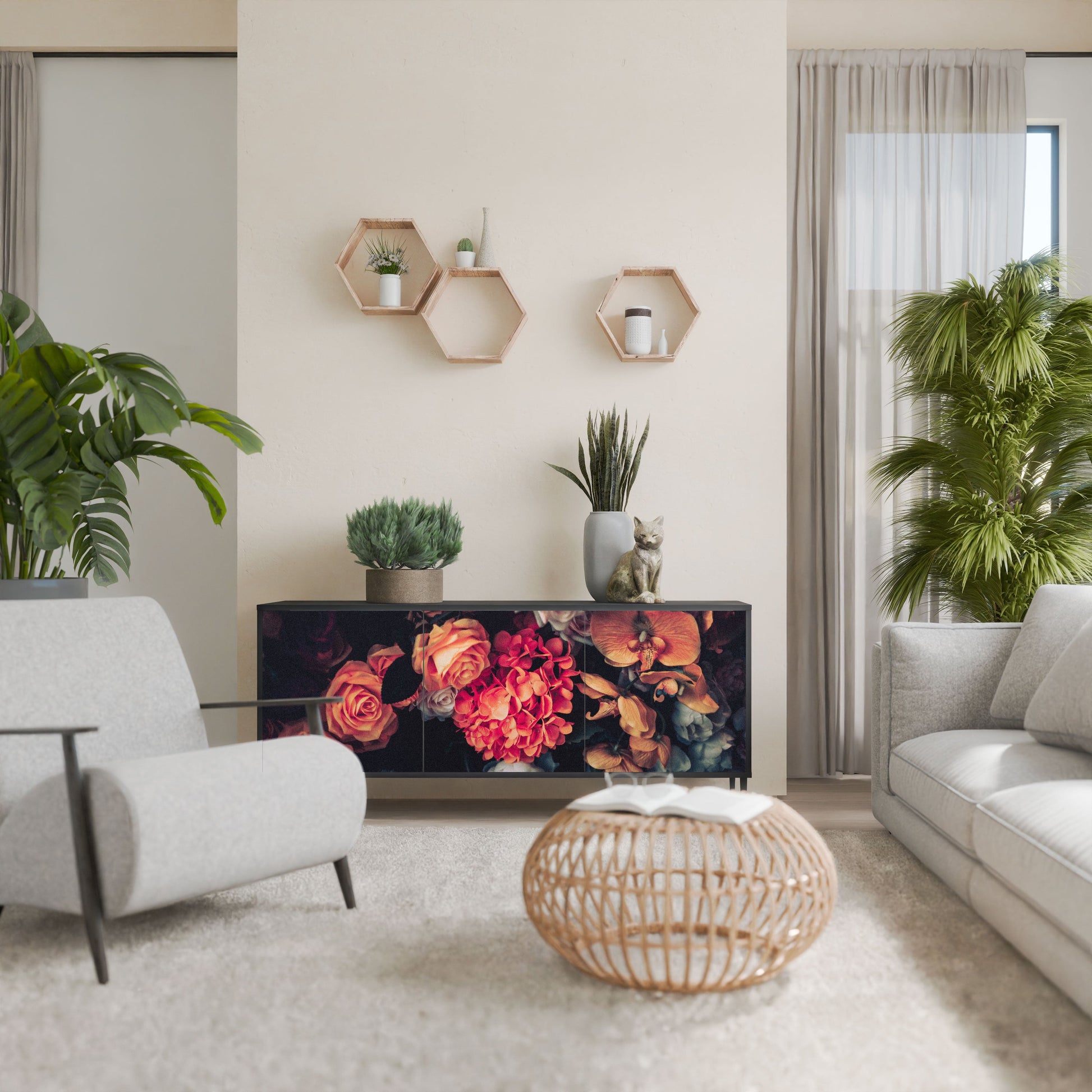 NEVERENDING BLOOM 3-Door Sideboard in Black Finish
