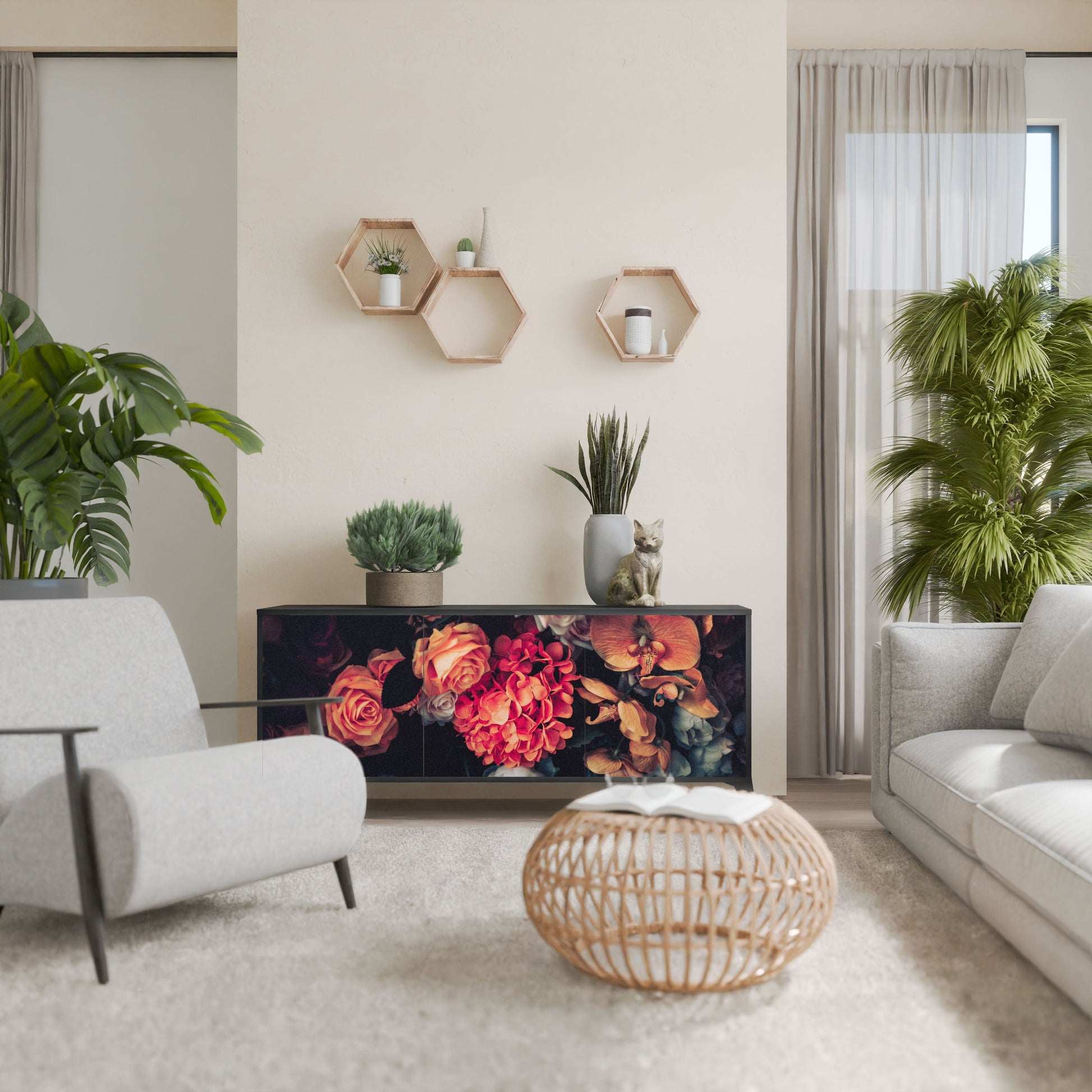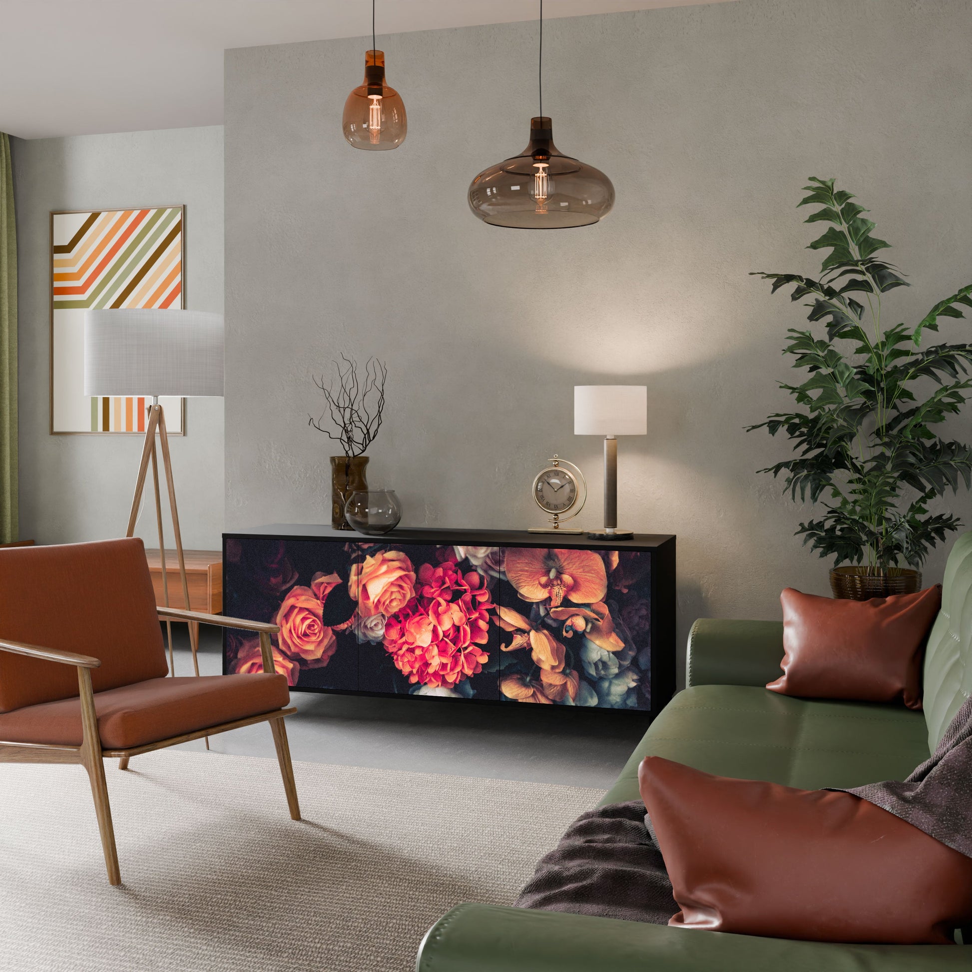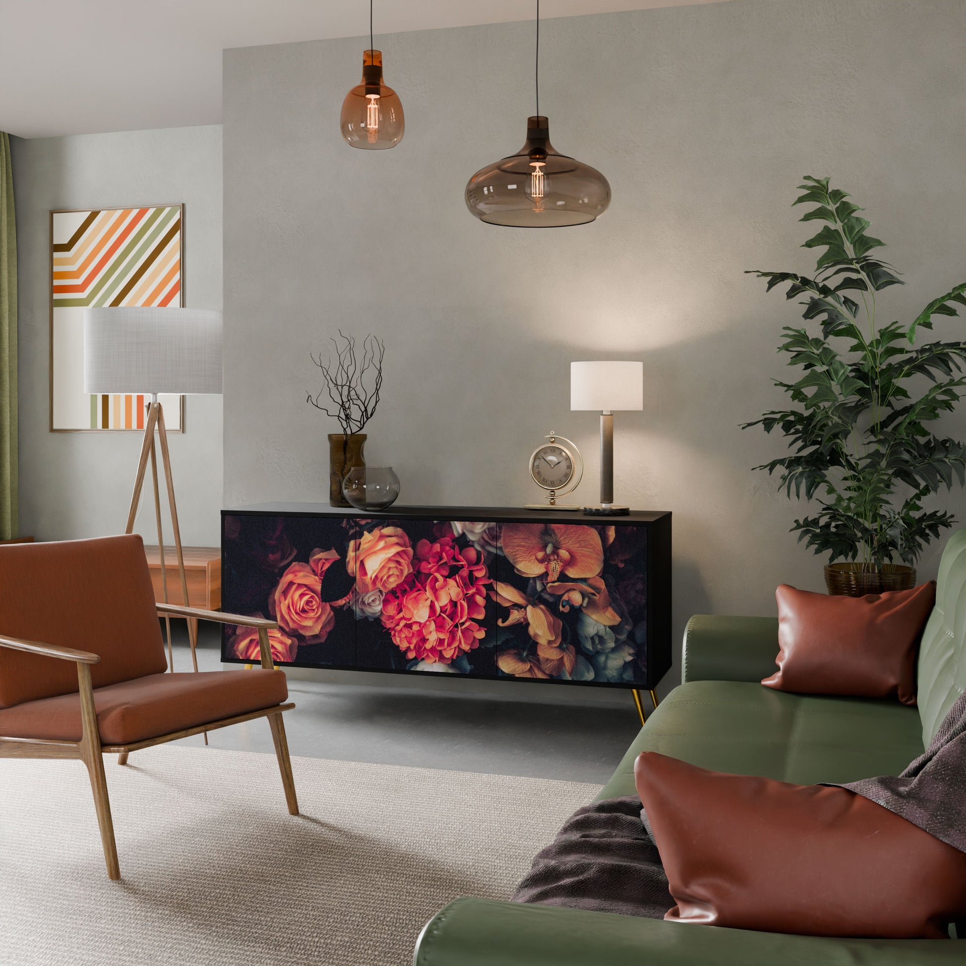 NEVERENDING BLOOM 3-Door Sideboard in Black Finish