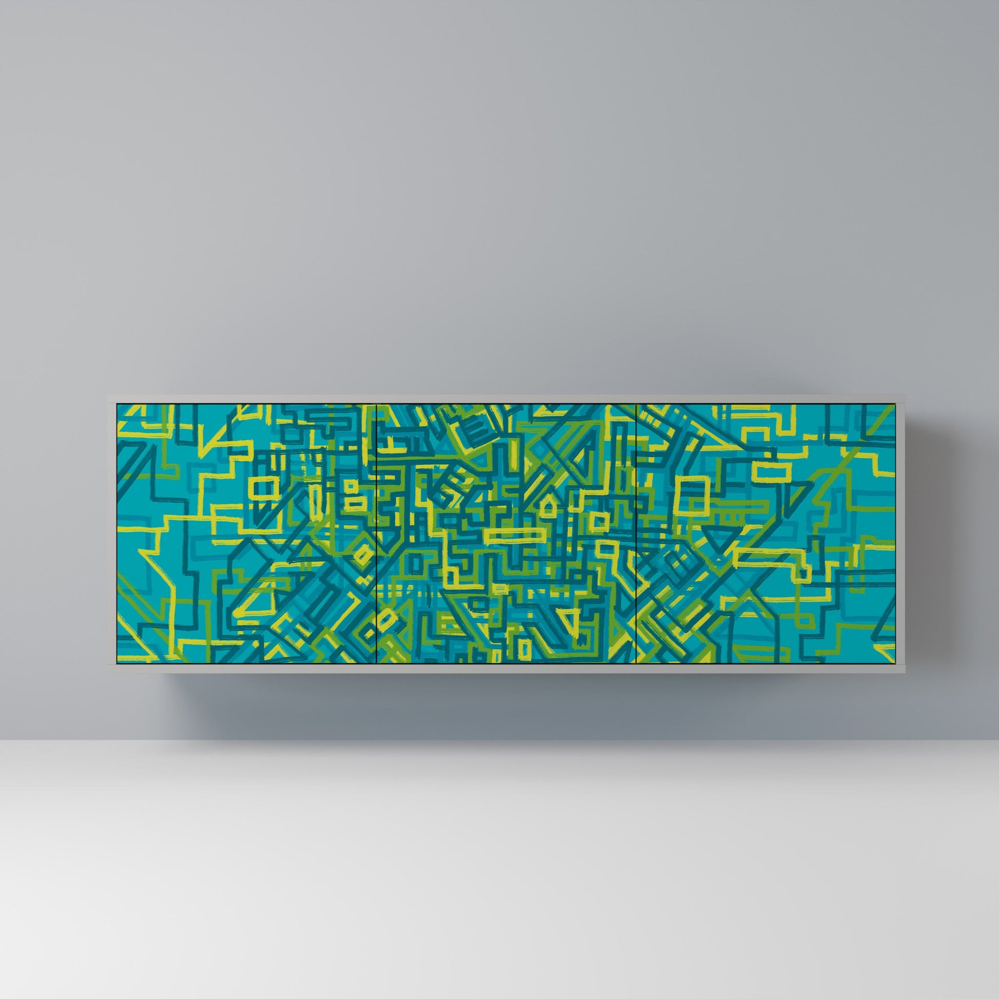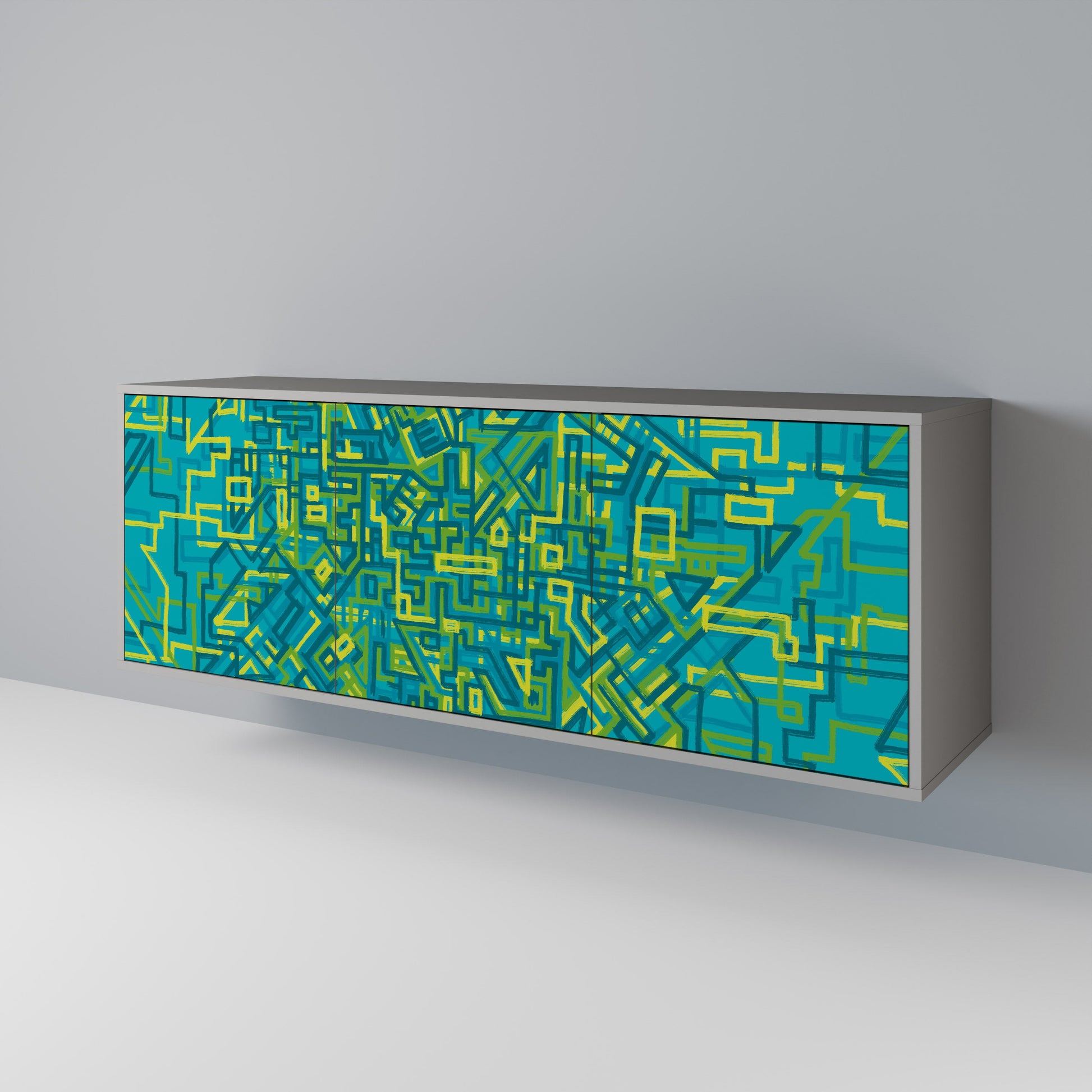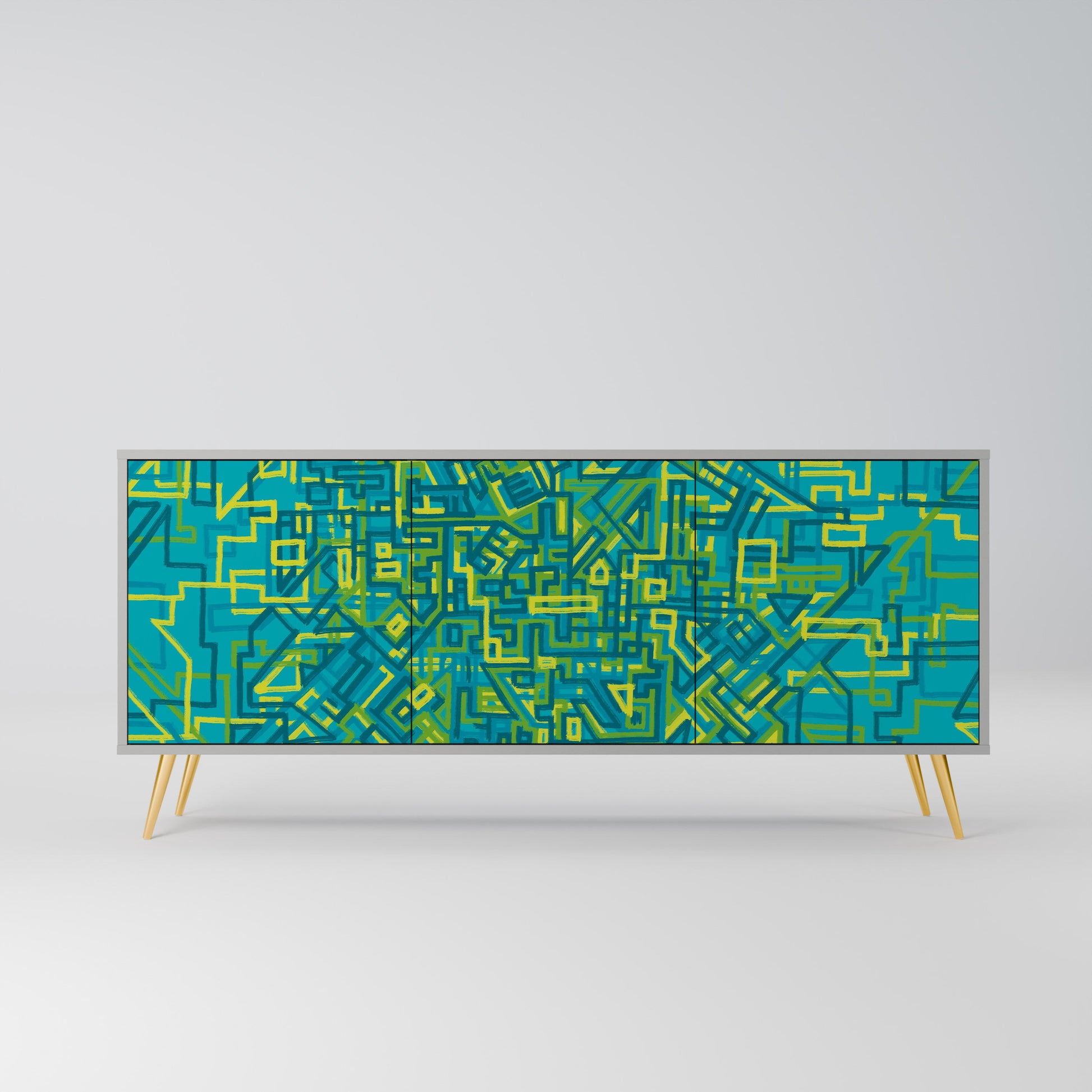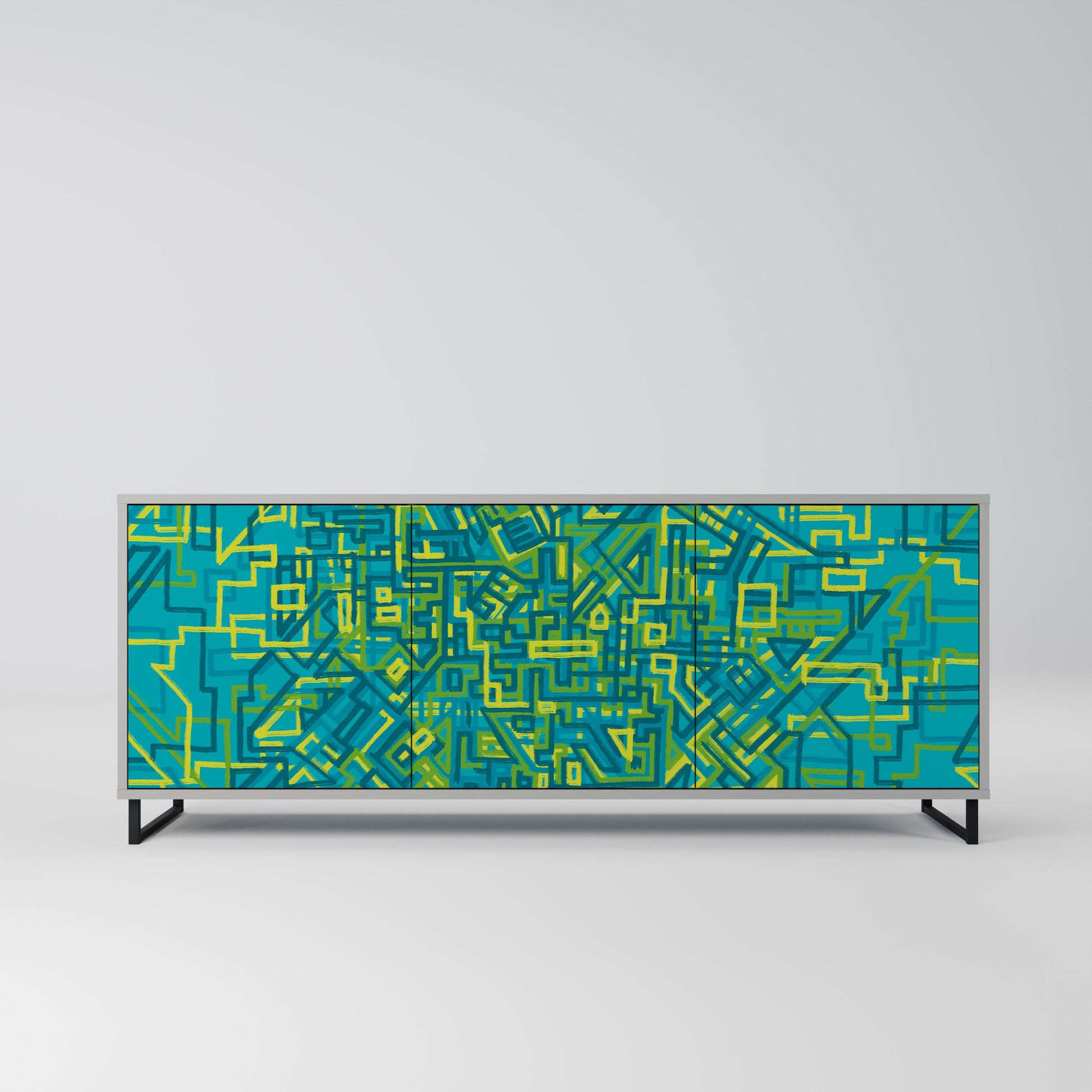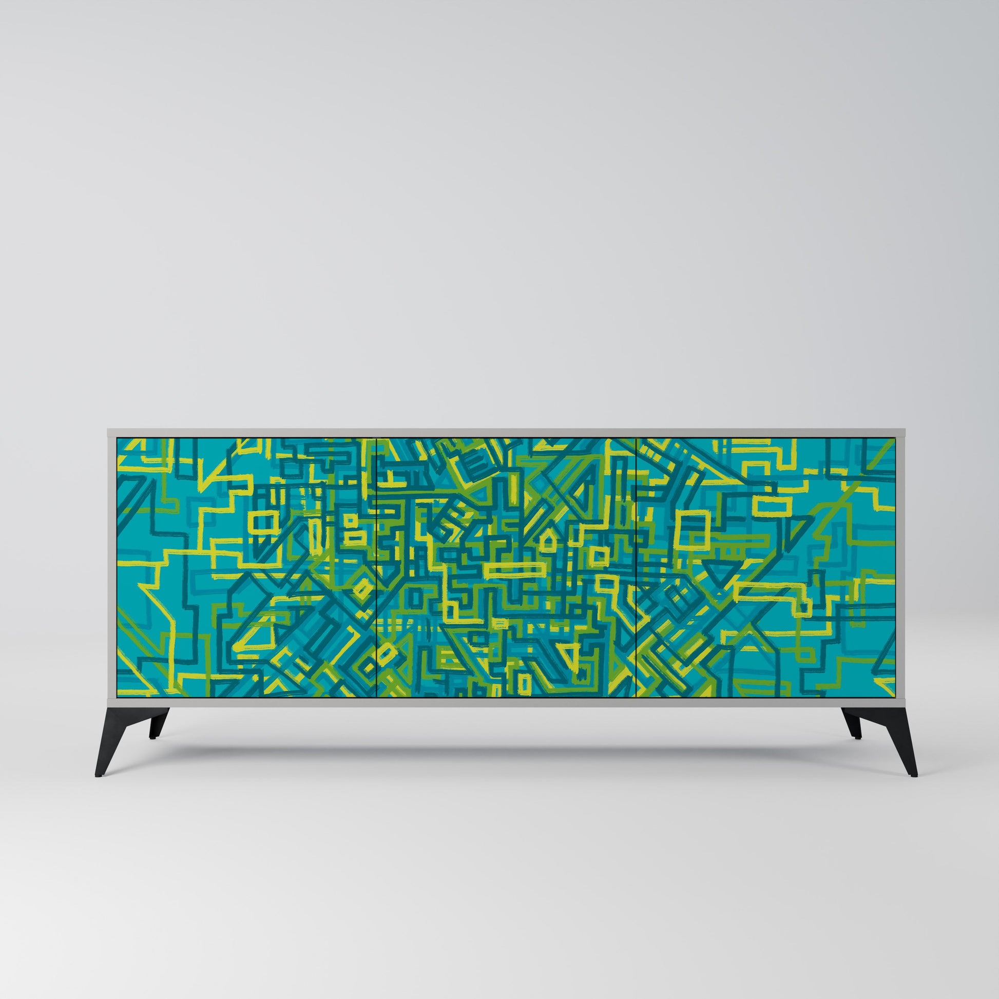 Elegance and functionality in a single piece of furniture – our 3-Door Sideboard with a grey body is the perfect solution for lovers of stylish, modern interiors. The grey body emphasizes the refined character of the furniture, while the fronts with a unique print add an artistic touch. It fits perfectly in the living room, bedroom, or office, complementing both modern and industrial arrangements.