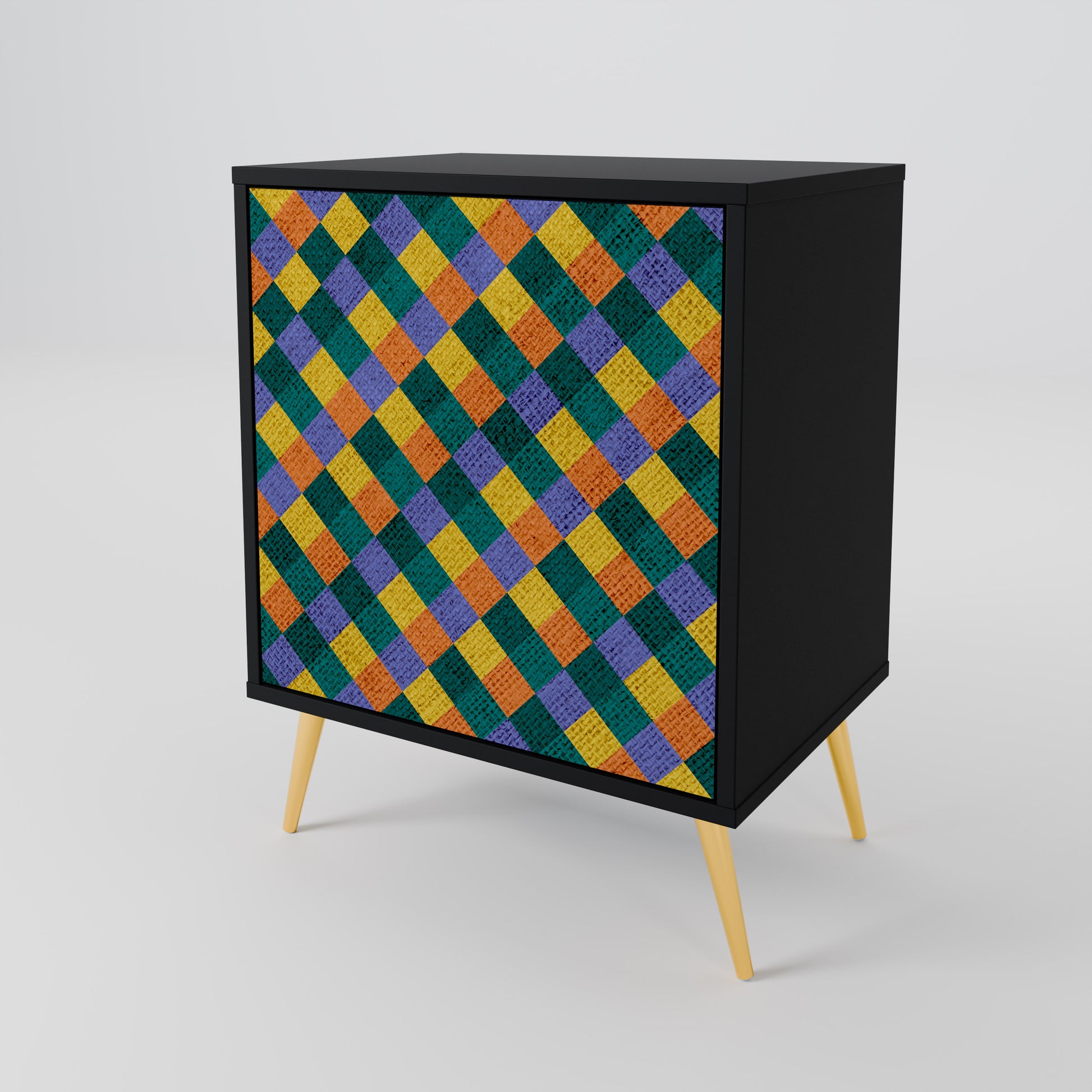 PAINTED SQUARES MIX 1-Door Sideboard in Black Finish