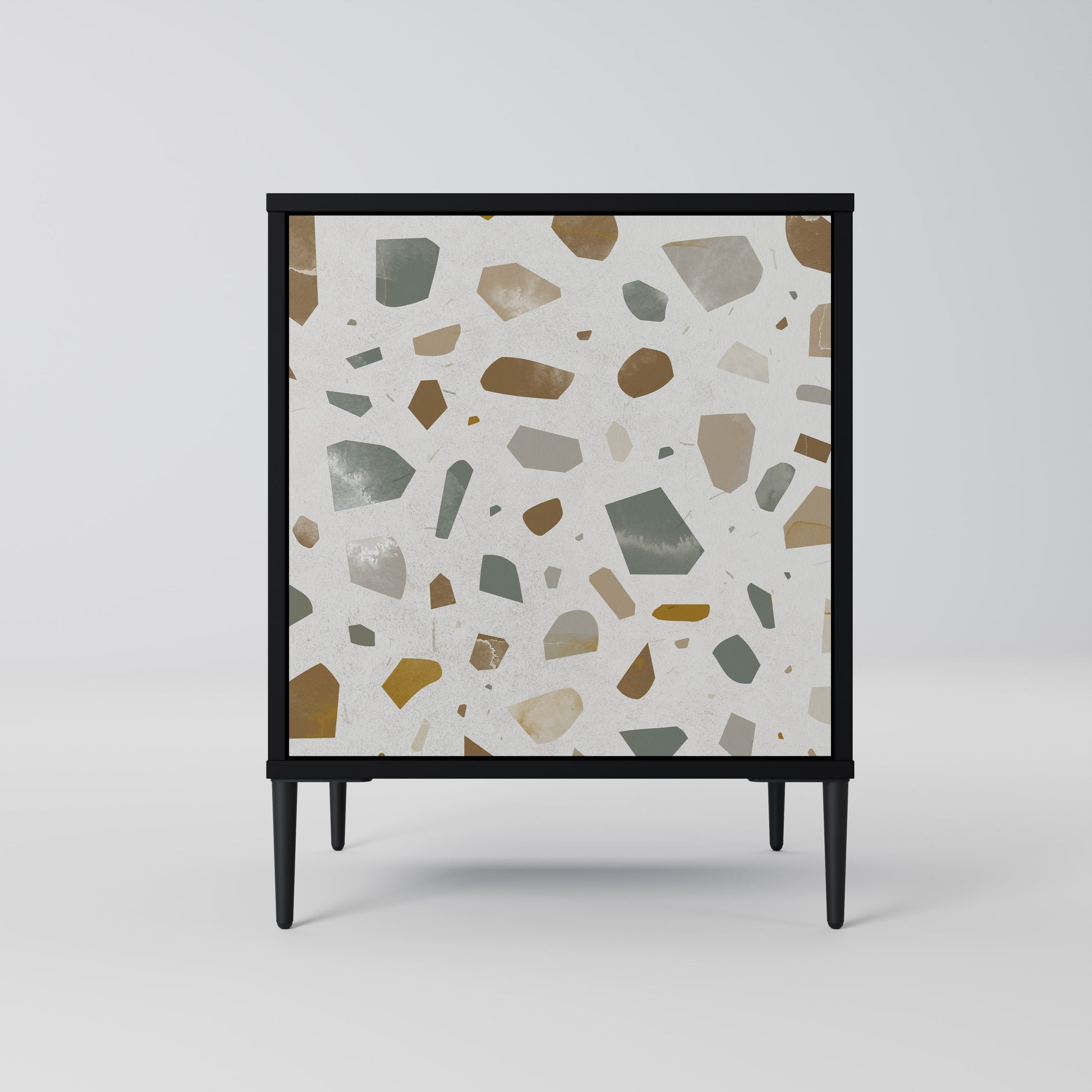 This compact yet remarkably elegant piece of furniture impresses with its minimalist design, perfectly fitting into both modern and classic interiors. The black body emphasizes the furniture’s bold character, while the fronts with a unique print add an artistic touch.
