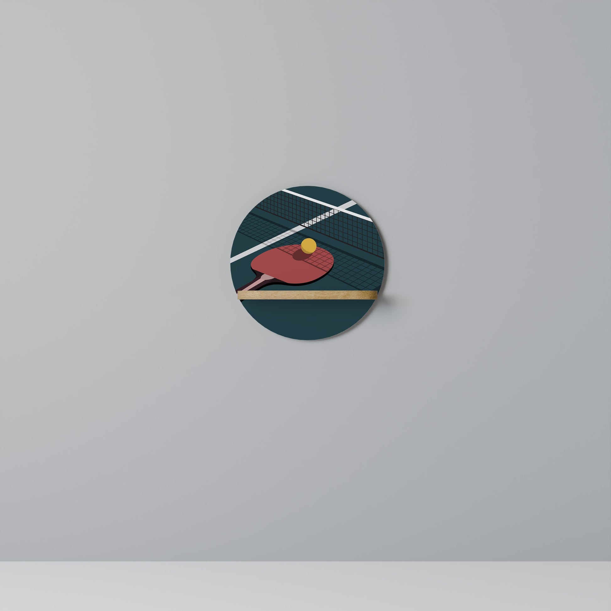 PING- PONG GAME Round Art Shelf In Oak Effect