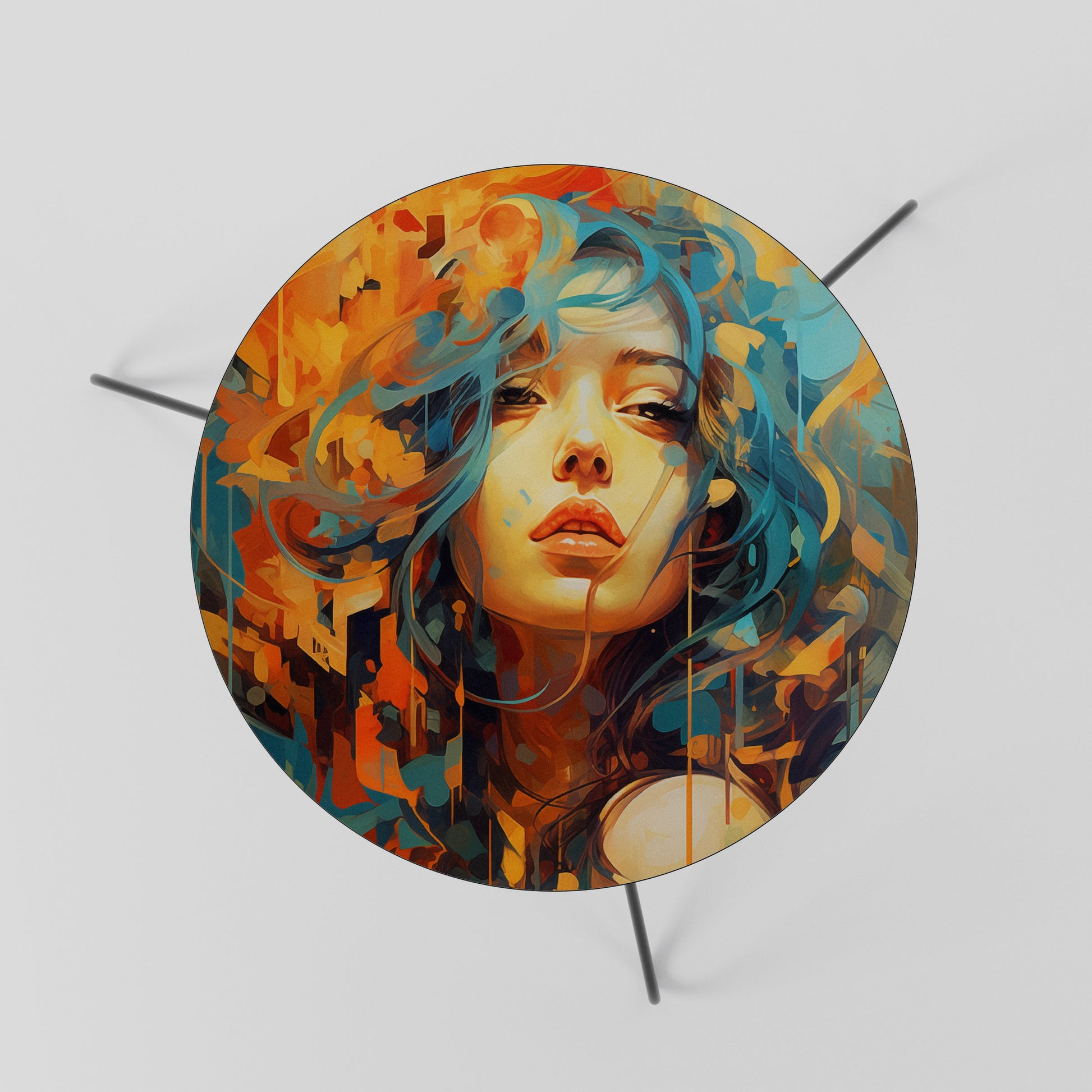 The tabletop features a high-quality printed motif, adding a distinctive artistic accent to your space. Crafted from durable chipboard covered with laminate, it ensures long-lasting use and resistance to daily wear.