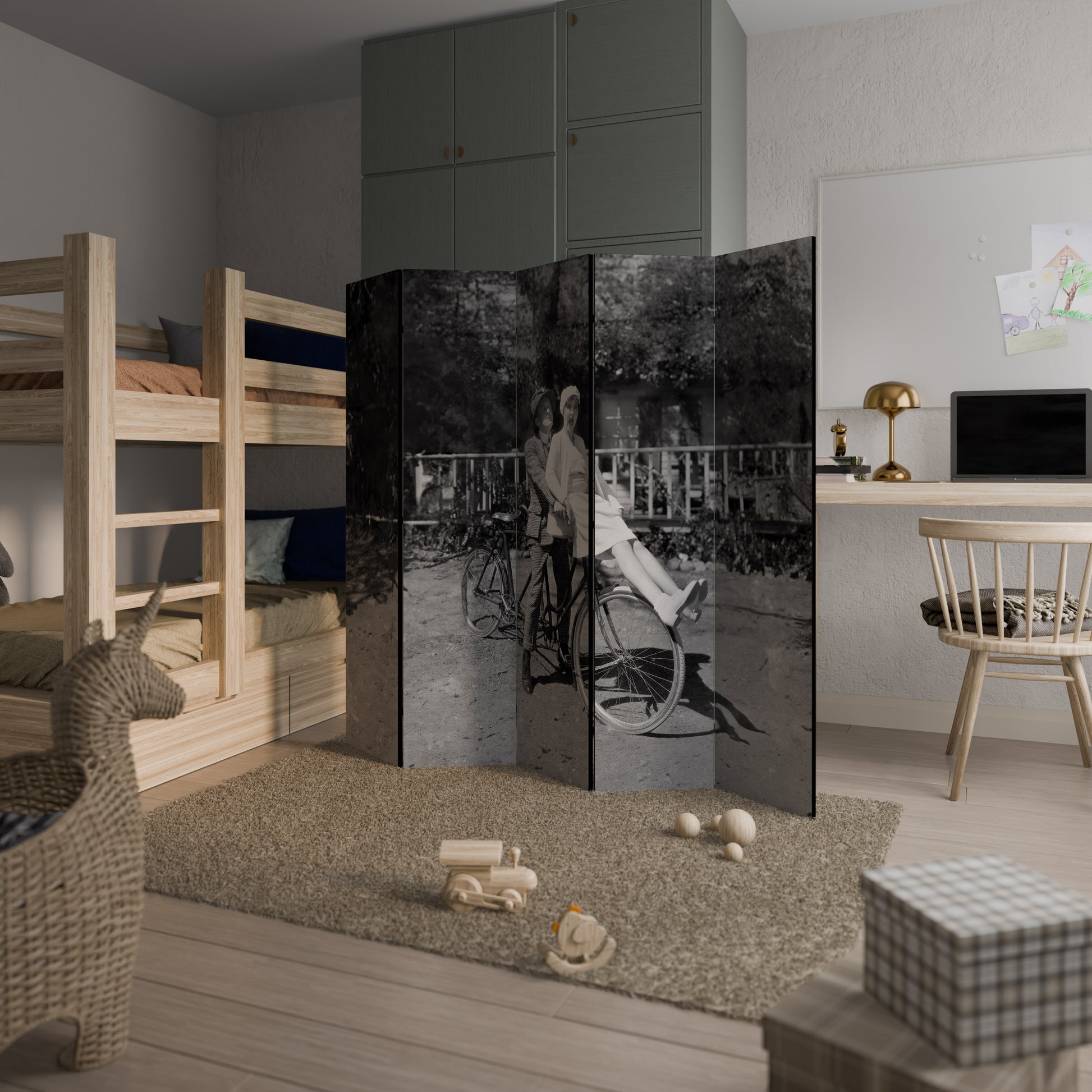 RIDING THROUGH TIME Decorative 5-Panel Room Divider