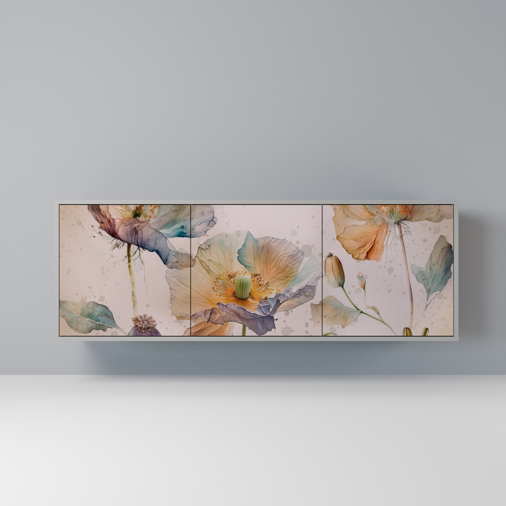 Elegance and functionality in a single piece of furniture – our 3-Door Sideboard with a grey body is the perfect solution for lovers of stylish, modern interiors. The grey body emphasizes the refined character of the furniture, while the fronts with a unique print add an artistic touch. It fits perfectly in the living room, bedroom, or office, complementing both modern and industrial arrangements.