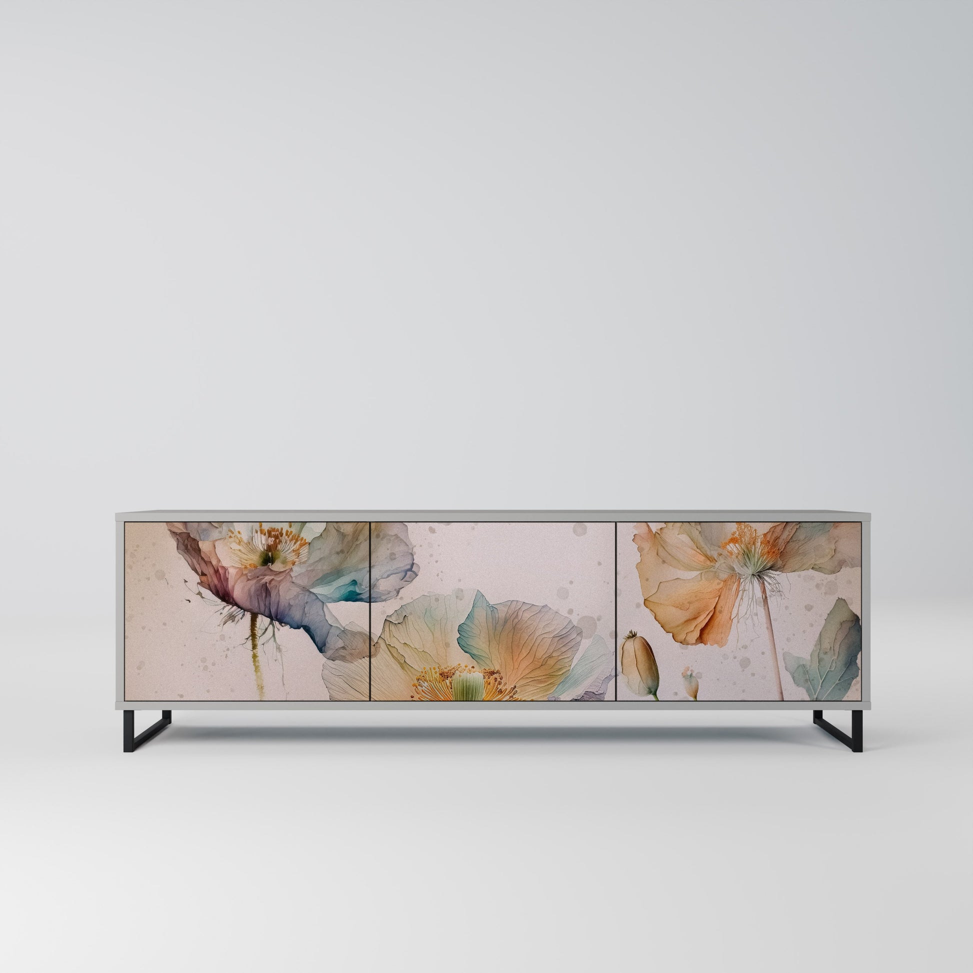 SOFTEN POPPY 3-Door TV Stand in Grey Finish