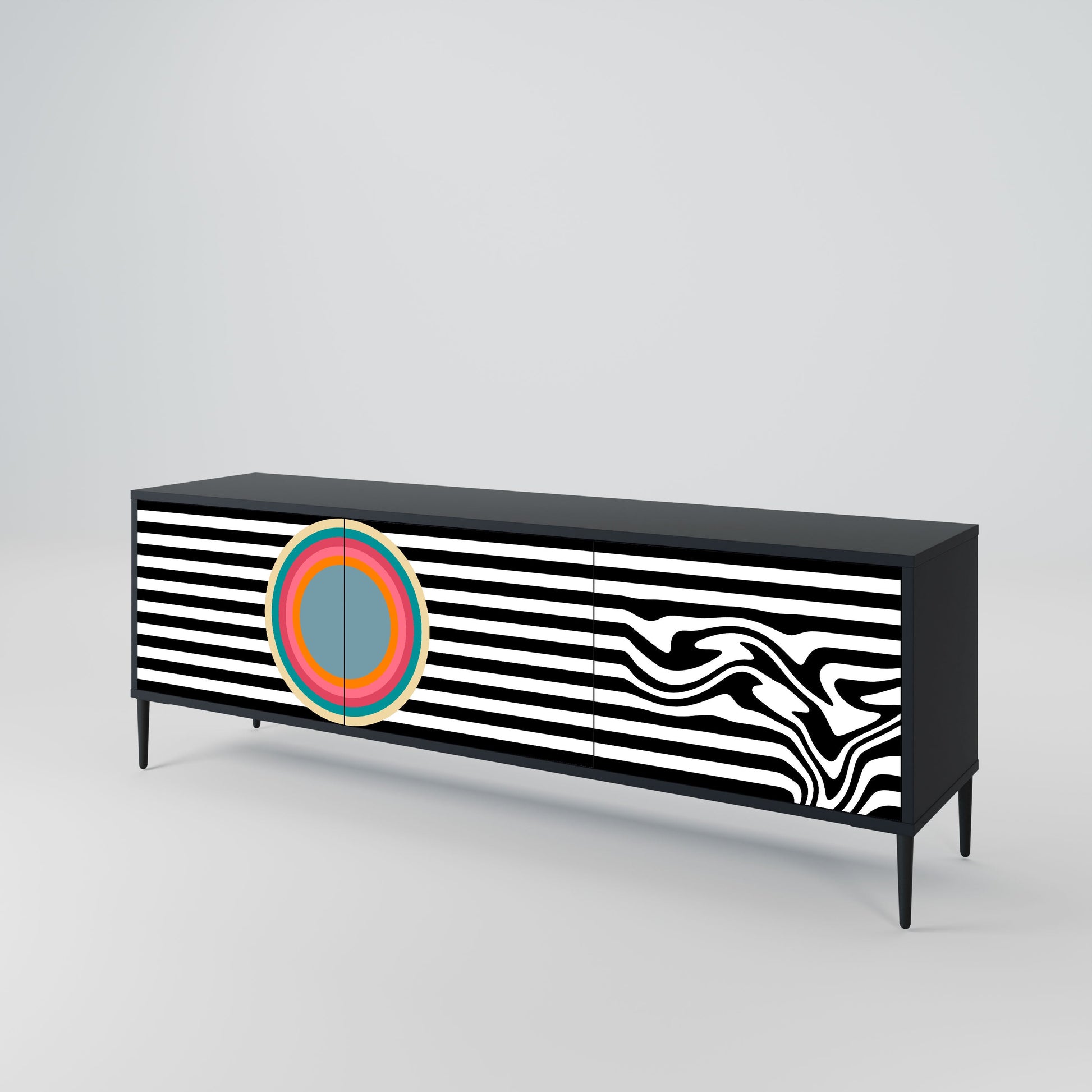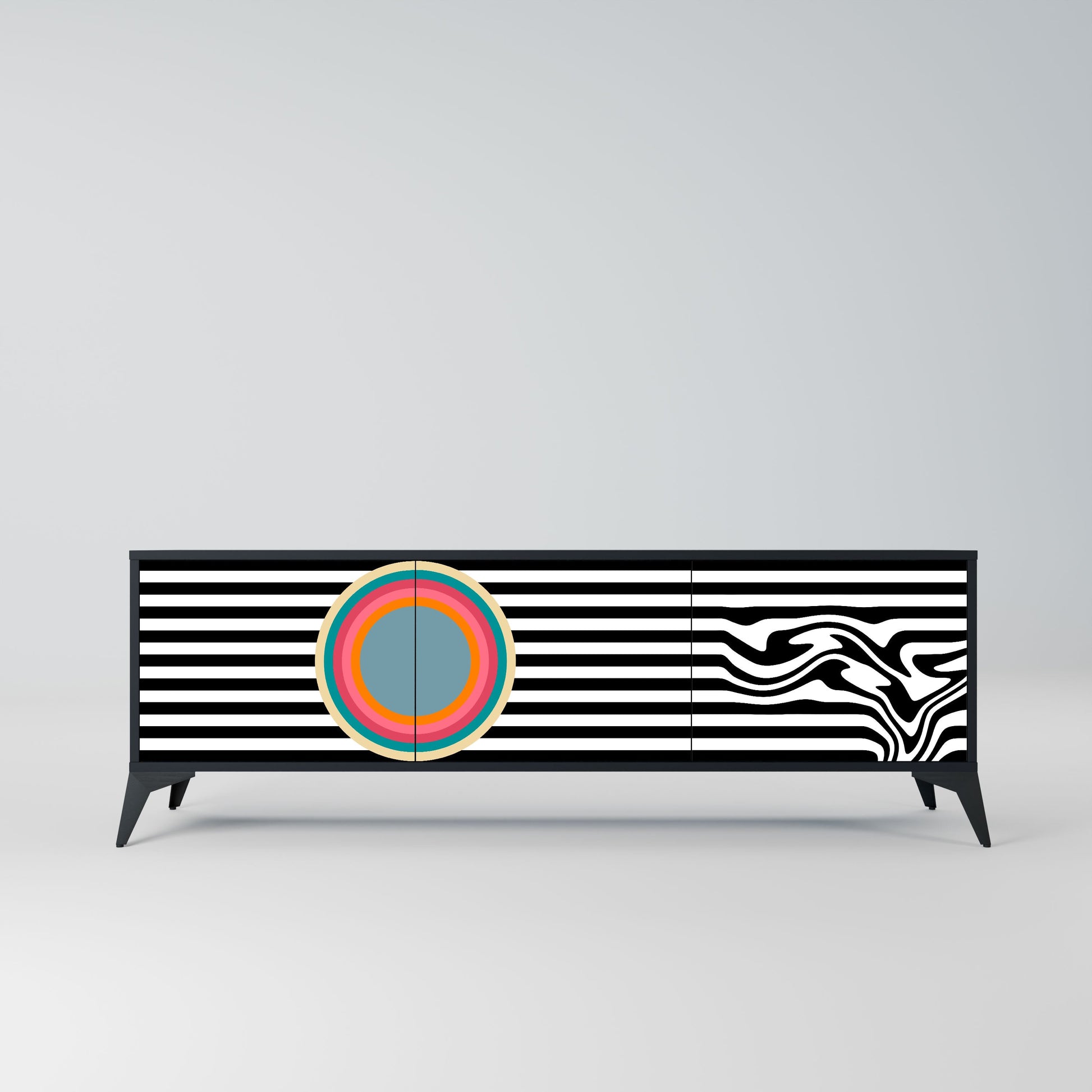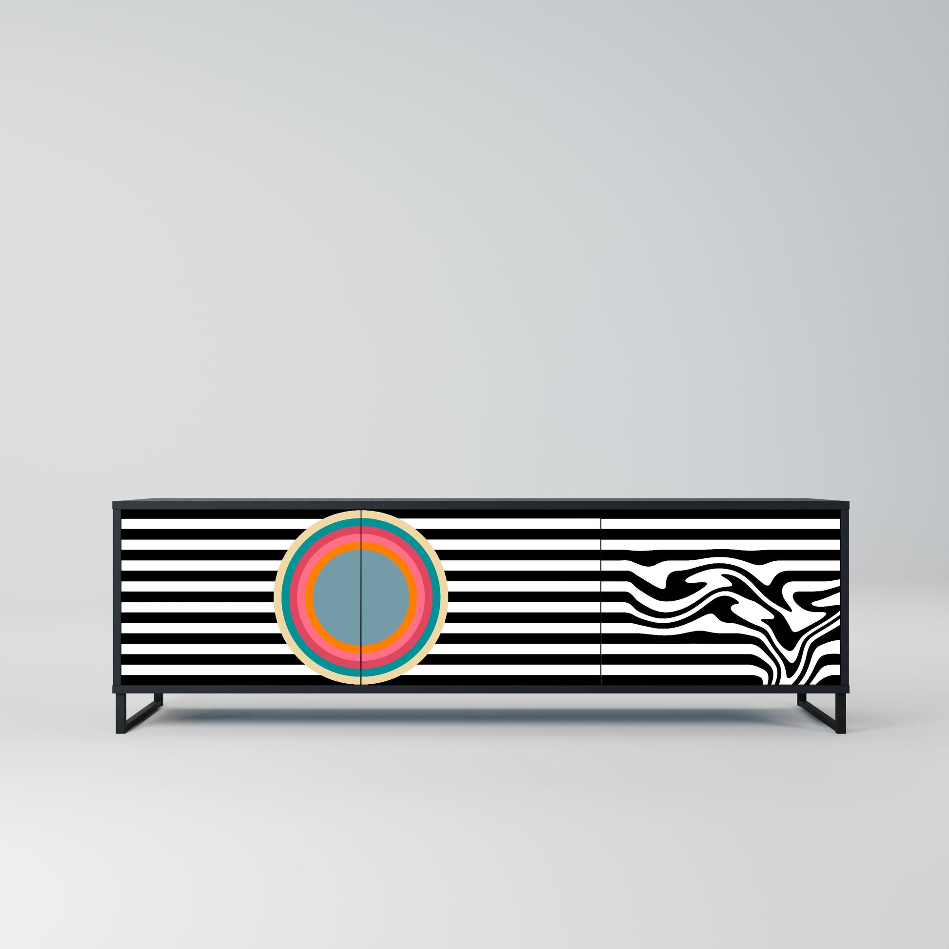 The black body of the stand creates a bold, modern accent that pairs beautifully with industrial and minimalist arrangements. The fronts with a designer print add character and uniqueness, making this piece not only practical but also a standout decorative element.