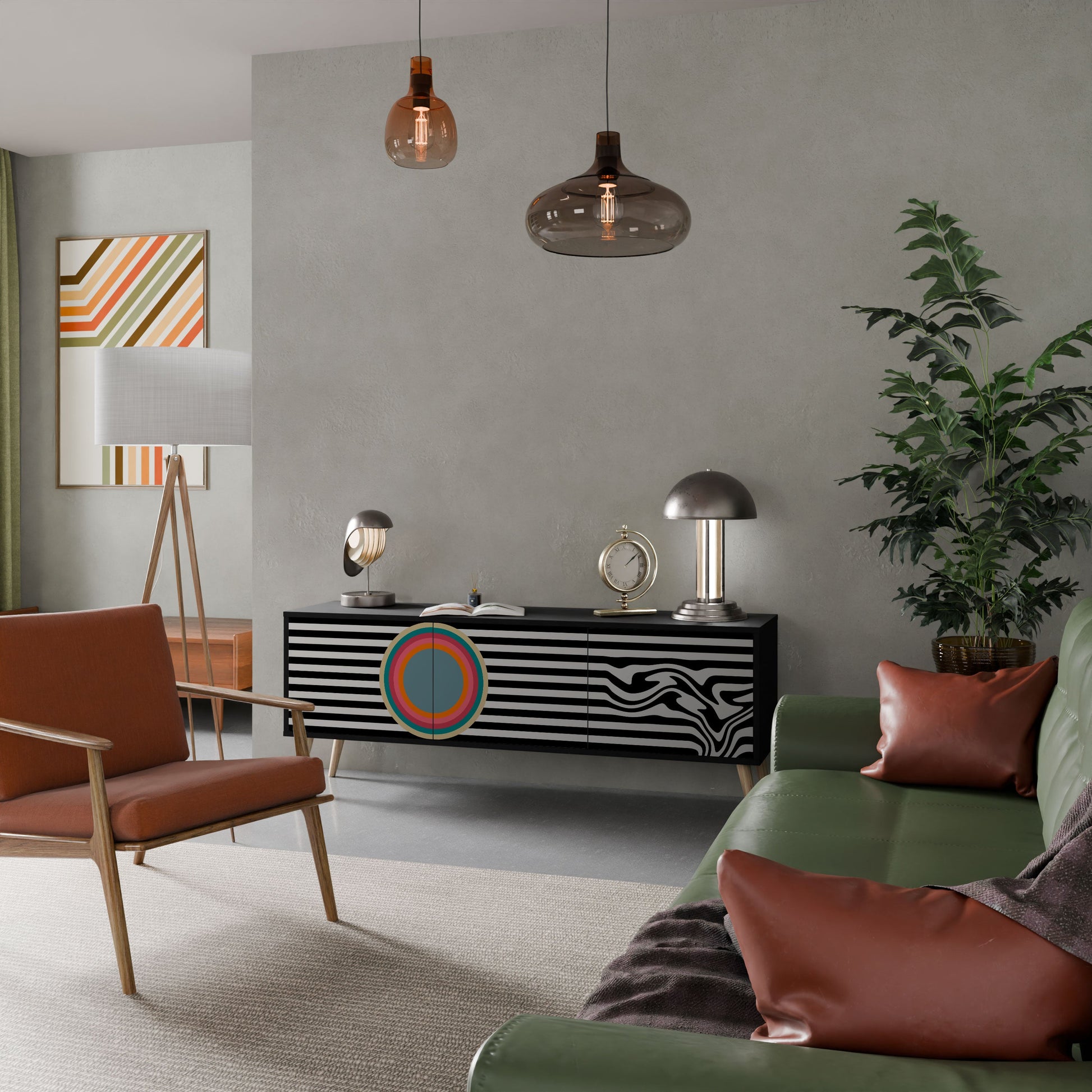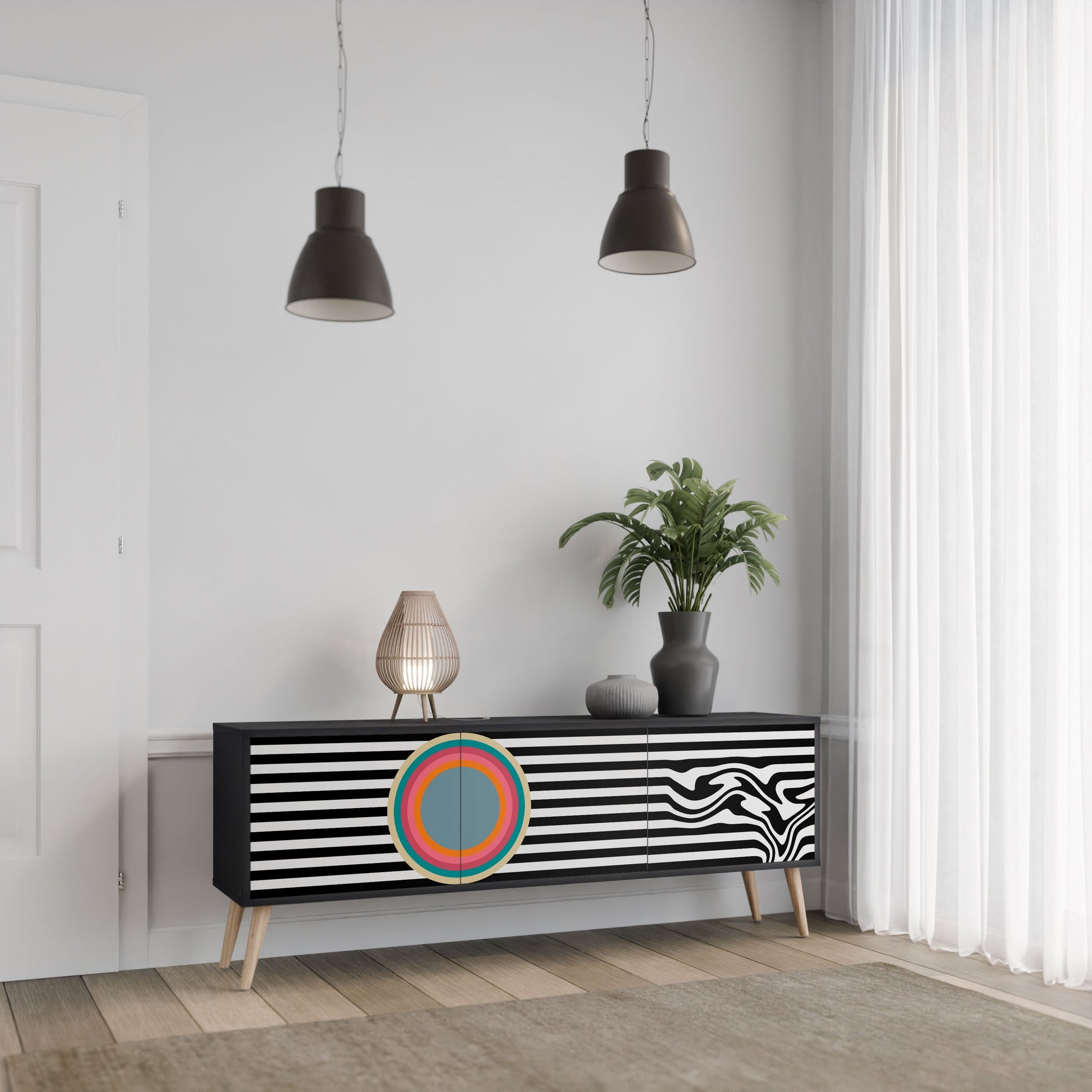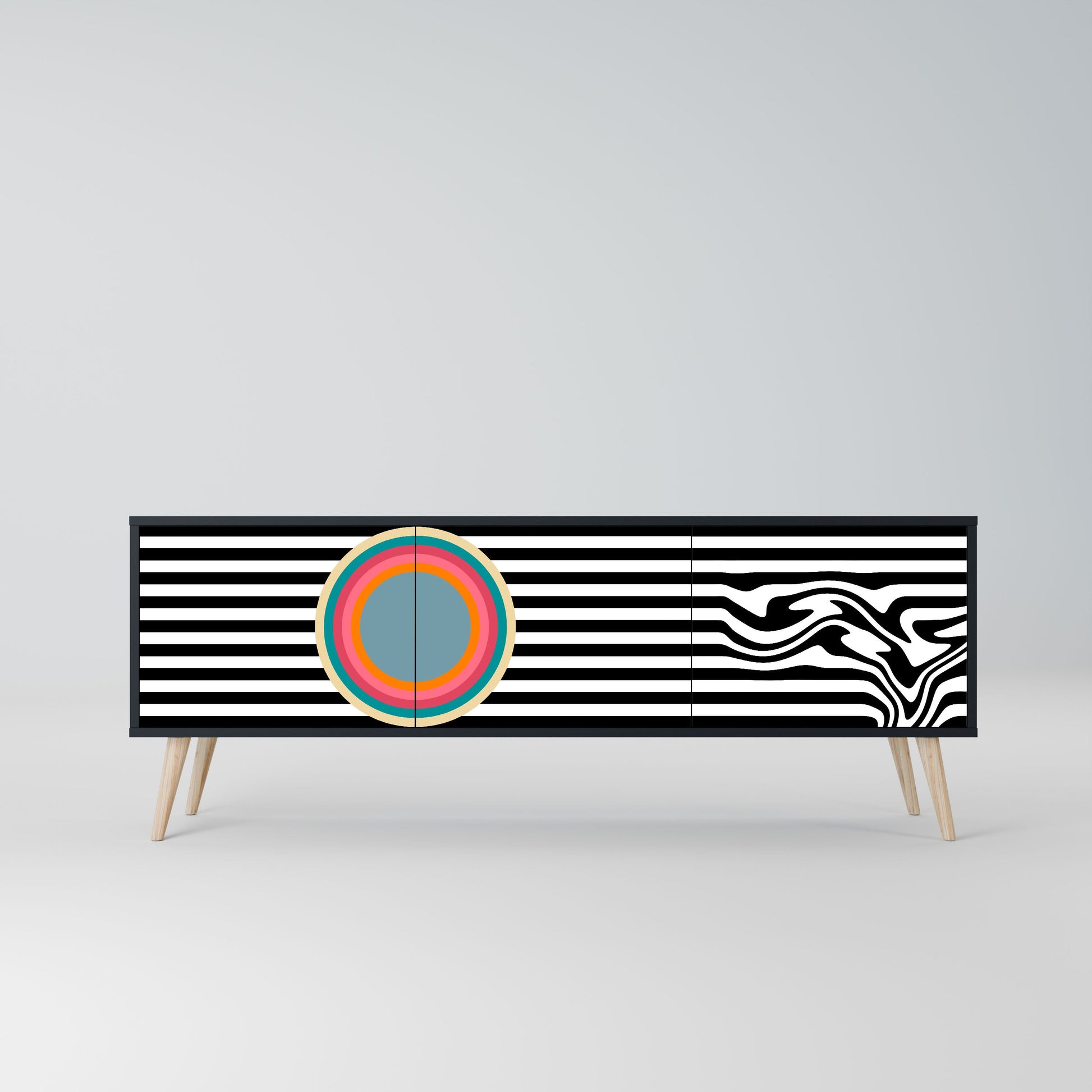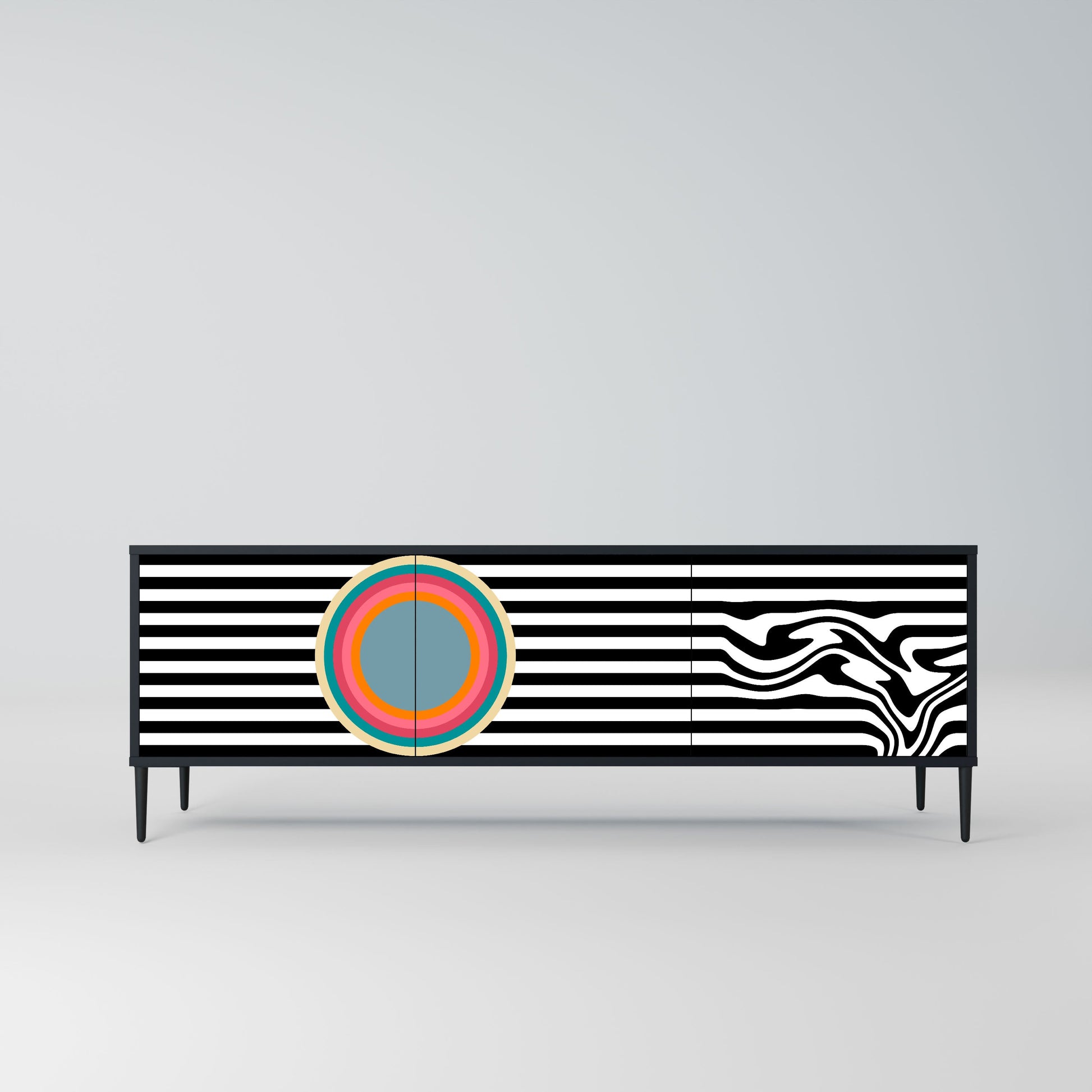 The black body of the stand creates a bold, modern accent that pairs beautifully with industrial and minimalist arrangements. The fronts with a designer print add character and uniqueness, making this piece not only practical but also a standout decorative element.
