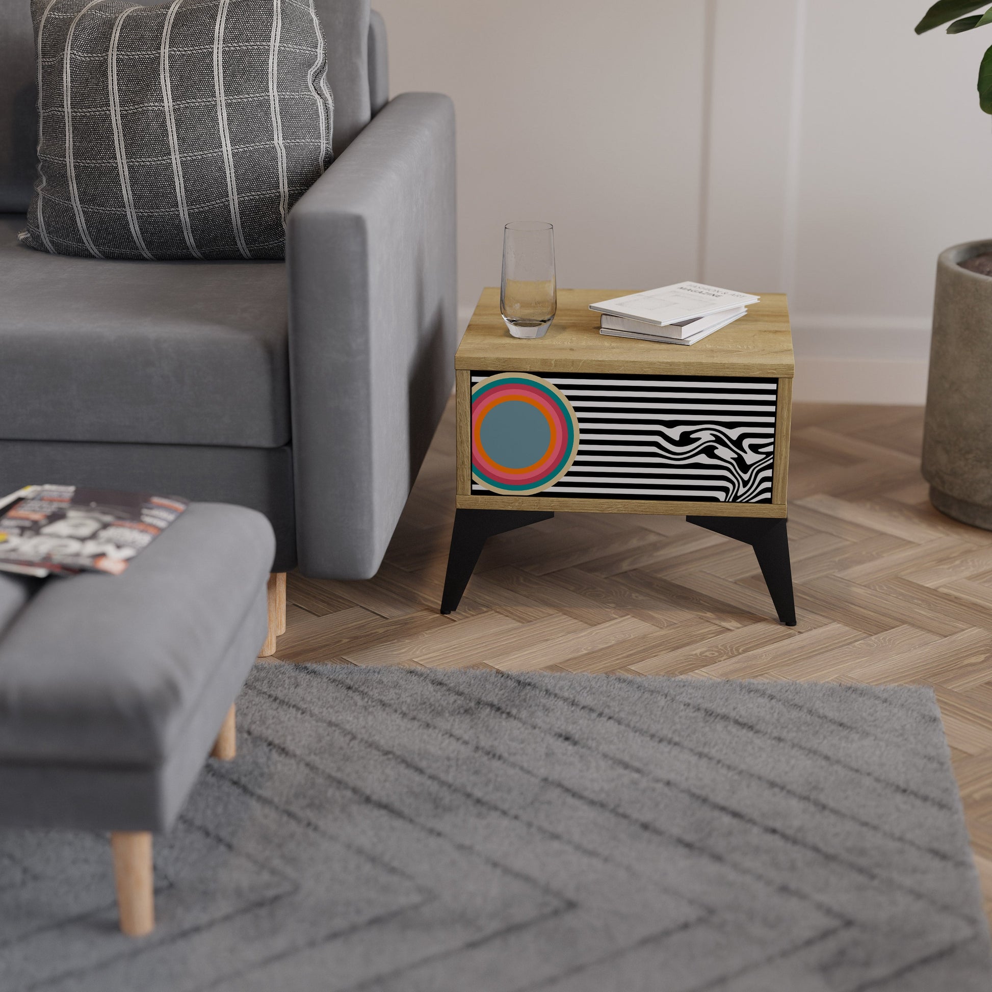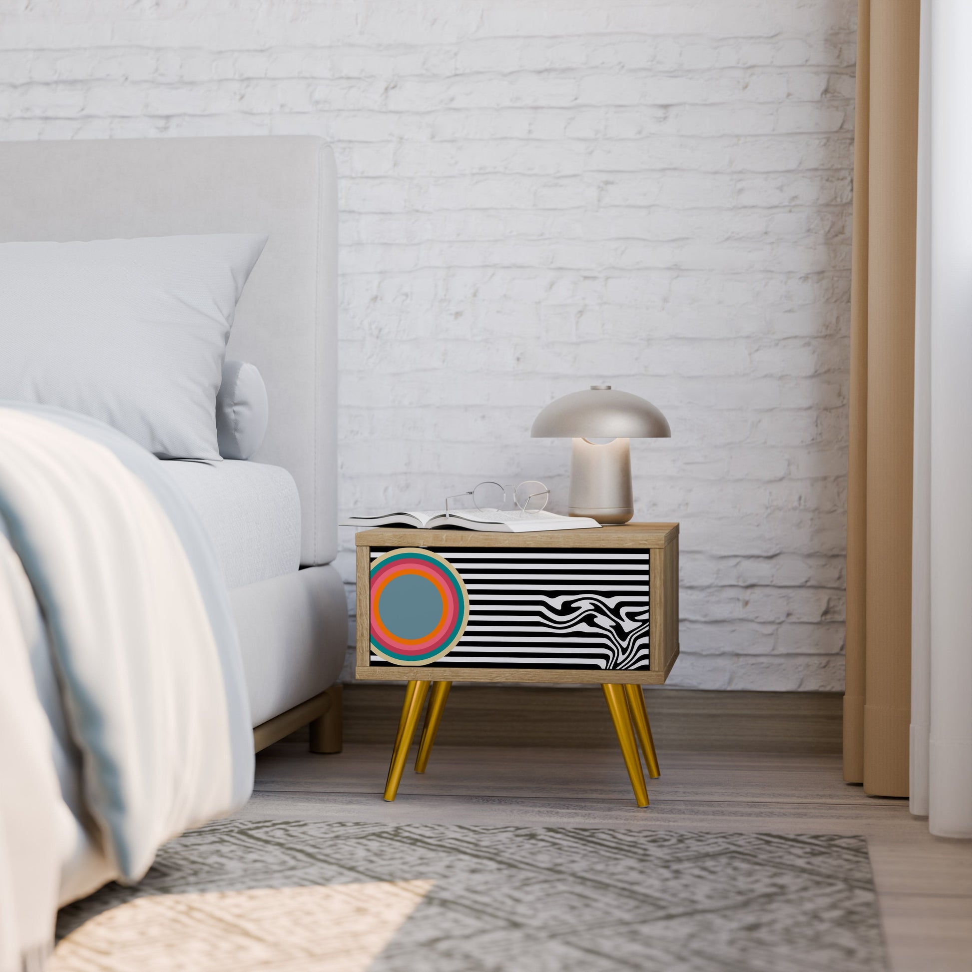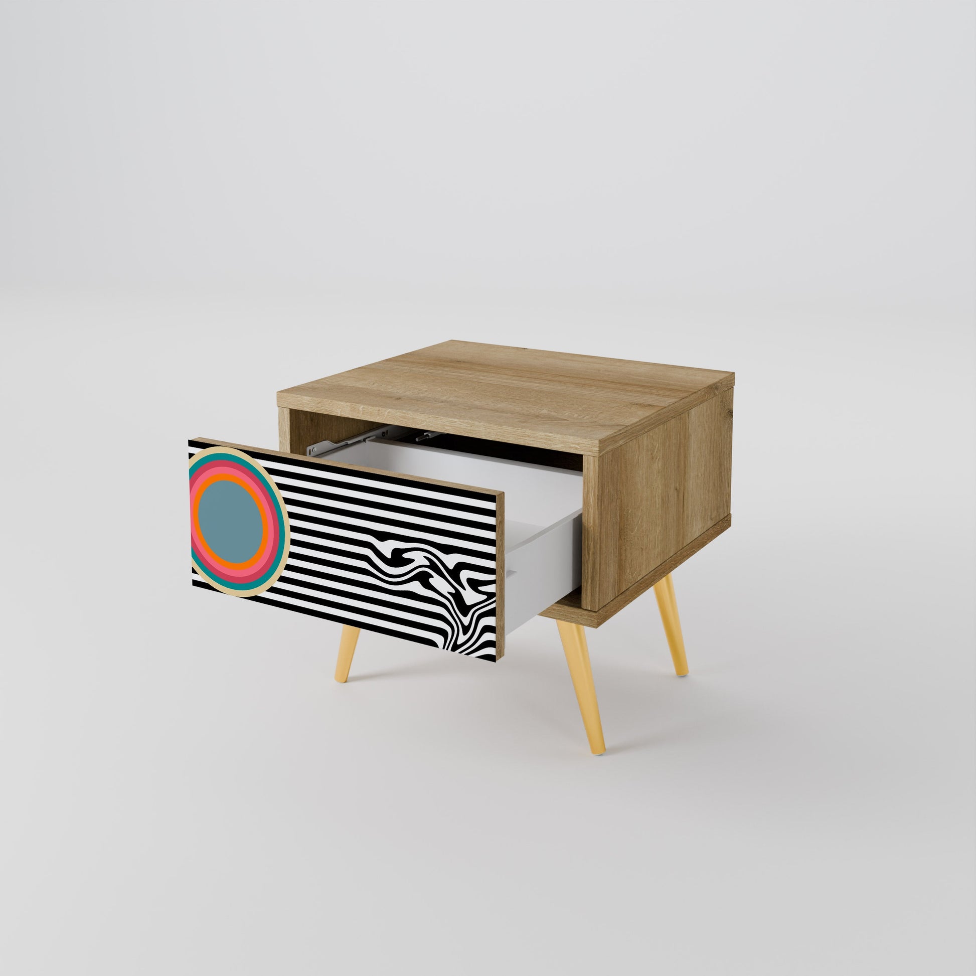 Discover functionality and elegance in a compact form with our bedside unit with a drawer. This practical and stylish piece of furniture perfectly combines the natural beauty of wood with modern design on the drawer front, creating a harmonious element for any bedroom.