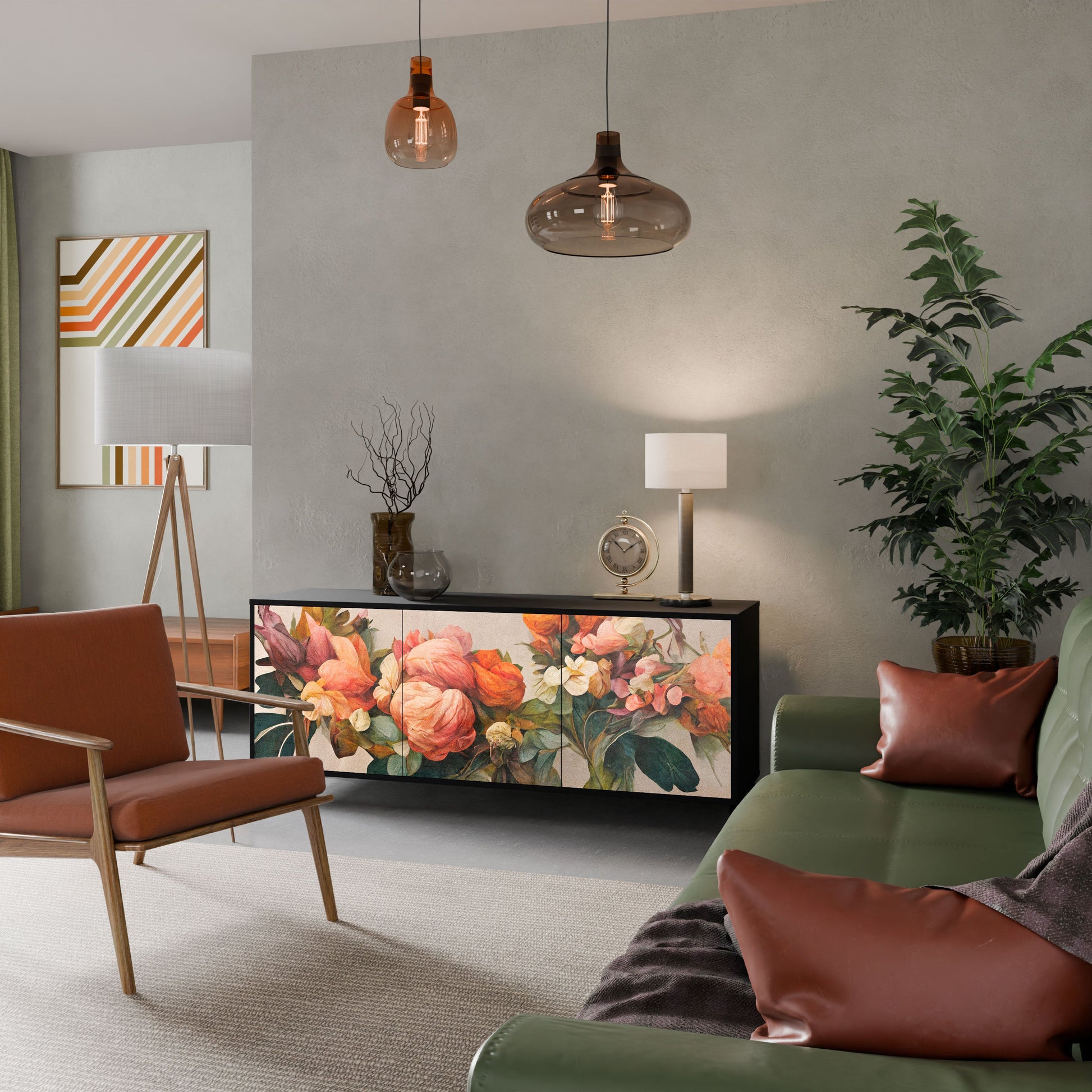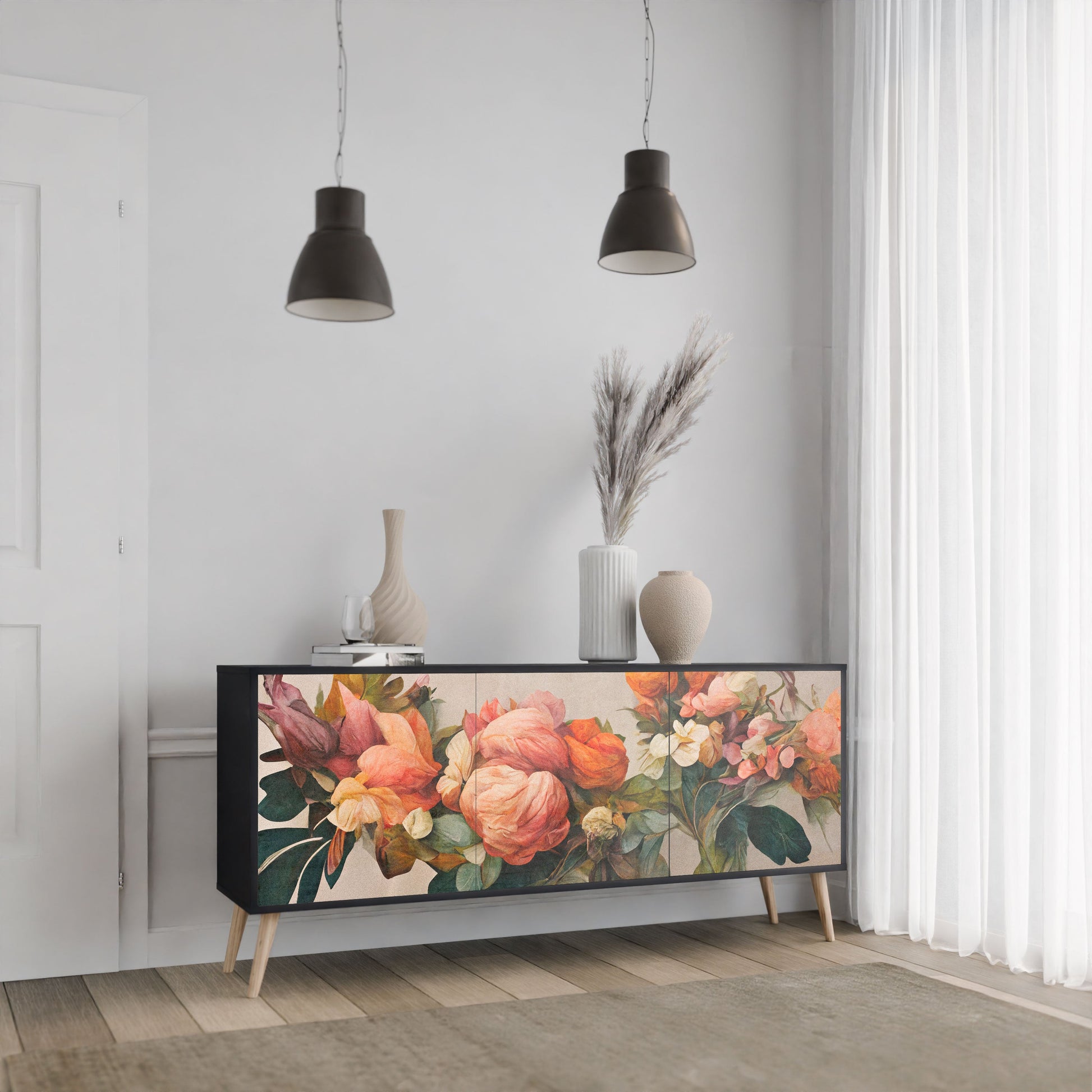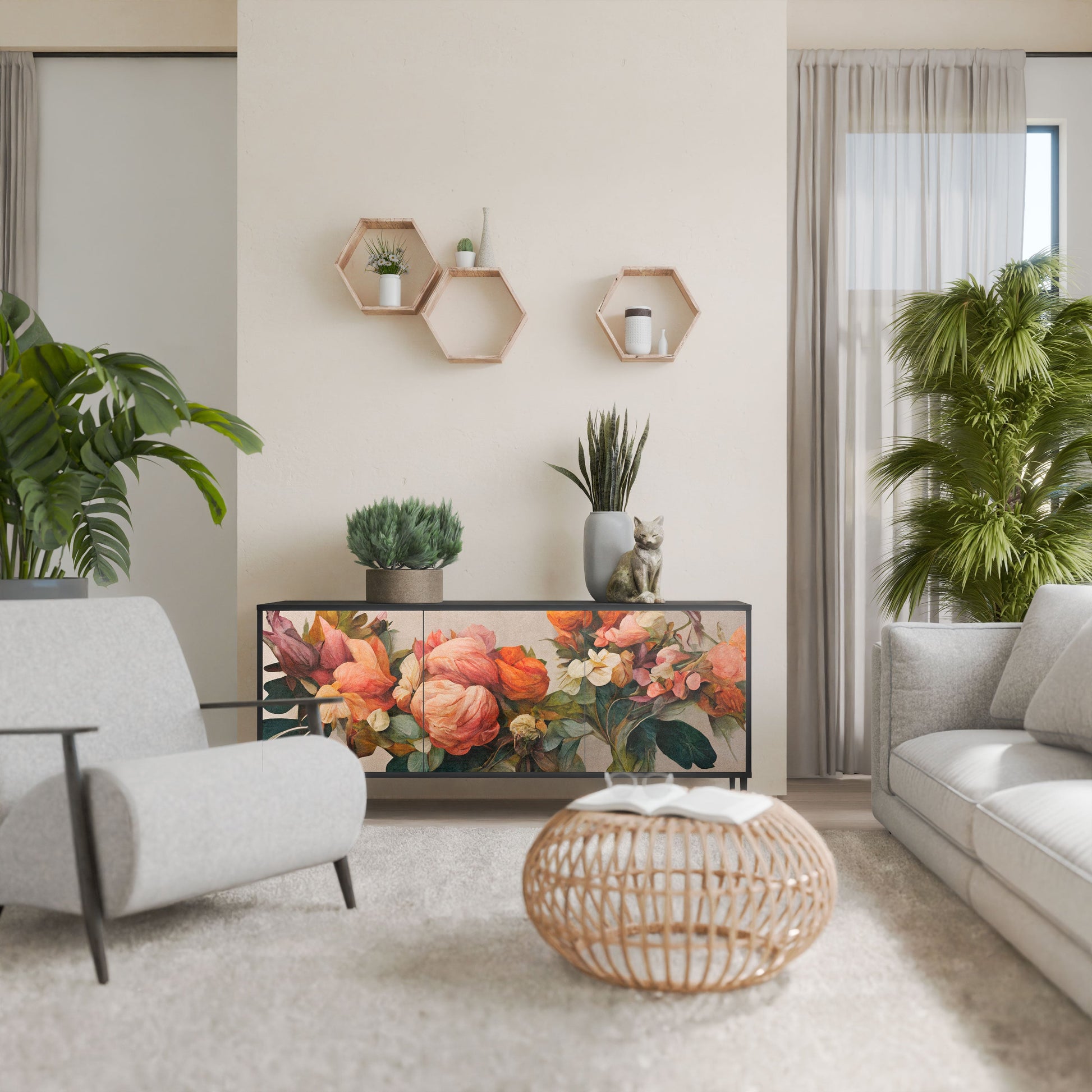 Elegance and functionality in a single piece of furniture – our 3-Door Sideboard with a black body is the perfect solution for lovers of stylish, modern interiors. The black body emphasizes the bold character of the furniture, while the fronts with a unique print add an artistic touch. It fits perfectly in the living room, bedroom, or office, complementing both modern and industrial arrangements.