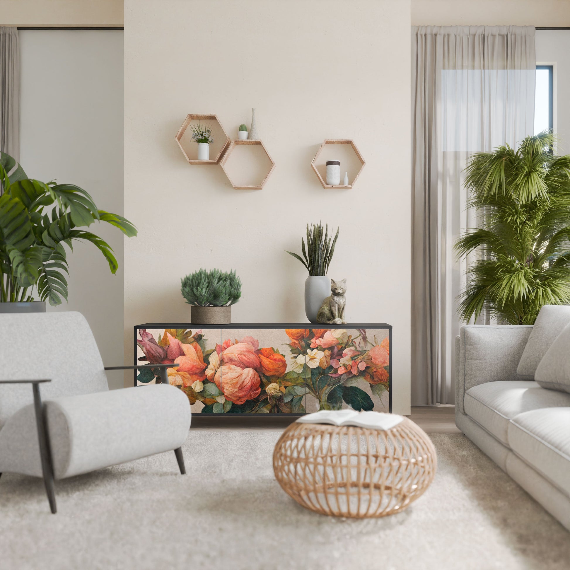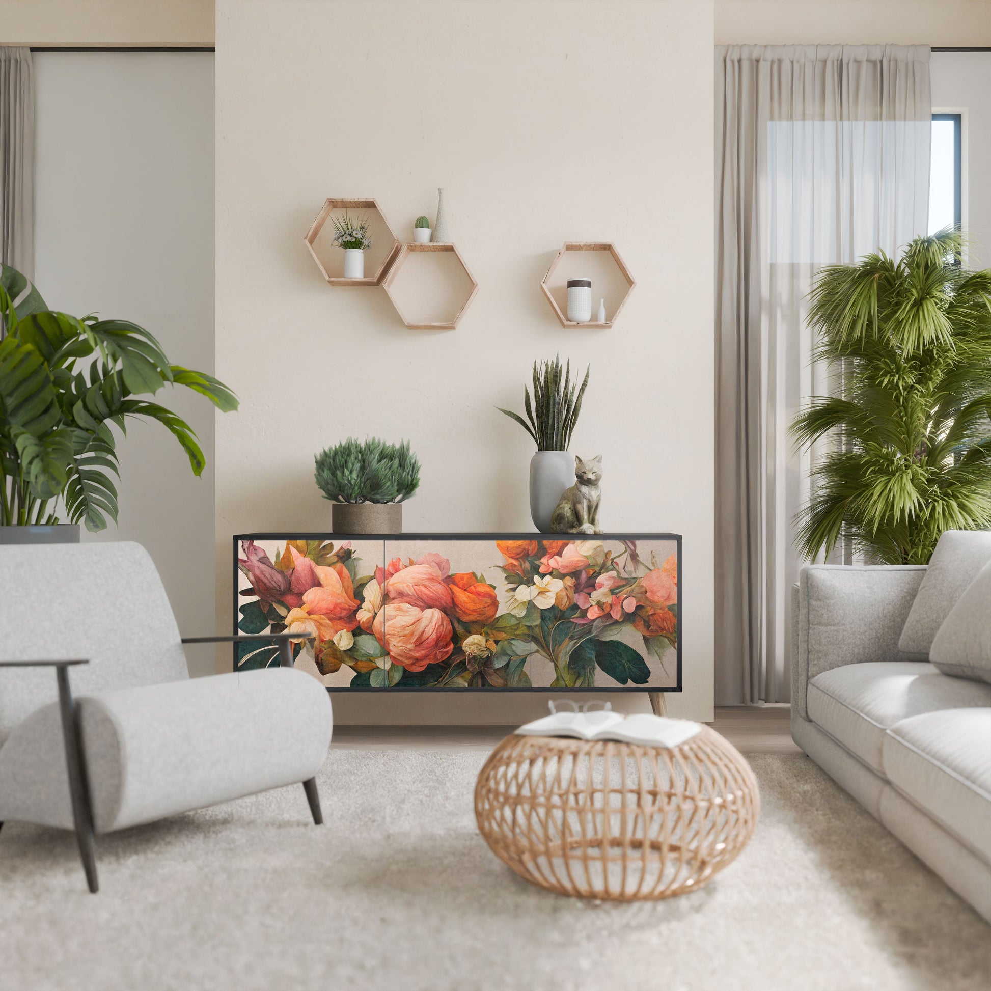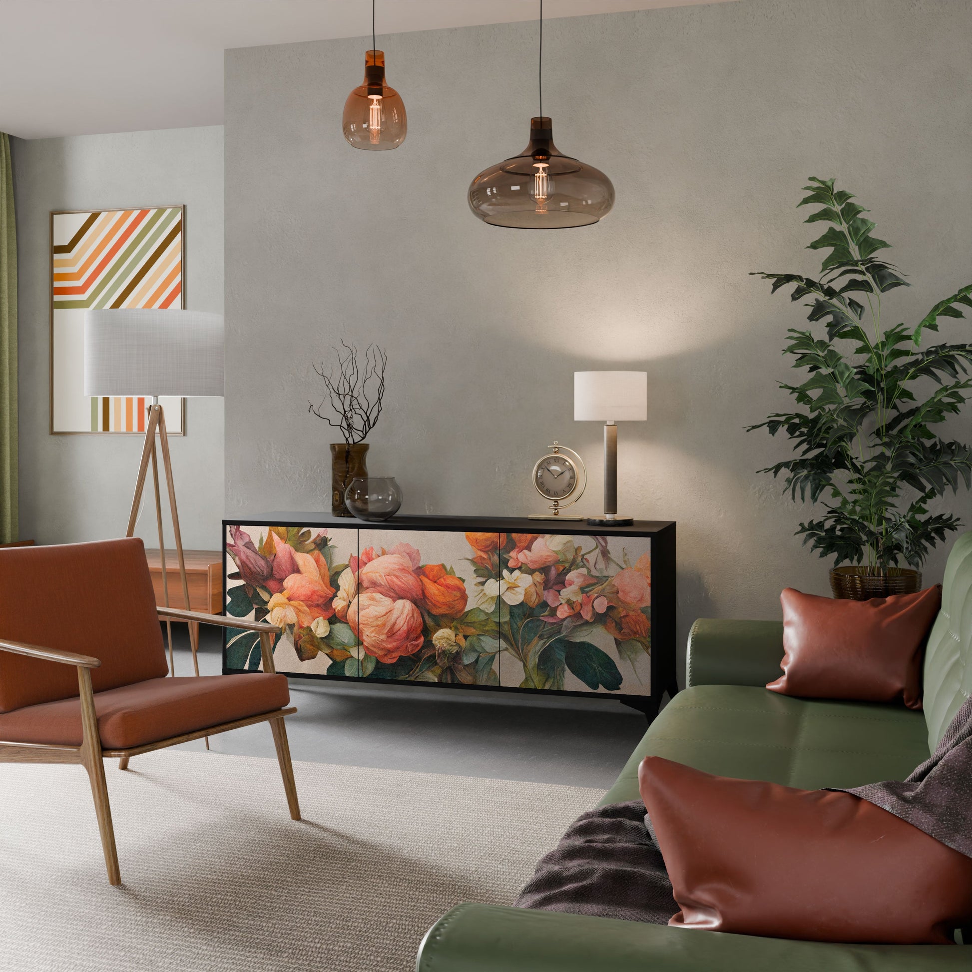 Elegance and functionality in a single piece of furniture – our 3-Door Sideboard with a black body is the perfect solution for lovers of stylish, modern interiors. The black body emphasizes the bold character of the furniture, while the fronts with a unique print add an artistic touch. It fits perfectly in the living room, bedroom, or office, complementing both modern and industrial arrangements.