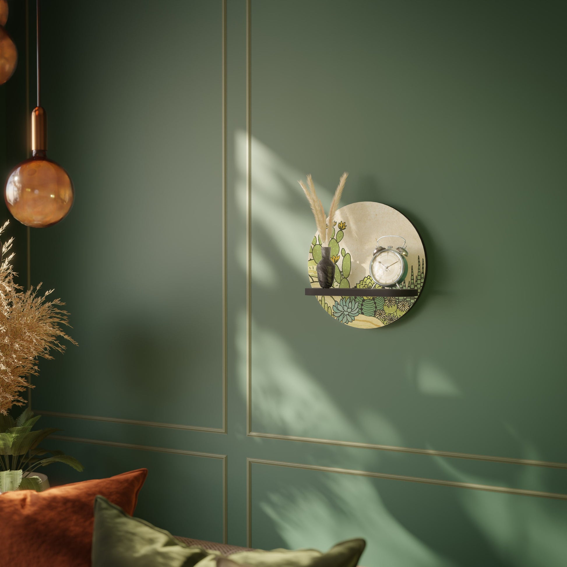 SUCCULENTS KALEIDOSCOPE Round Art Shelf In Black Finish
