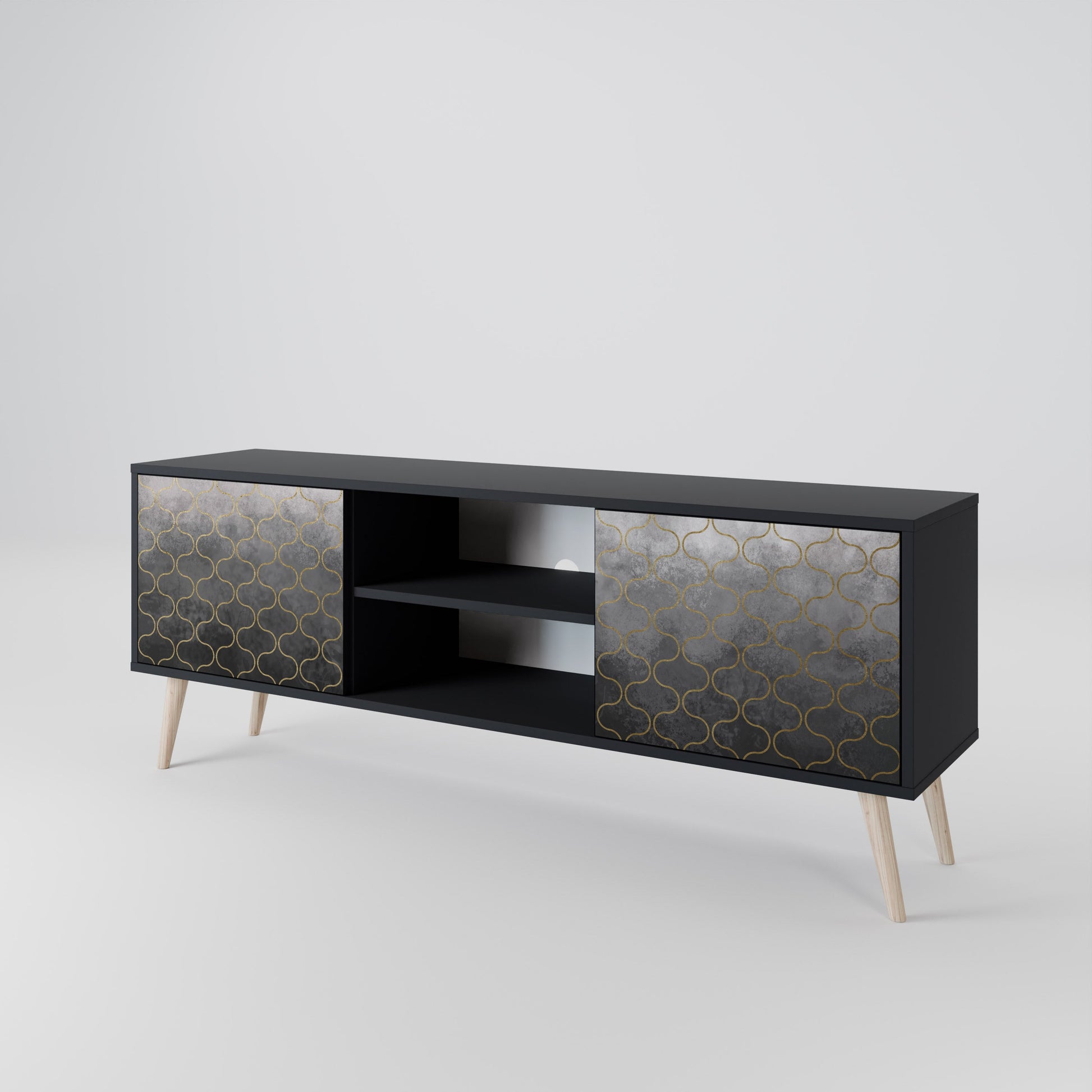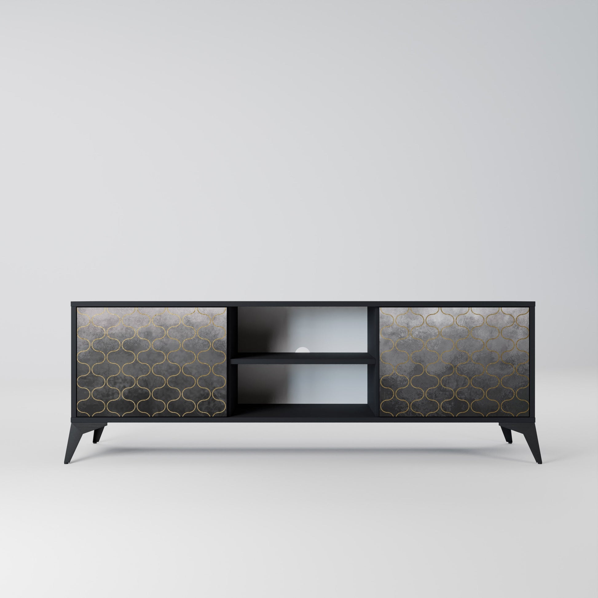 The black body gives the TV stand an elegant, modern look, while the fronts with an exceptional print draw attention, making it the focal point of any room. The spacious interior provides room for electronic devices, cables, remotes, and other accessories, helping you maintain order and organization.