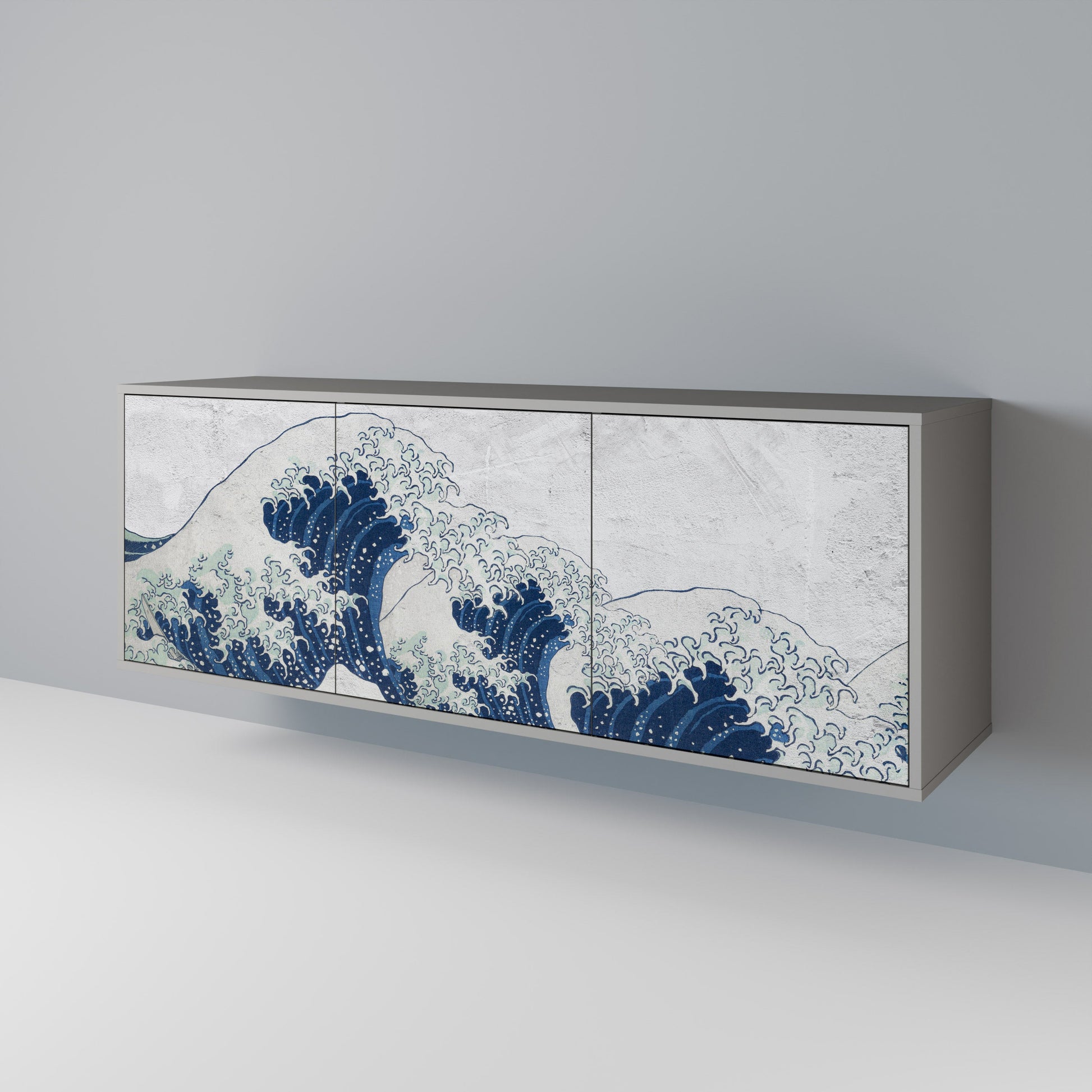 THE GREAT WAVE AT KANAGAWA 3-Door Sideboard in Grey Finish