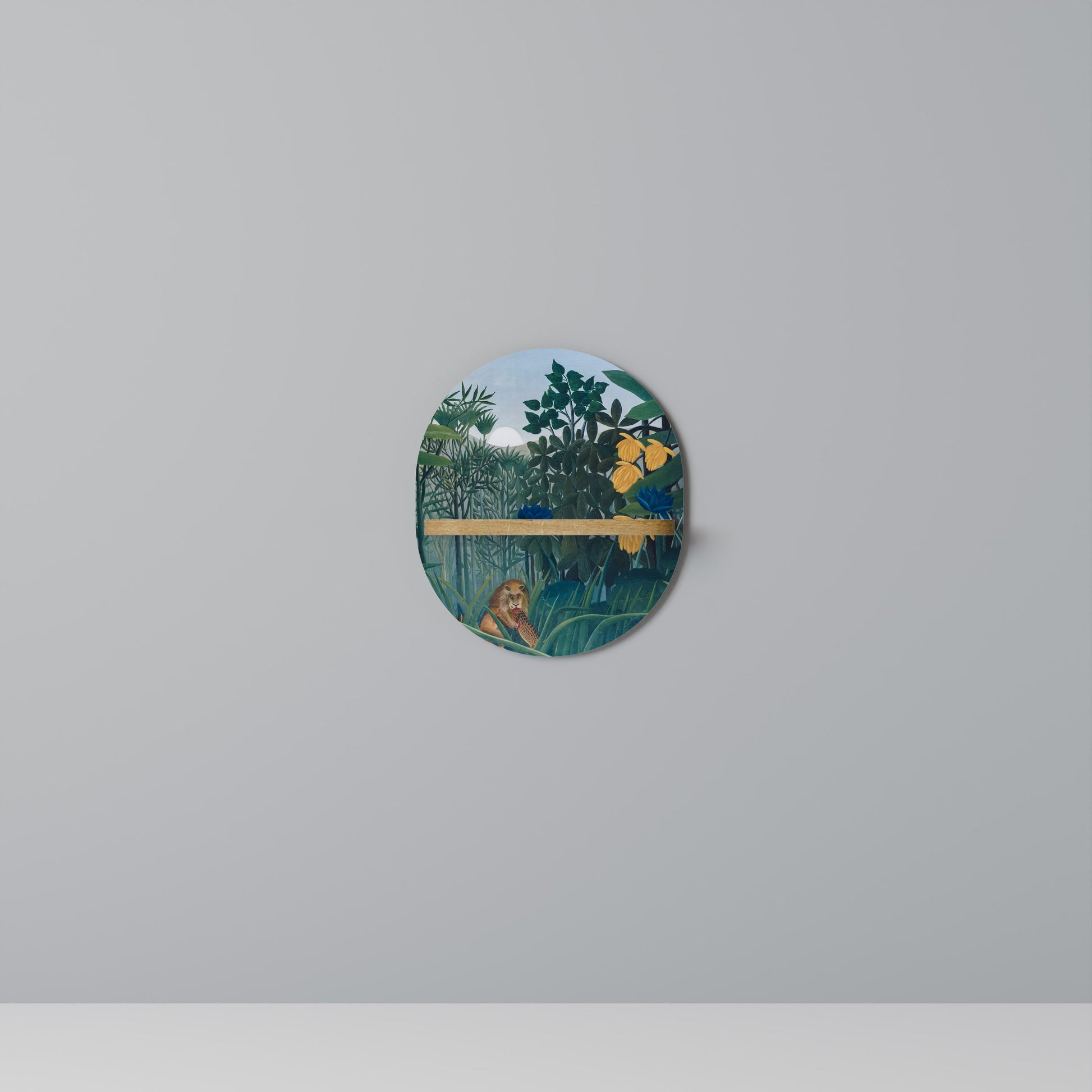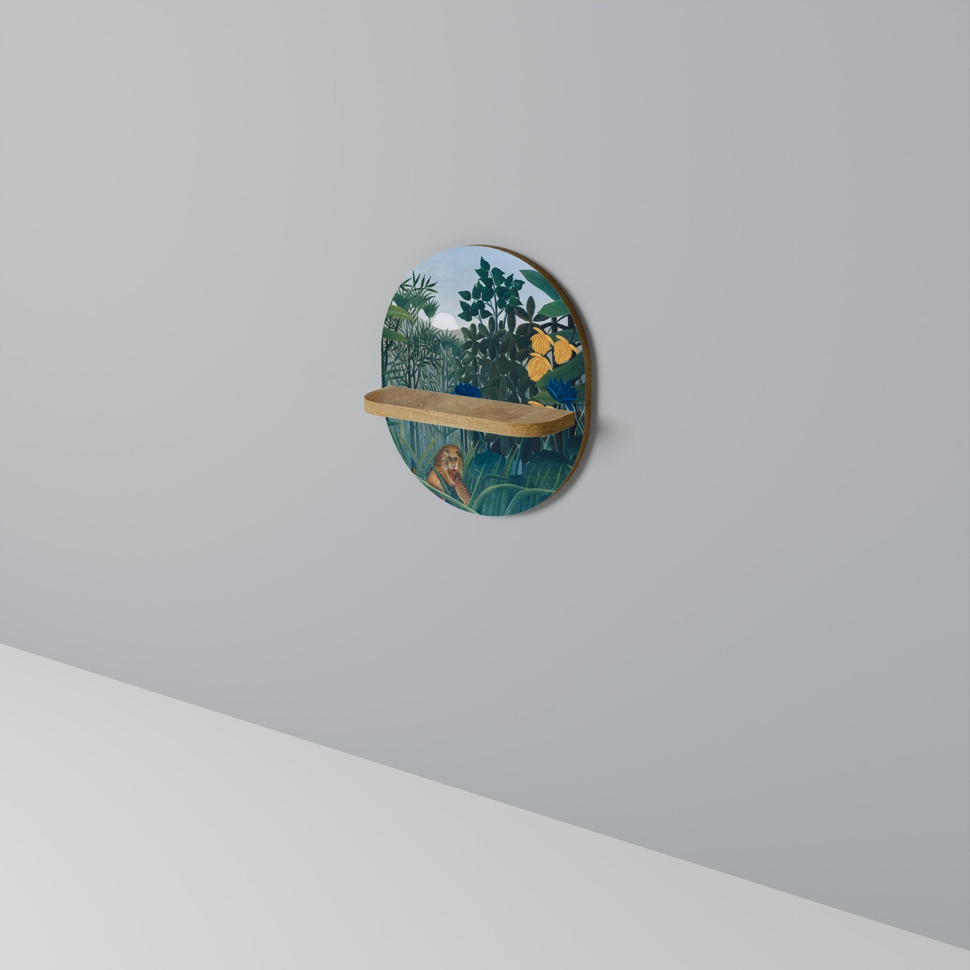 THE REPAST OF THE LION Oval Art Shelf In Oak Effect