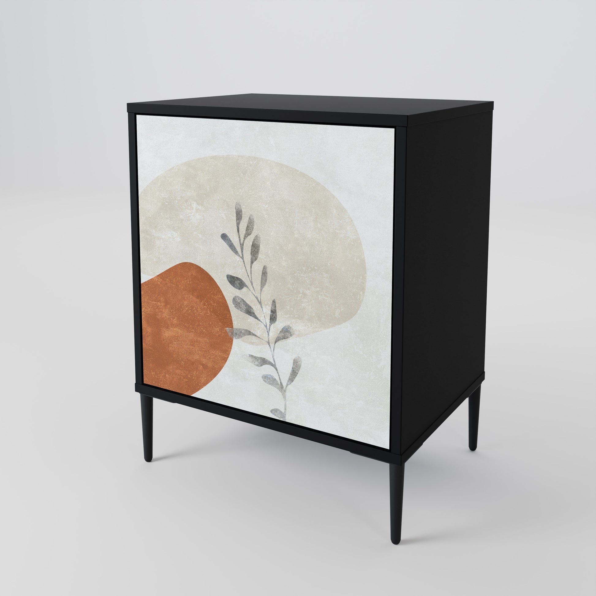 This compact yet remarkably elegant piece of furniture impresses with its minimalist design, perfectly fitting into both modern and classic interiors. The black body emphasizes the furniture’s bold character, while the fronts with a unique print add an artistic touch.