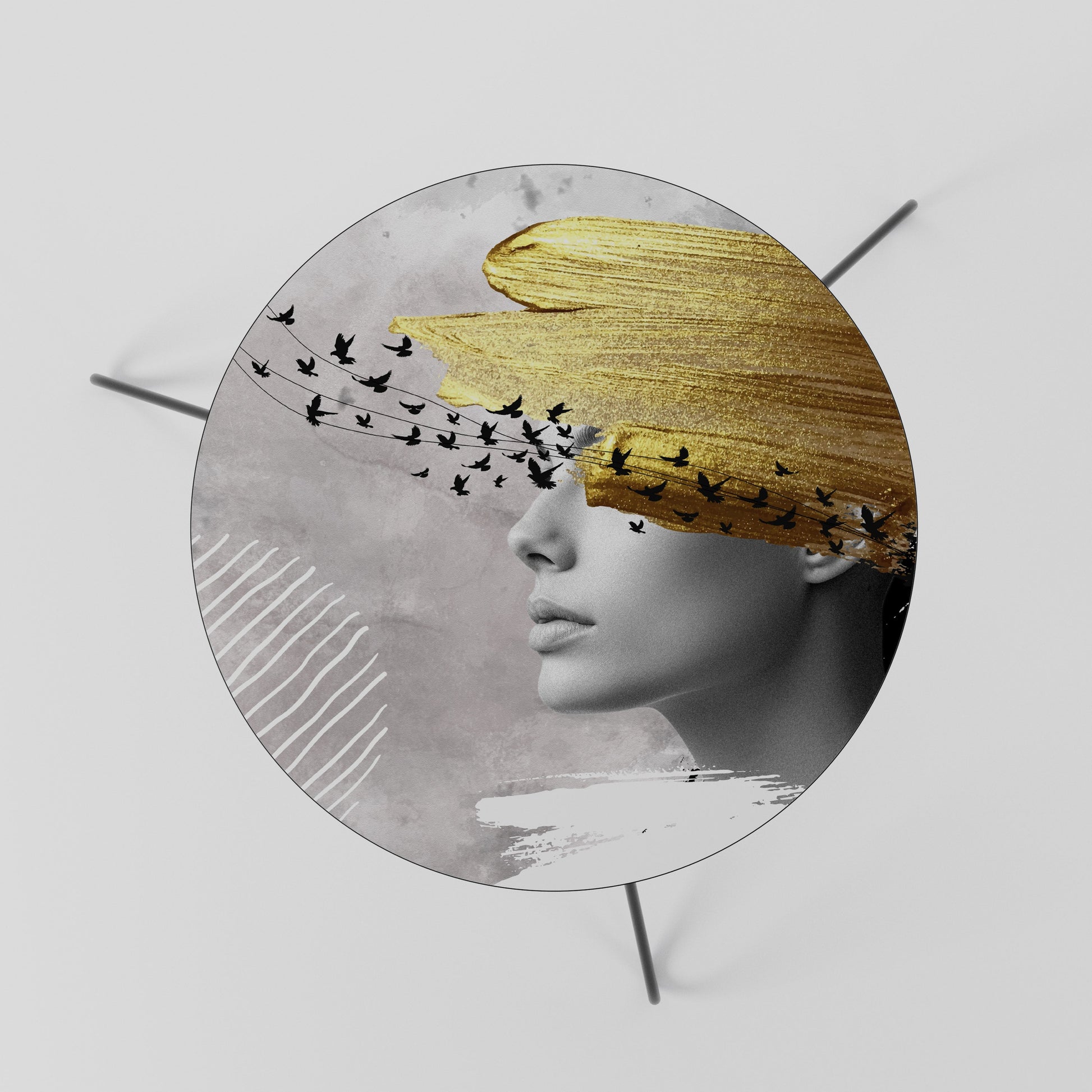 The tabletop features a high-quality printed motif, adding a distinctive artistic accent to your space. Crafted from durable chipboard covered with laminate, it ensures long-lasting use and resistance to daily wear.