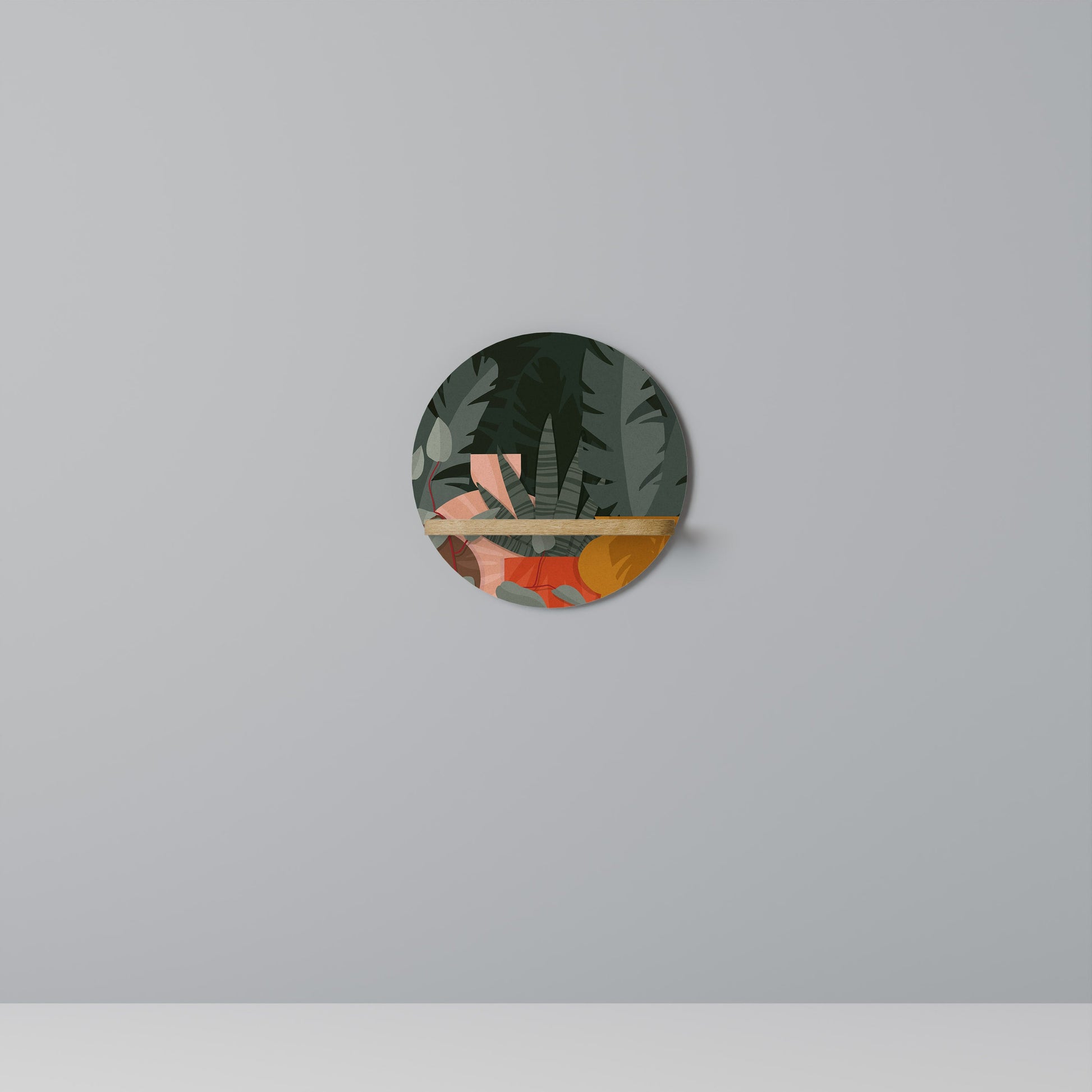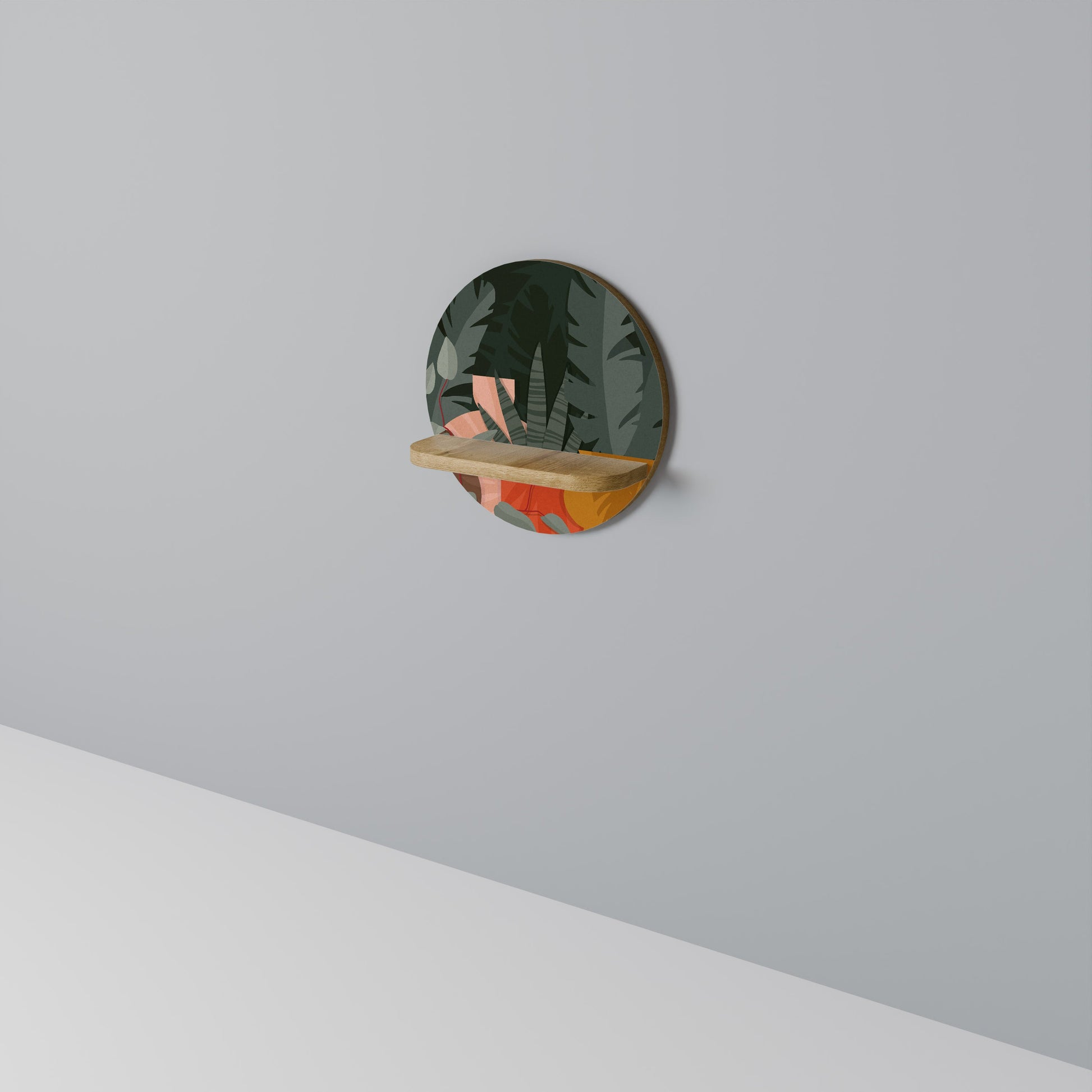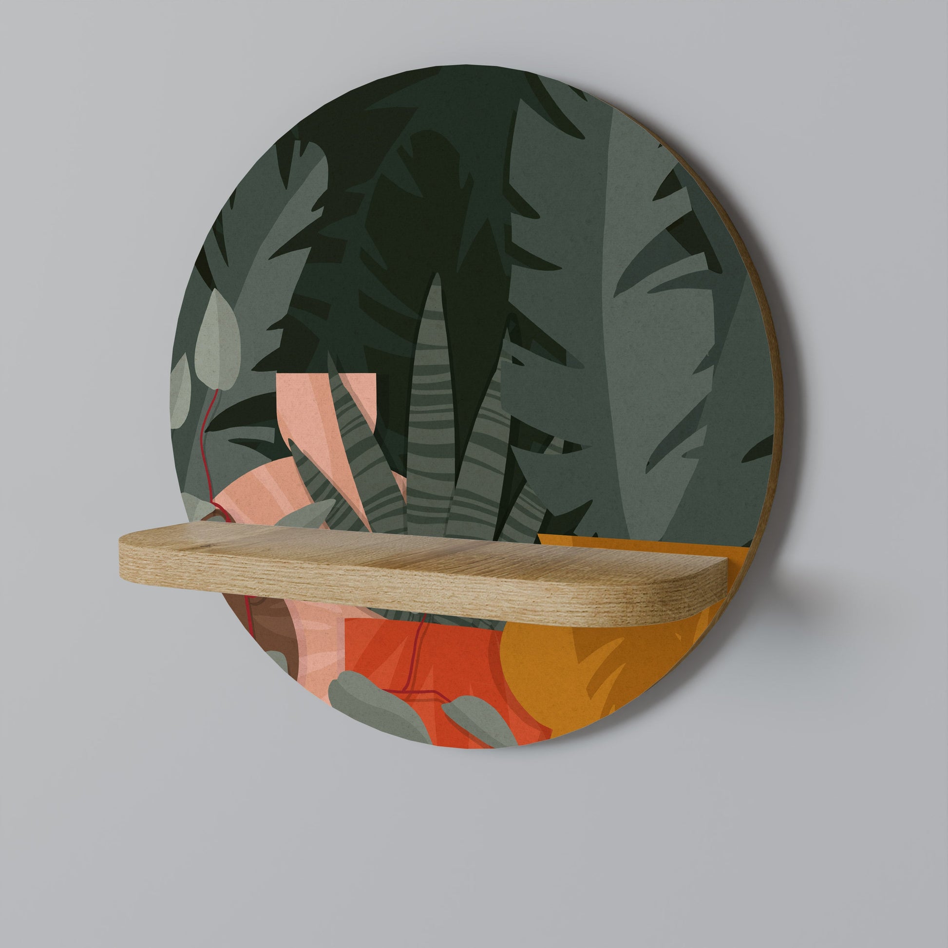 TROPICAL COMPOSITION Round Art Shelf In Oak Effect