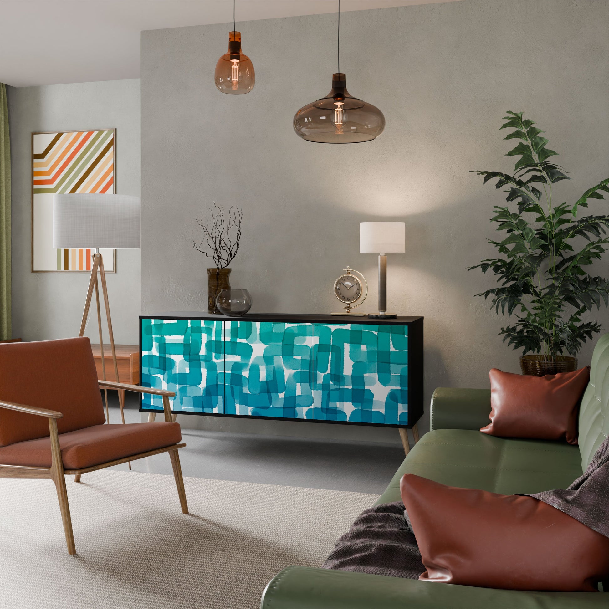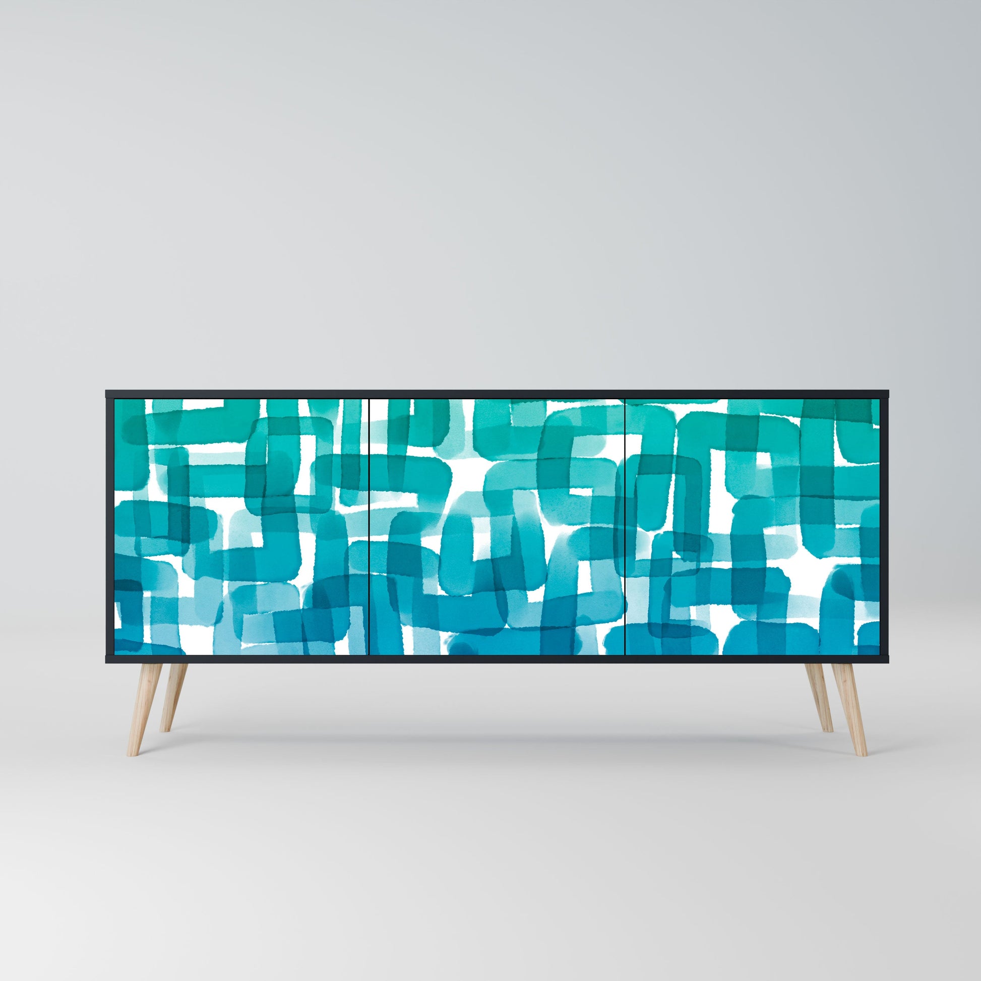 TURQUOISE RECTANGLES 3-Door Sideboard in Black Finish
