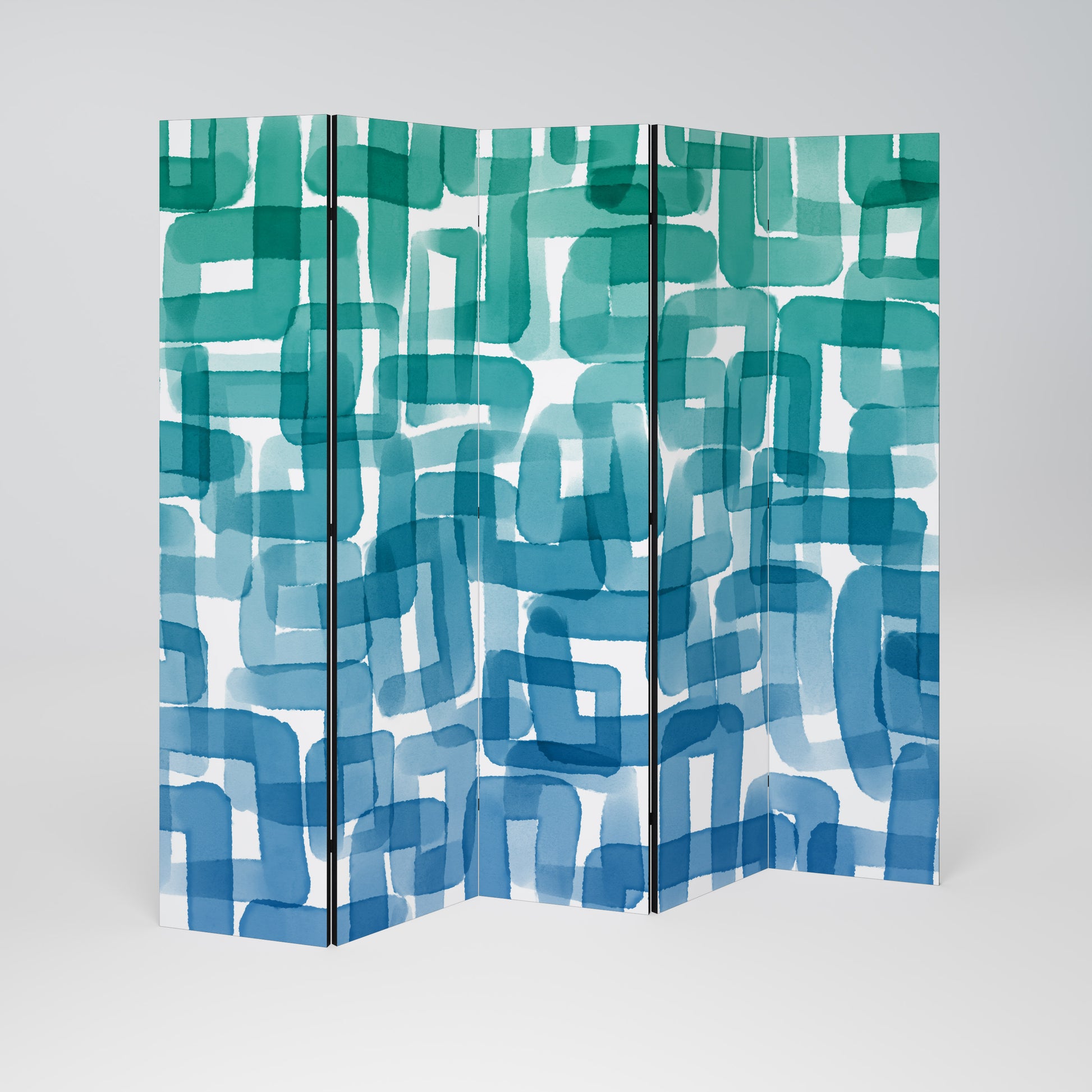 TURQUOISE RECTANGLES Decorative 5-Panel Room Divider