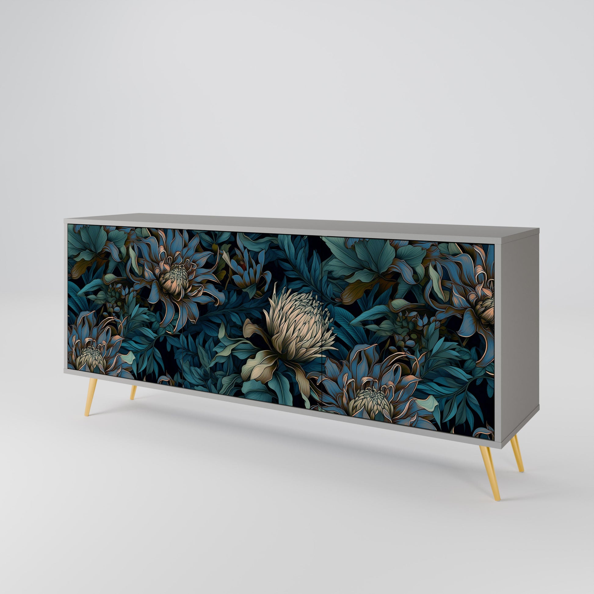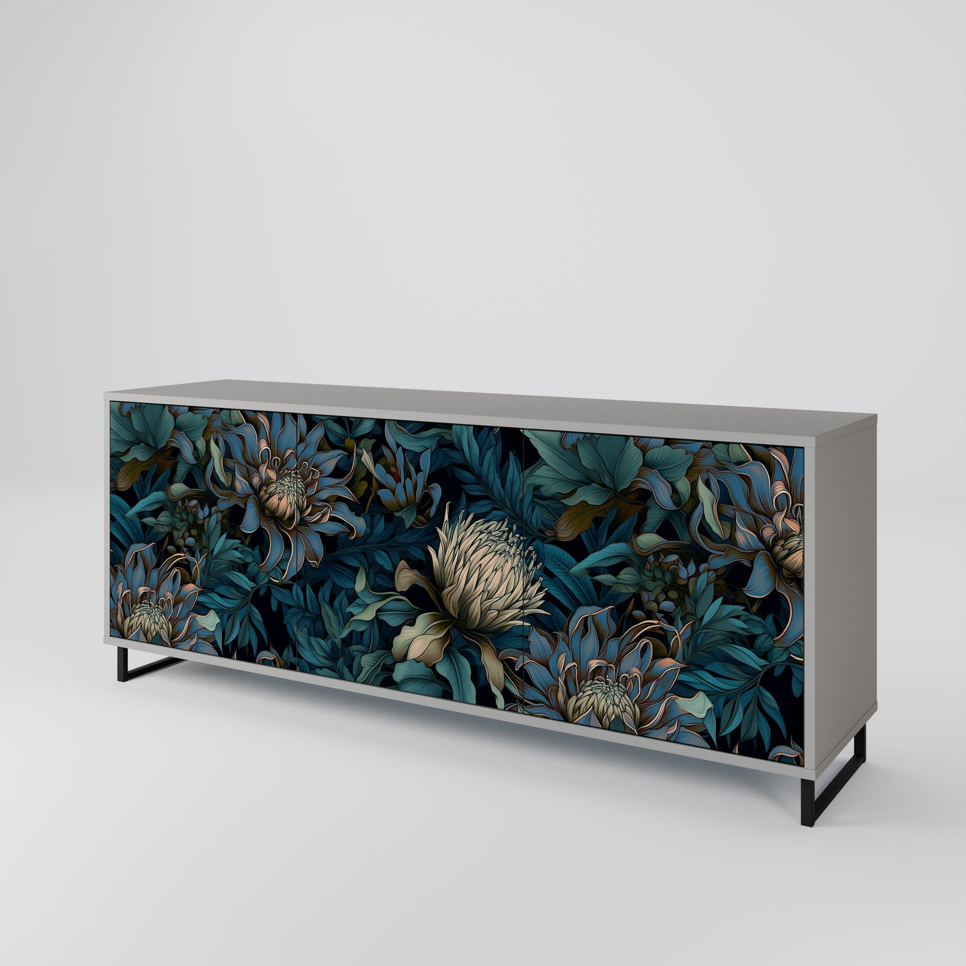 TWILIGHT BLOOM 3-Door Sideboard in Grey Finish