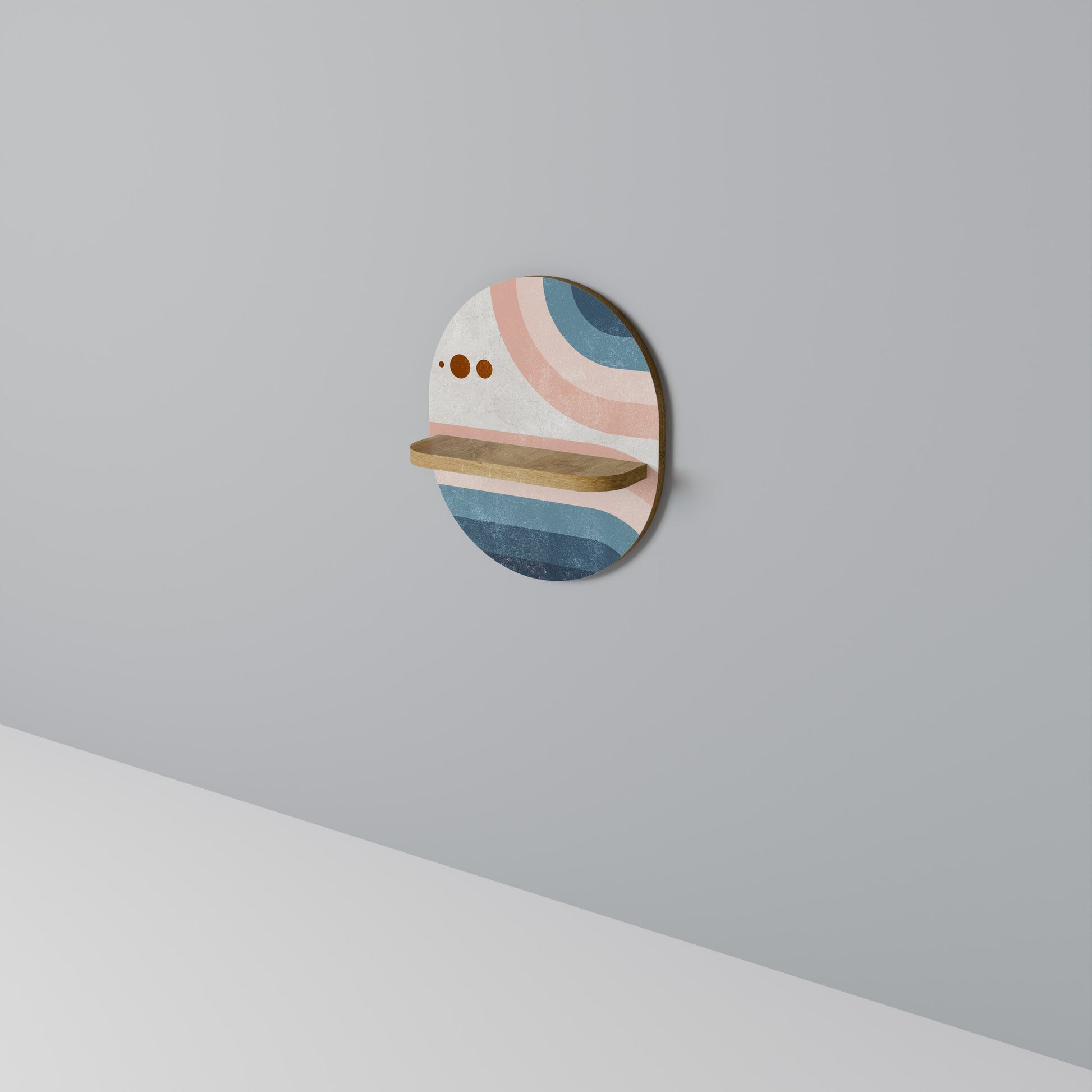 The shelf stands out with its unique, oval shape that perfectly aligns with modern interior design trends, while maintaining a universal charm that suits any room. The natural oak decor gives it a warm and organic appearance, blending seamlessly with both classic and modern arrangements.