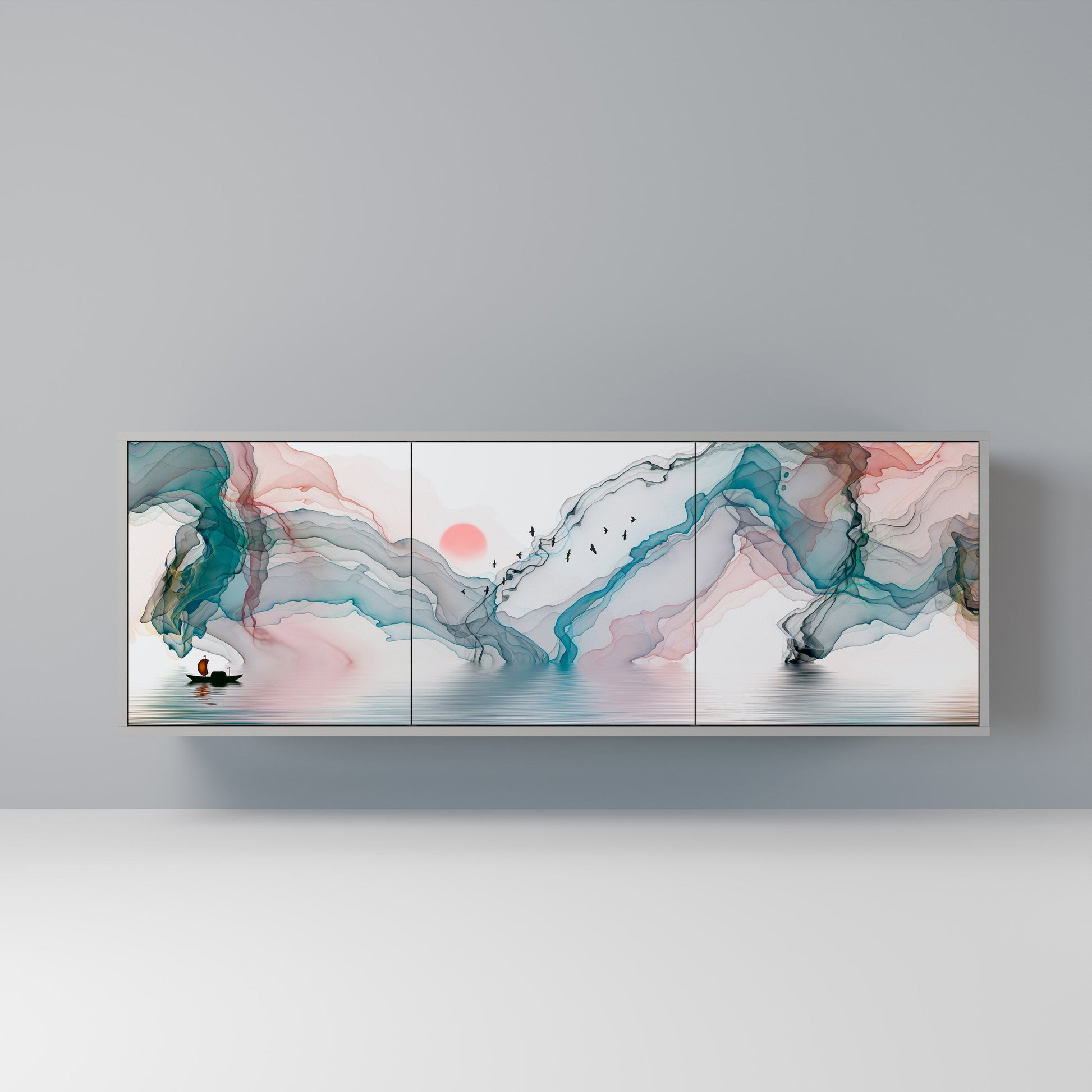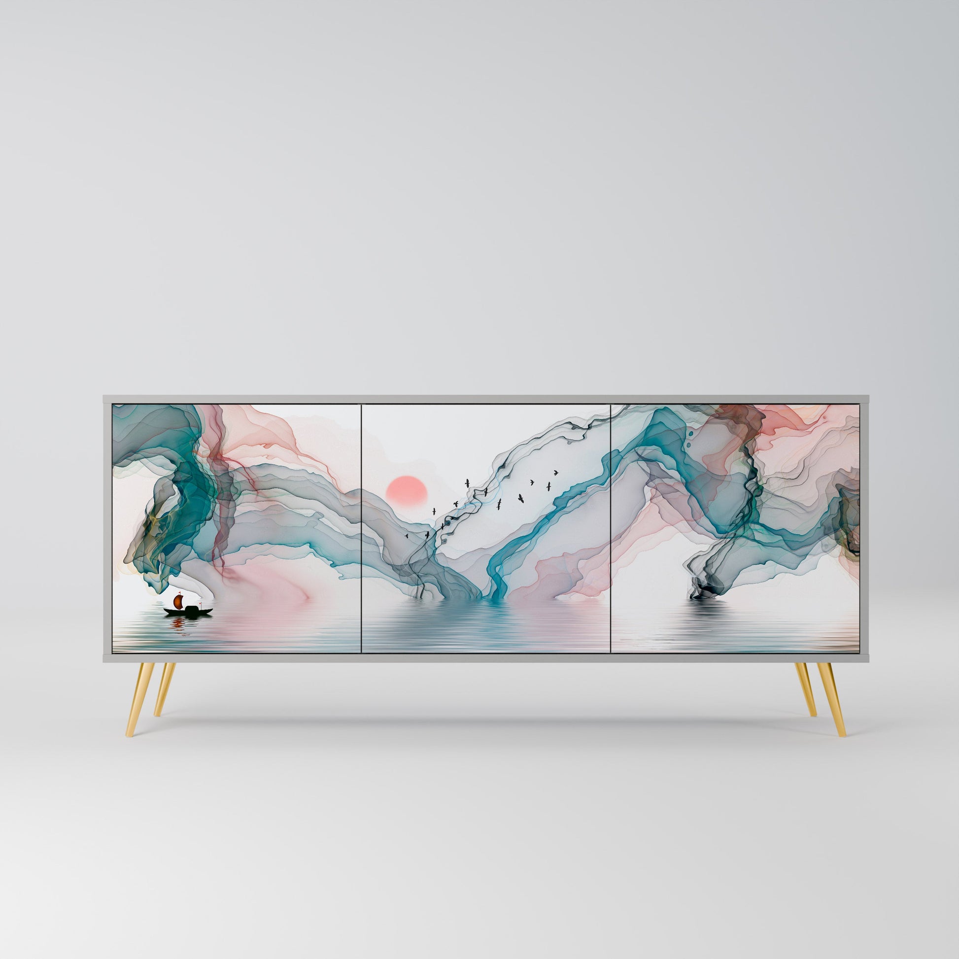 Elegance and functionality in a single piece of furniture – our 3-Door Sideboard with a grey body is the perfect solution for lovers of stylish, modern interiors. The grey body emphasizes the refined character of the furniture, while the fronts with a unique print add an artistic touch. It fits perfectly in the living room, bedroom, or office, complementing both modern and industrial arrangements.