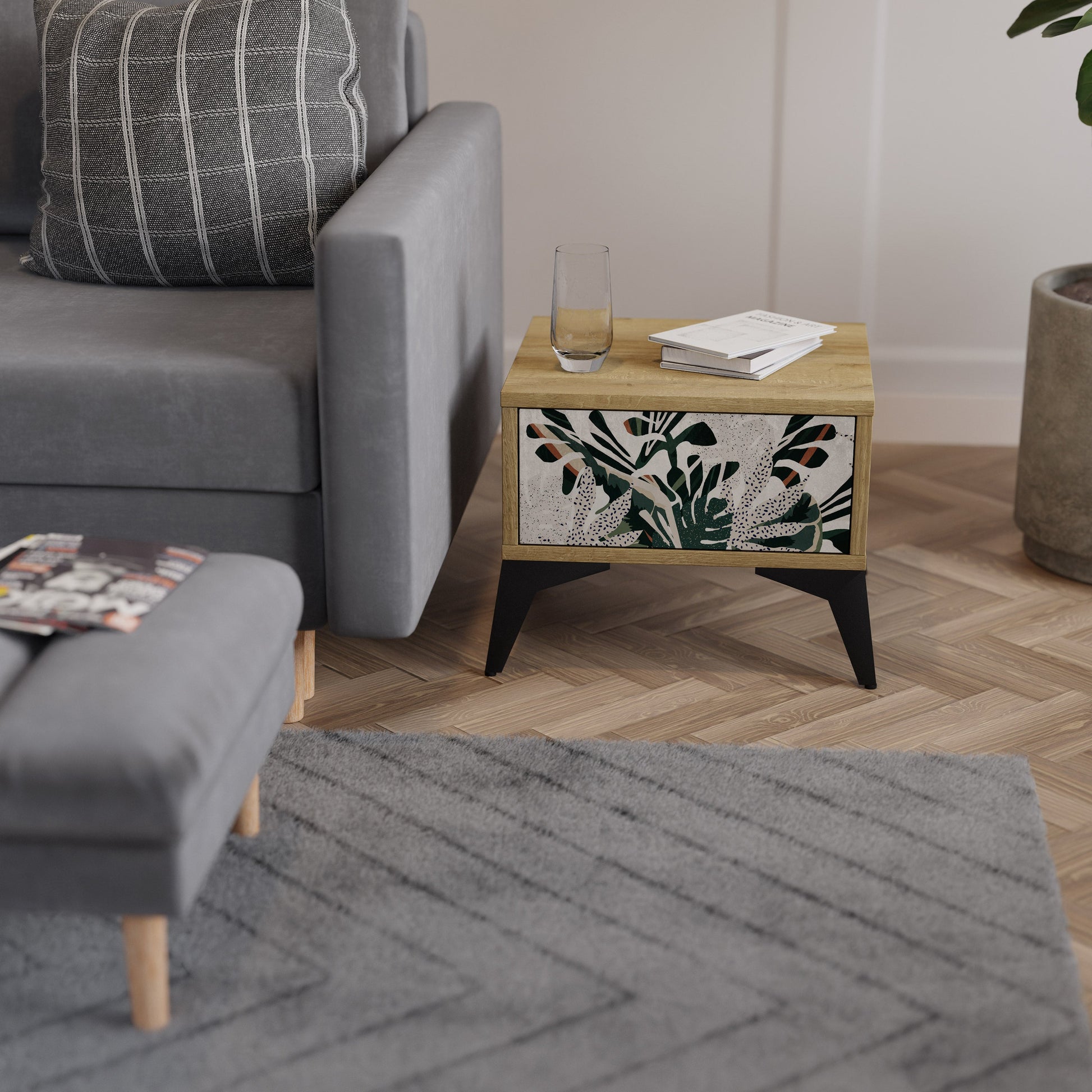 Discover functionality and elegance in a compact form with our bedside unit with a drawer. This practical and stylish piece of furniture perfectly combines the natural beauty of wood with modern design on the drawer front, creating a harmonious element for any bedroom.