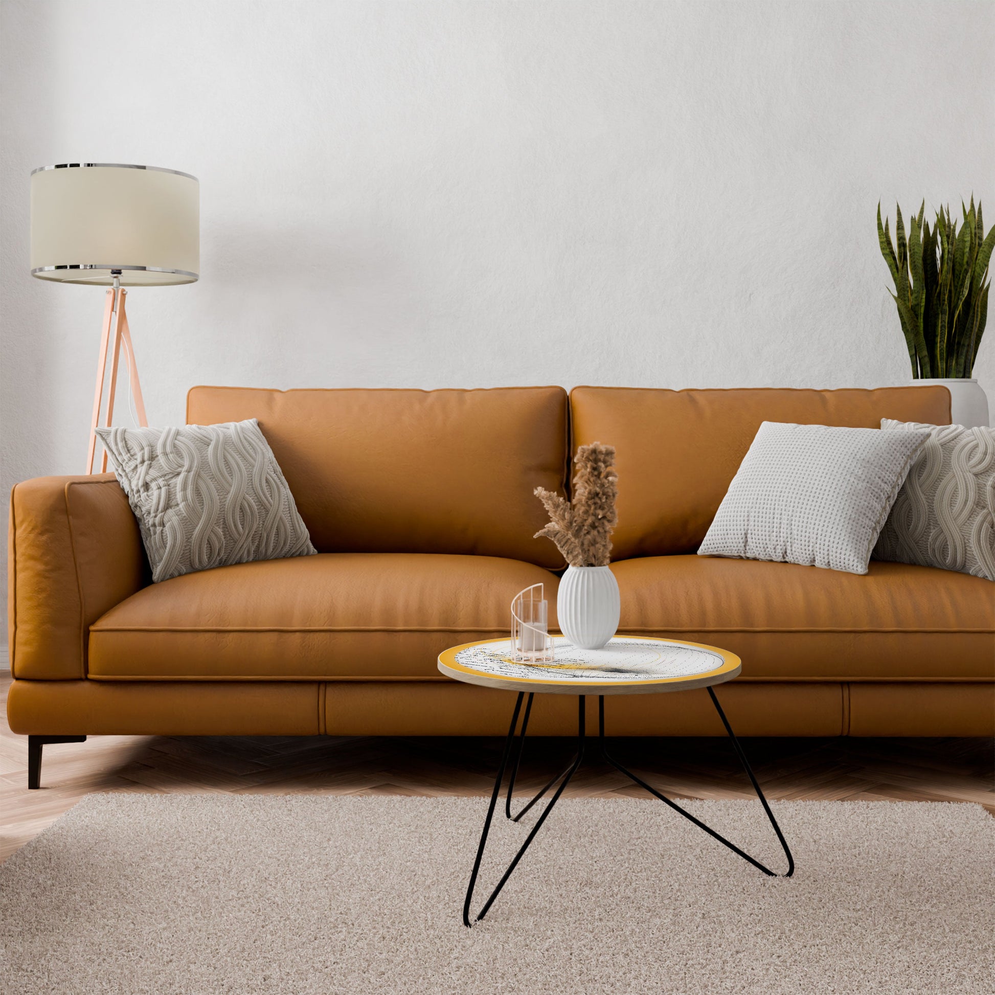 The tabletop features a high-quality printed motif, adding a distinctive artistic accent to your space. Crafted from durable chipboard covered with laminate, it ensures long-lasting use and resistance to daily wear.
