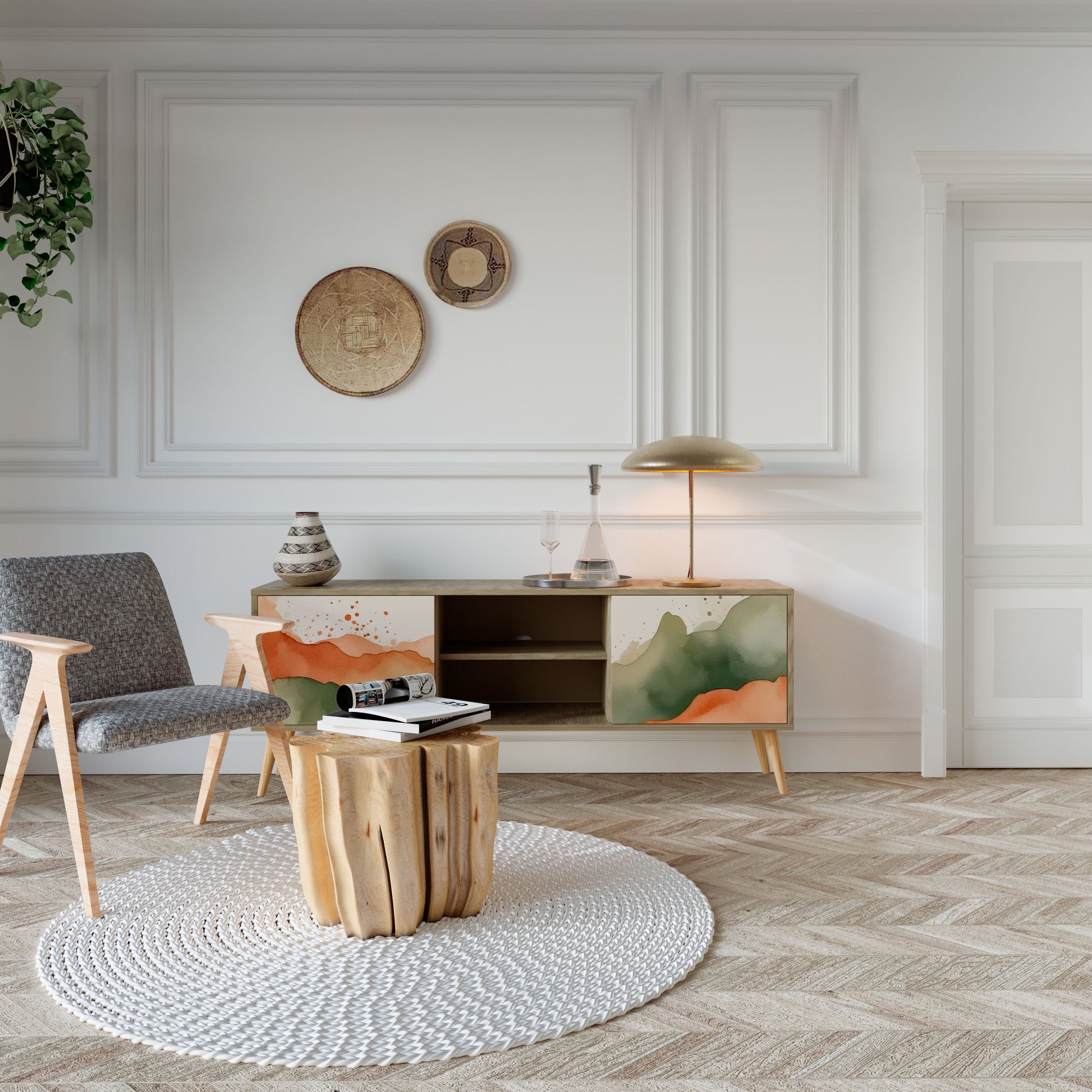 WATERCOLOUR PEAKS 2-Door TV Stand in Oak Effect