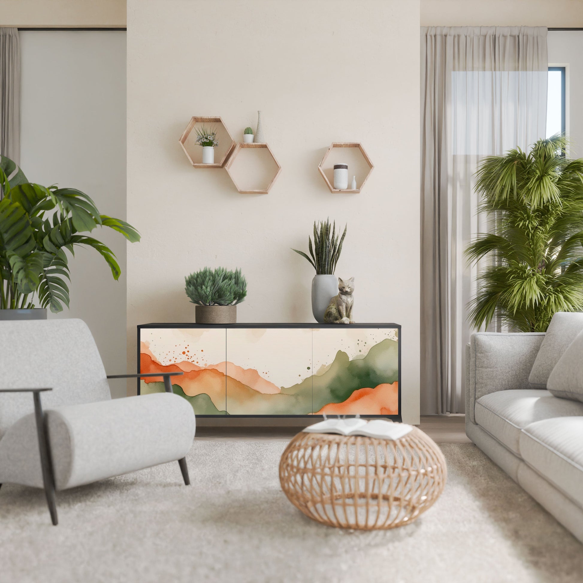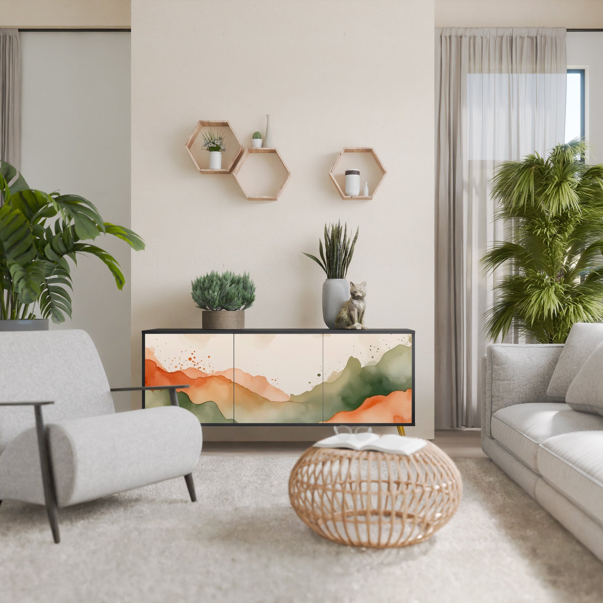 Elegance and functionality in a single piece of furniture – our 3-Door Sideboard with a black body is the perfect solution for lovers of stylish, modern interiors. The black body emphasizes the bold character of the furniture, while the fronts with a unique print add an artistic touch. It fits perfectly in the living room, bedroom, or office, complementing both modern and industrial arrangements.
