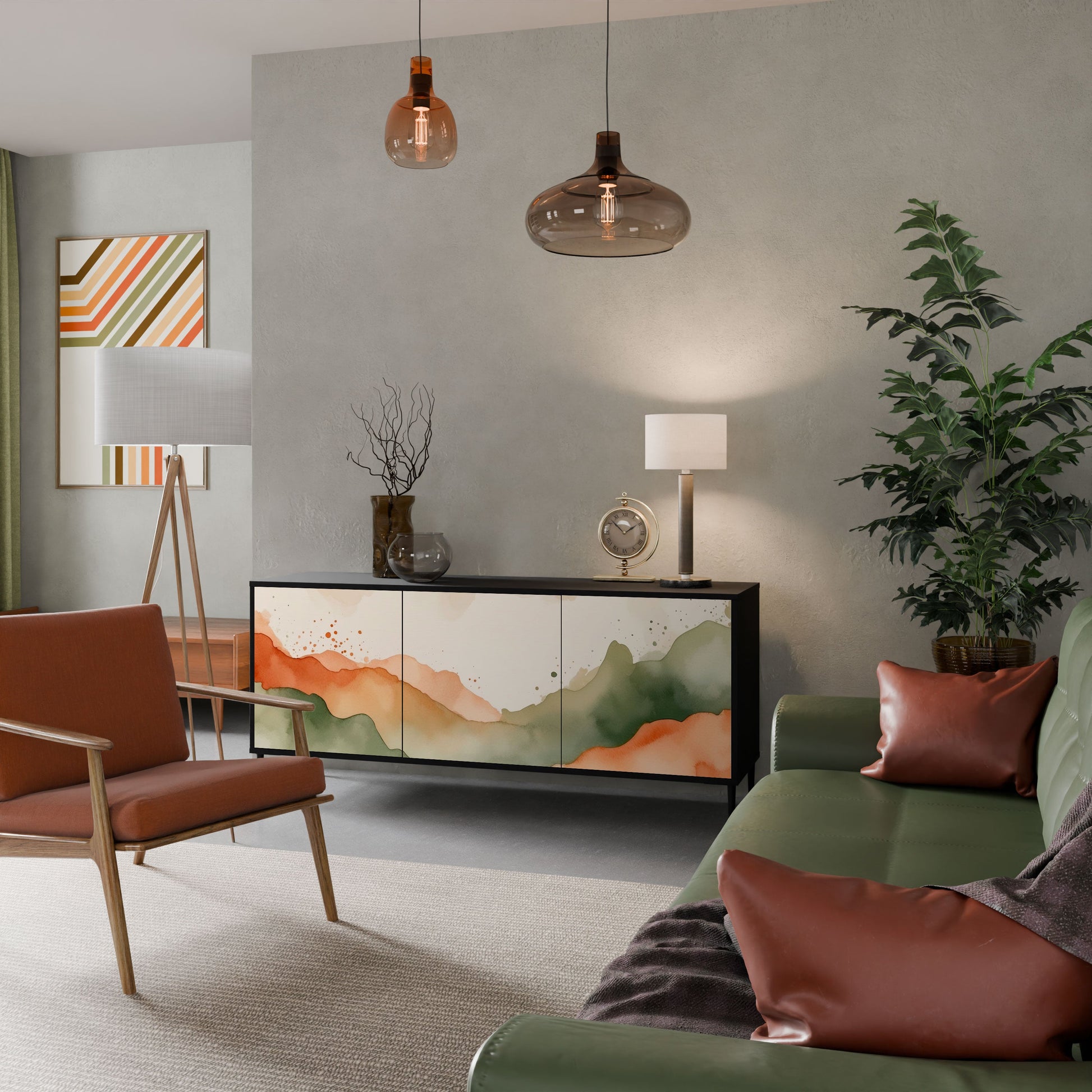 WATERCOLOUR PEAKS 3-Door Sideboard in Black Finish