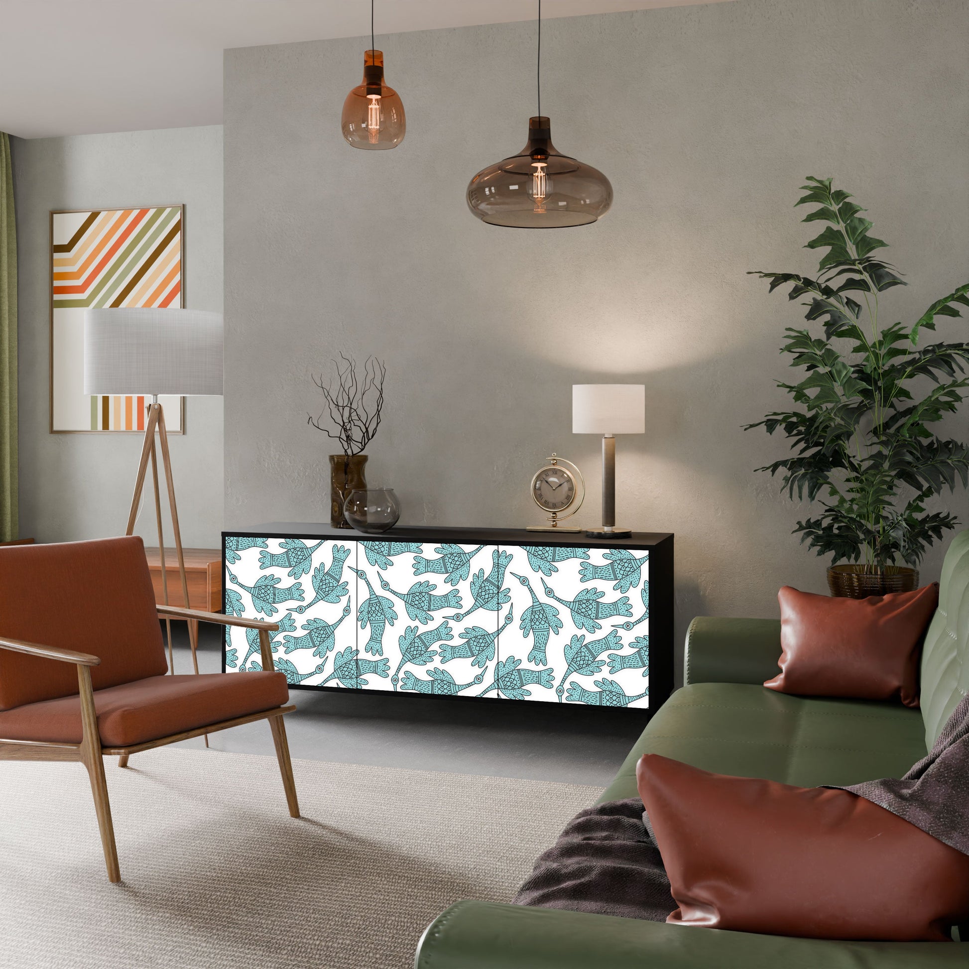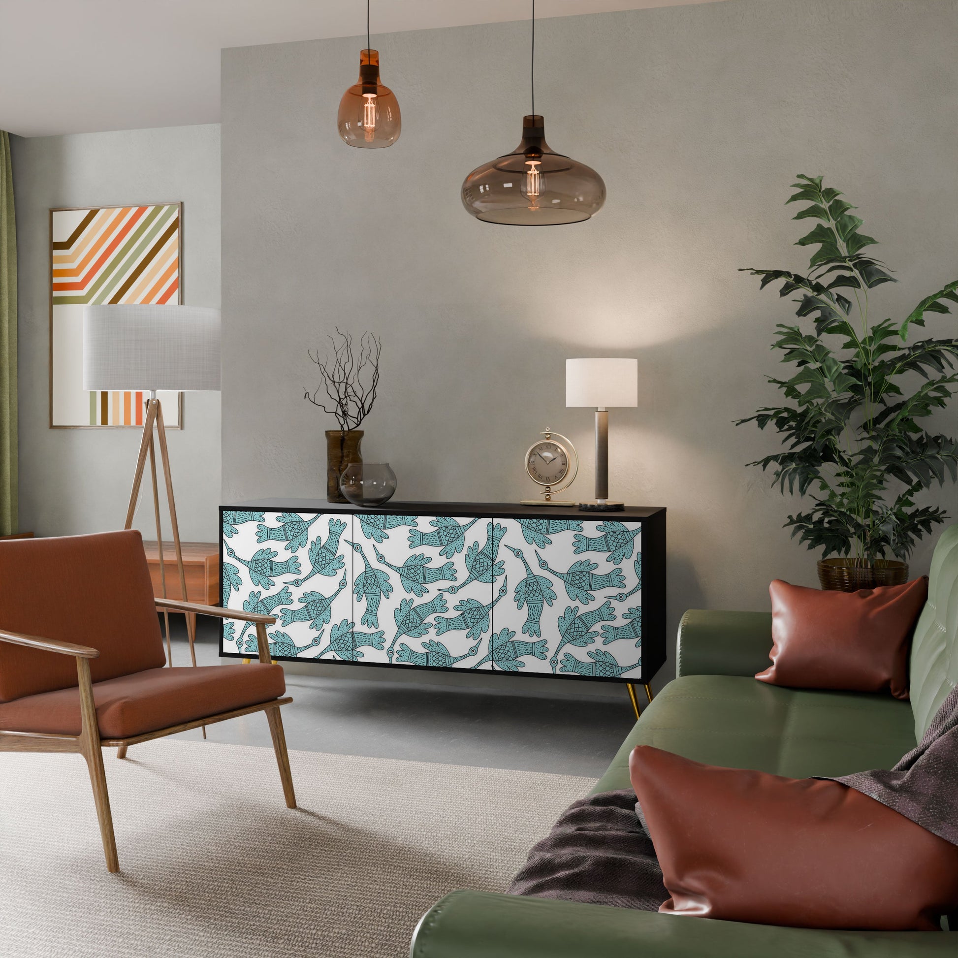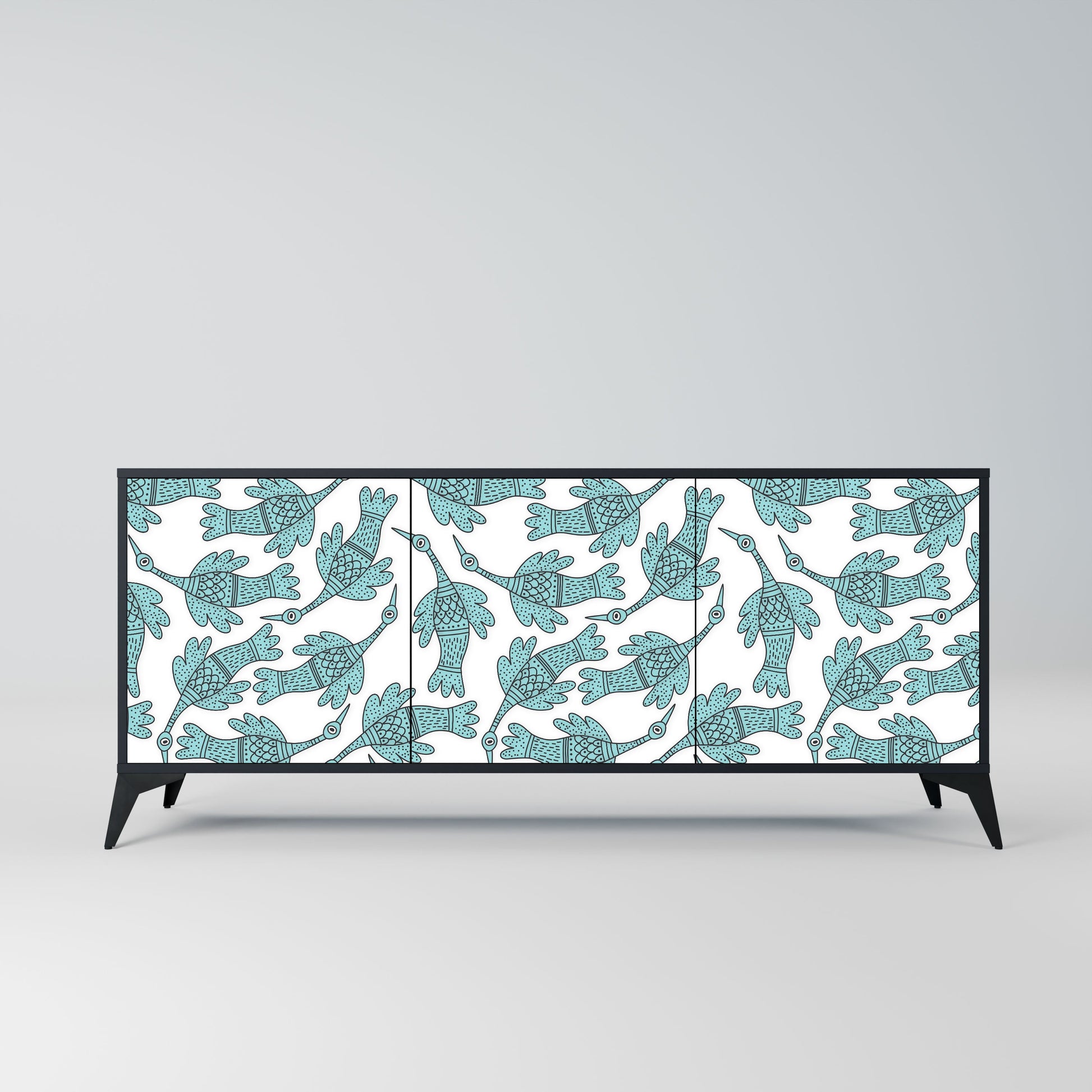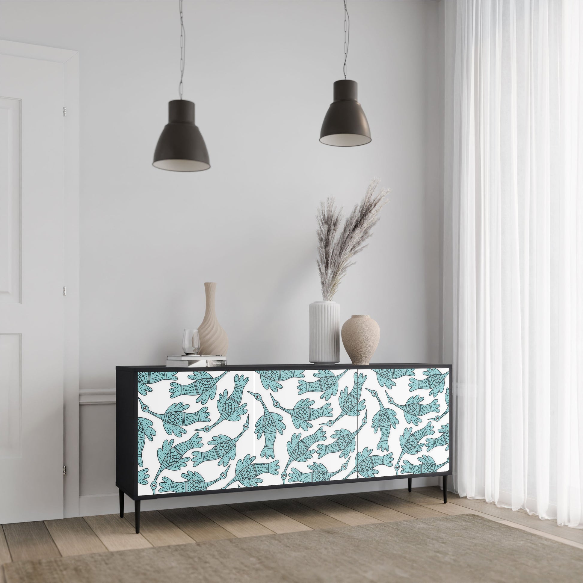 Elegance and functionality in a single piece of furniture – our 3-Door Sideboard with a black body is the perfect solution for lovers of stylish, modern interiors. The black body emphasizes the bold character of the furniture, while the fronts with a unique print add an artistic touch. It fits perfectly in the living room, bedroom, or office, complementing both modern and industrial arrangements.