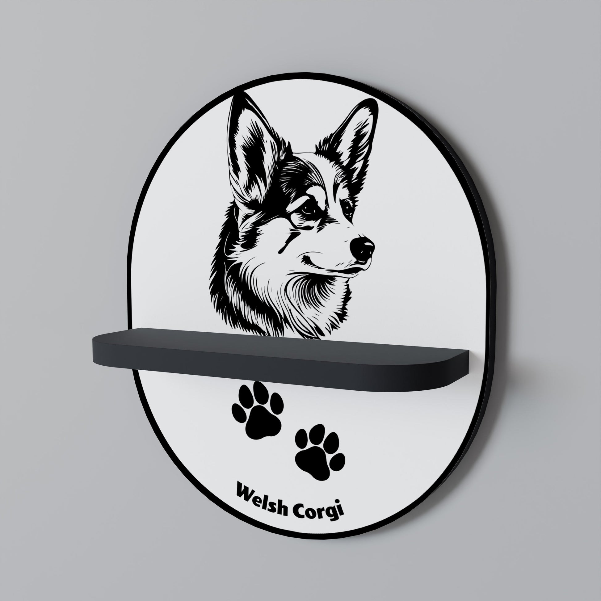 WELSH CORGI PEMBROKE Oval Art Shelf In Black Finish