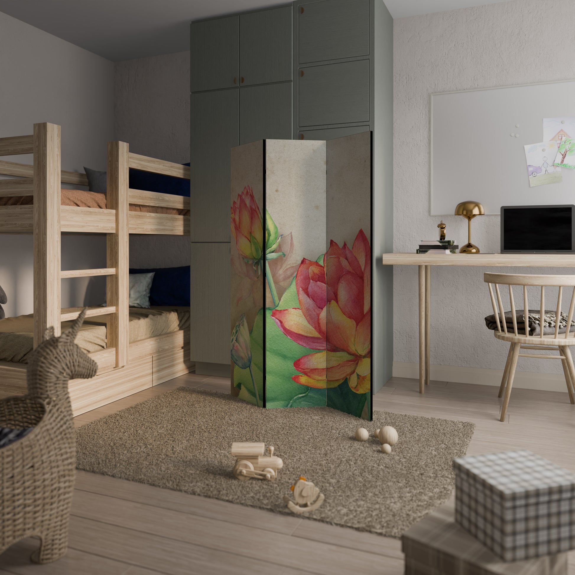 WHISPERING LOTUS BLOOMS Decorative 3-Panel Room Divider