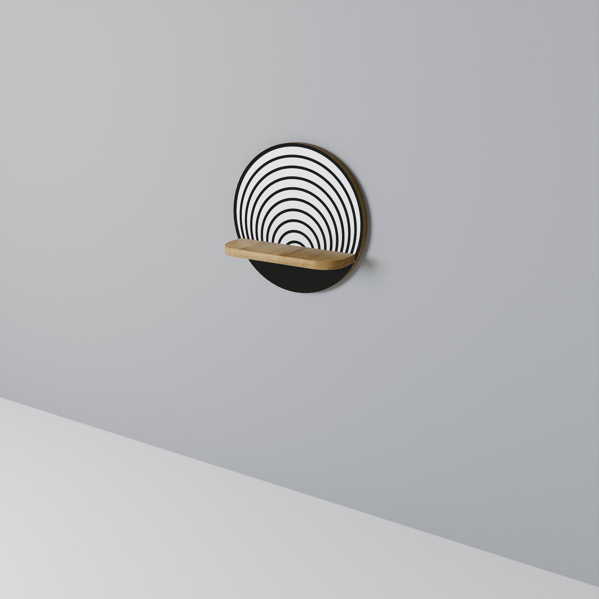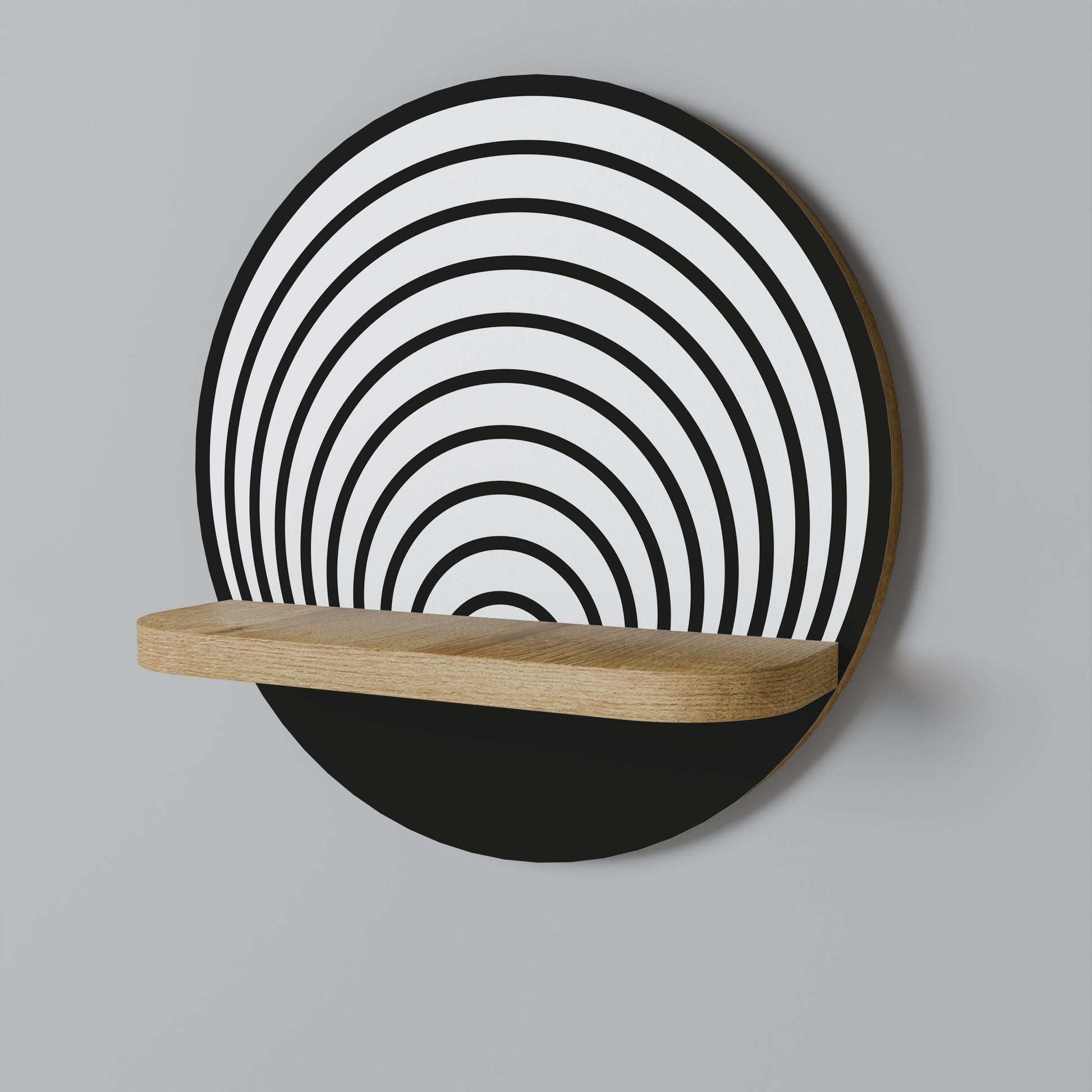 WHISPERING ROUNDS Round Art Shelf In Oak Effect