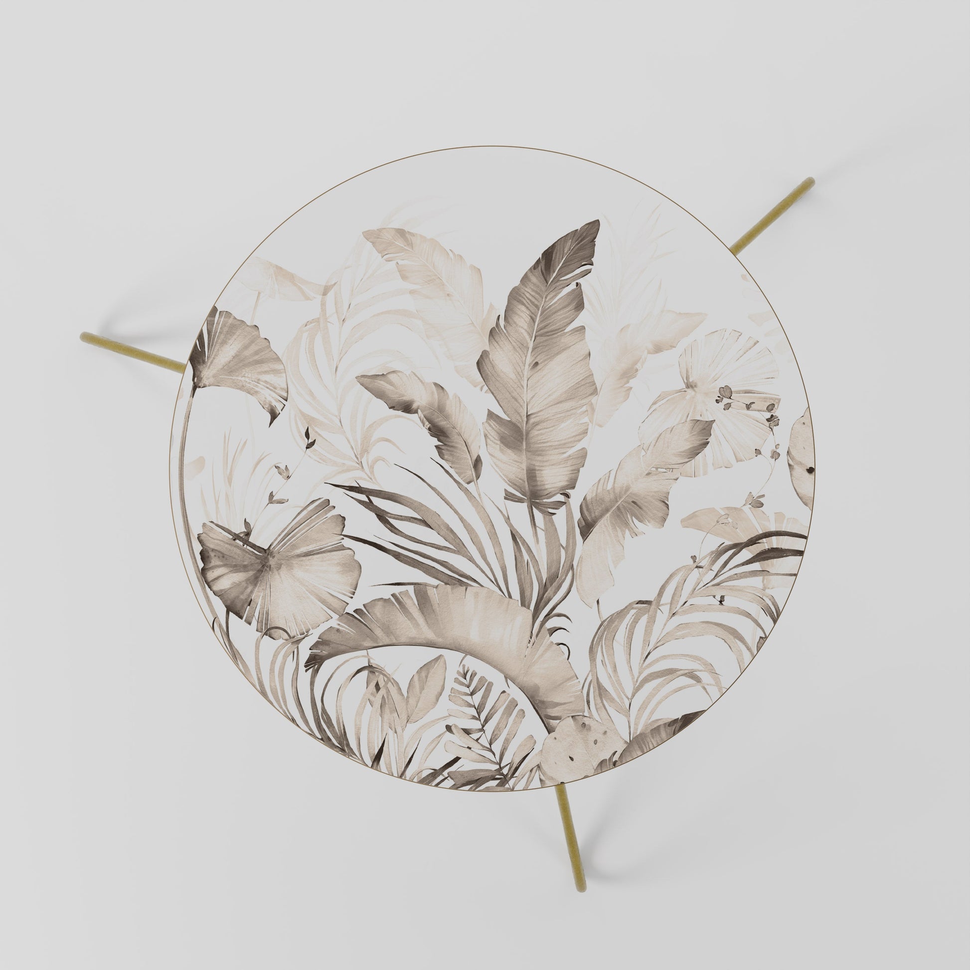 The tabletop features a high-quality printed motif, adding a distinctive artistic accent to your space. Crafted from durable chipboard covered with laminate, it ensures long-lasting use and resistance to daily wear.