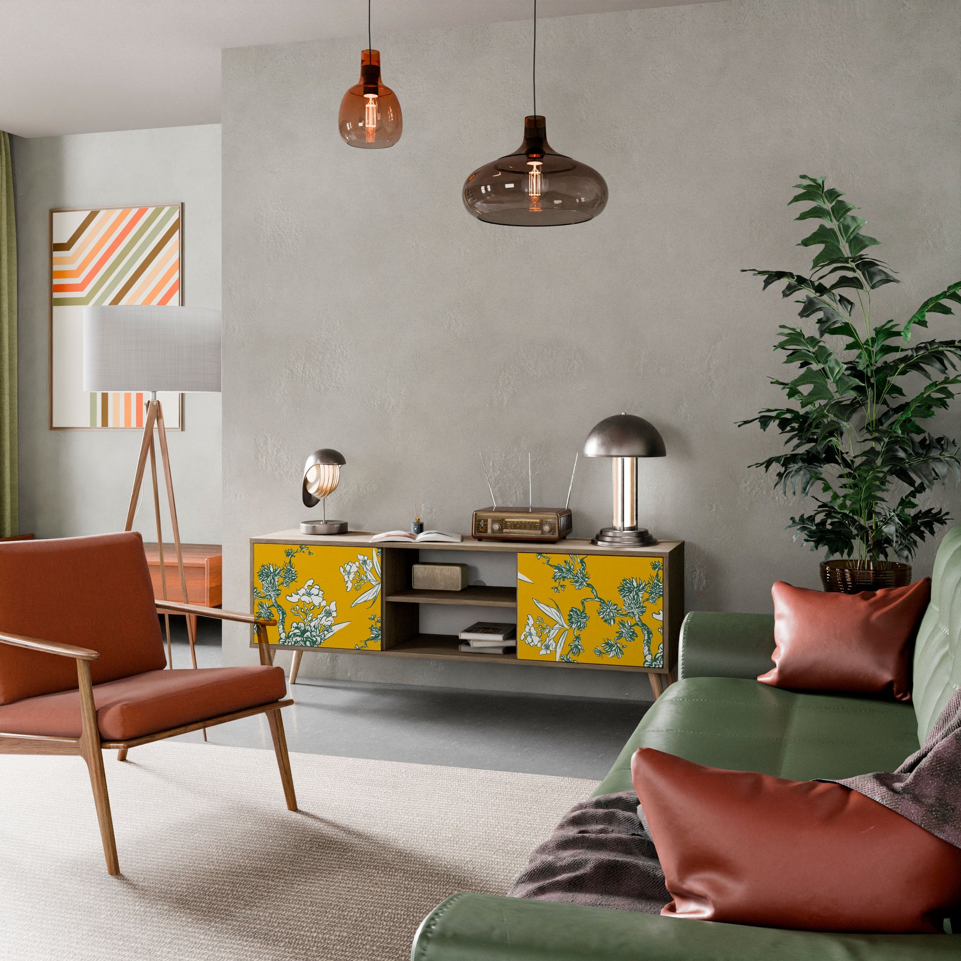 YELLOW CHINOISERIE 2-Door TV Stand in Oak Effect